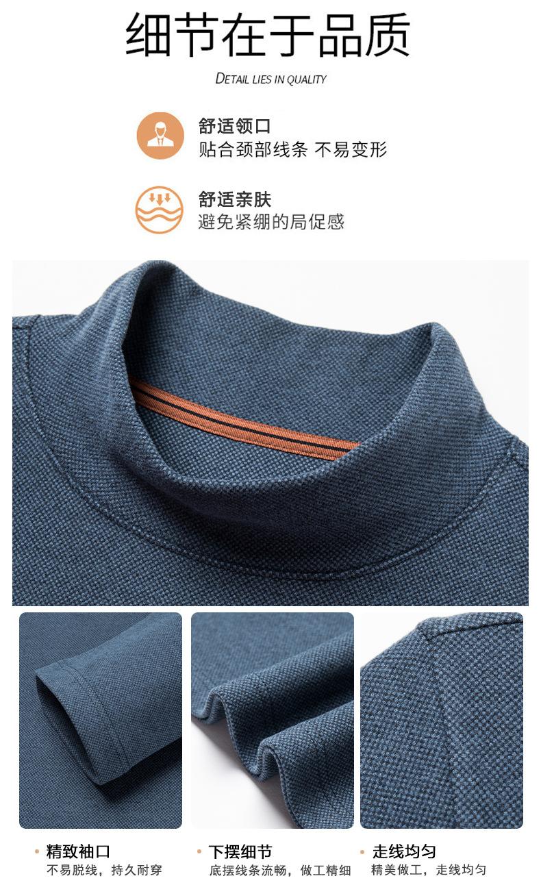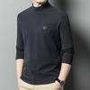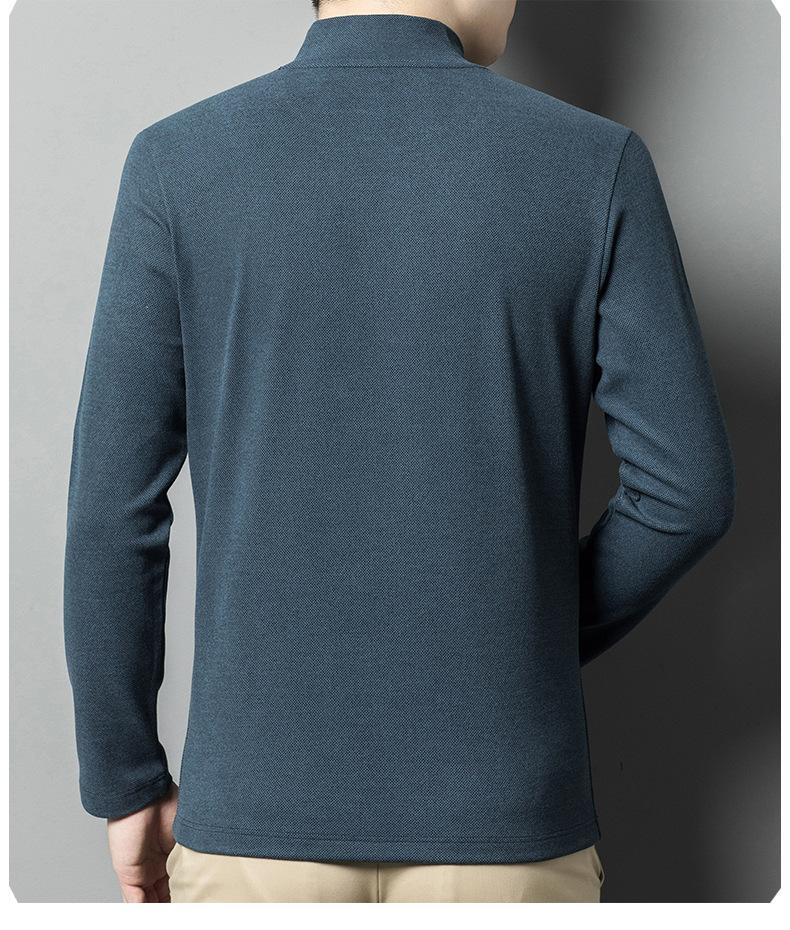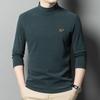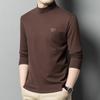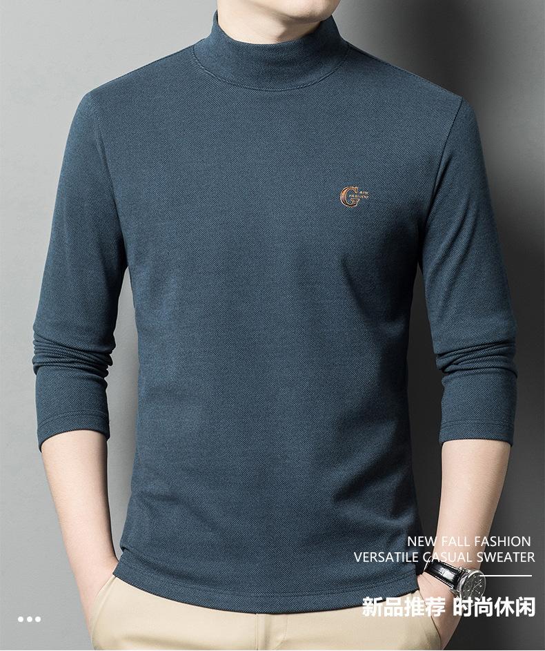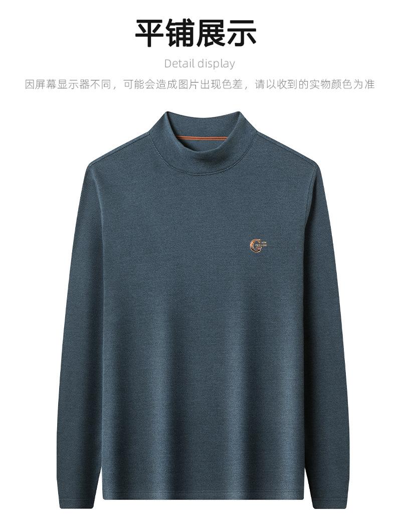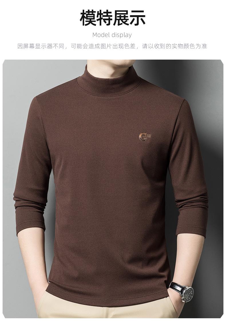 Camiseta de terciopelo de doble cara de manga larga para hombre, camiseta básica de cuello alto medio para hombre de mediana edad, casual, versátil, bordada, cálida, ropa para hombre