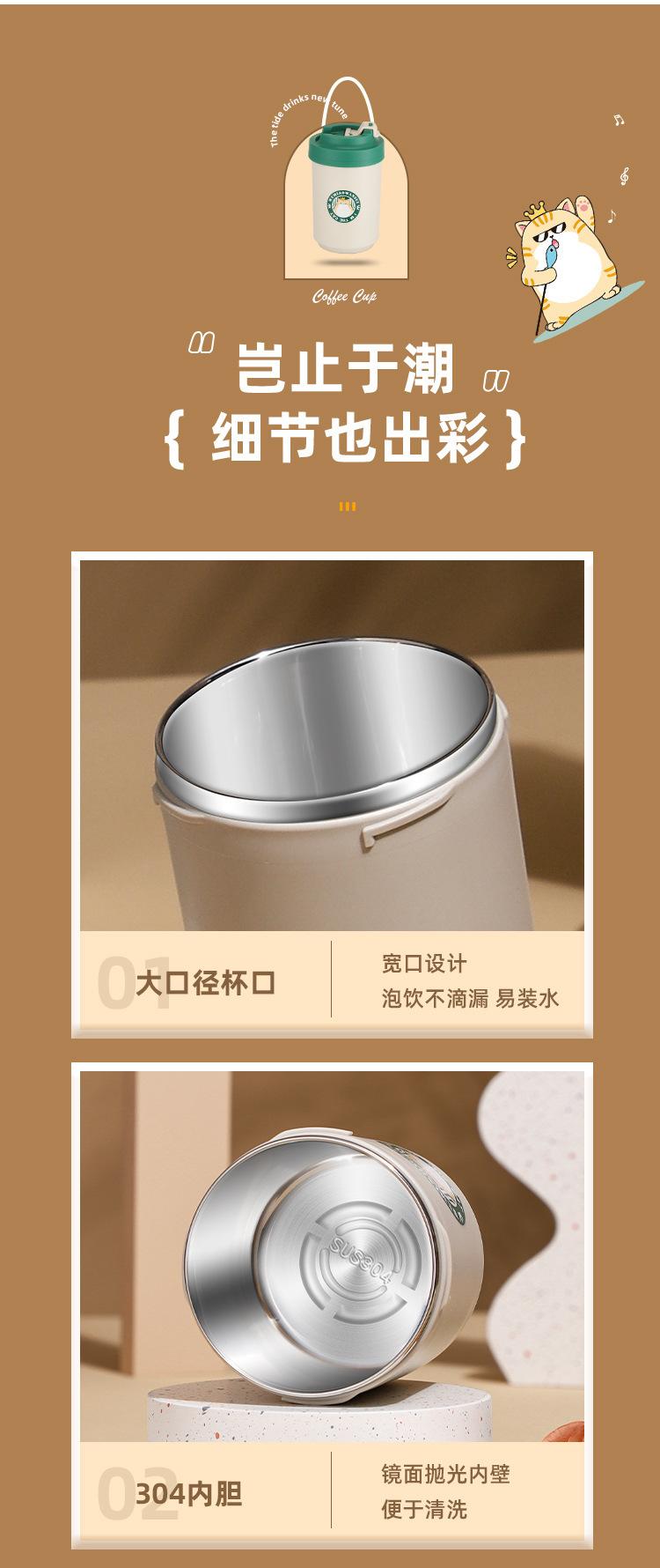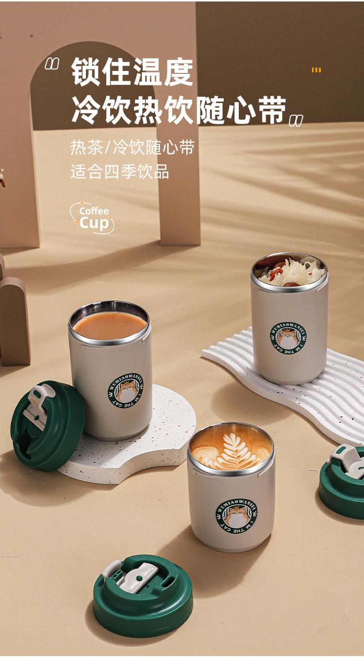 Taza Termo de Acero Inoxidable 304 de Doble Capa, Taza de Café de Aspecto Elevado, Vaso Diario Portátil