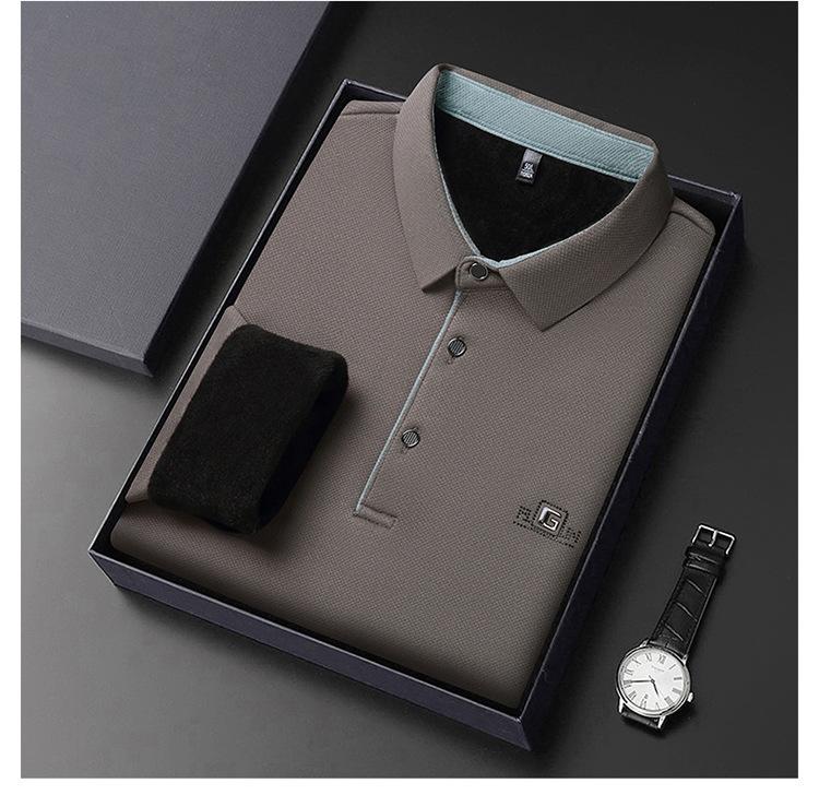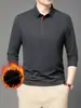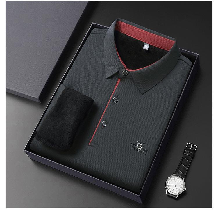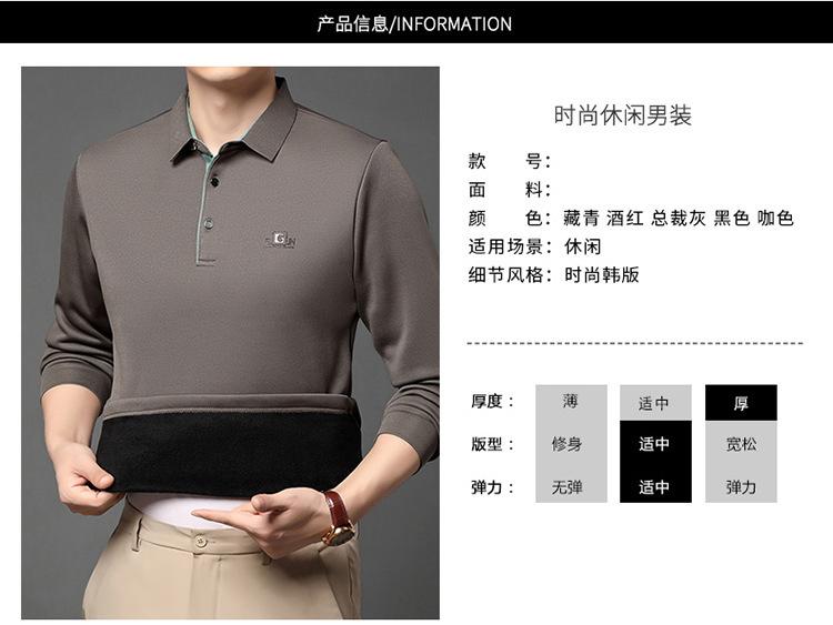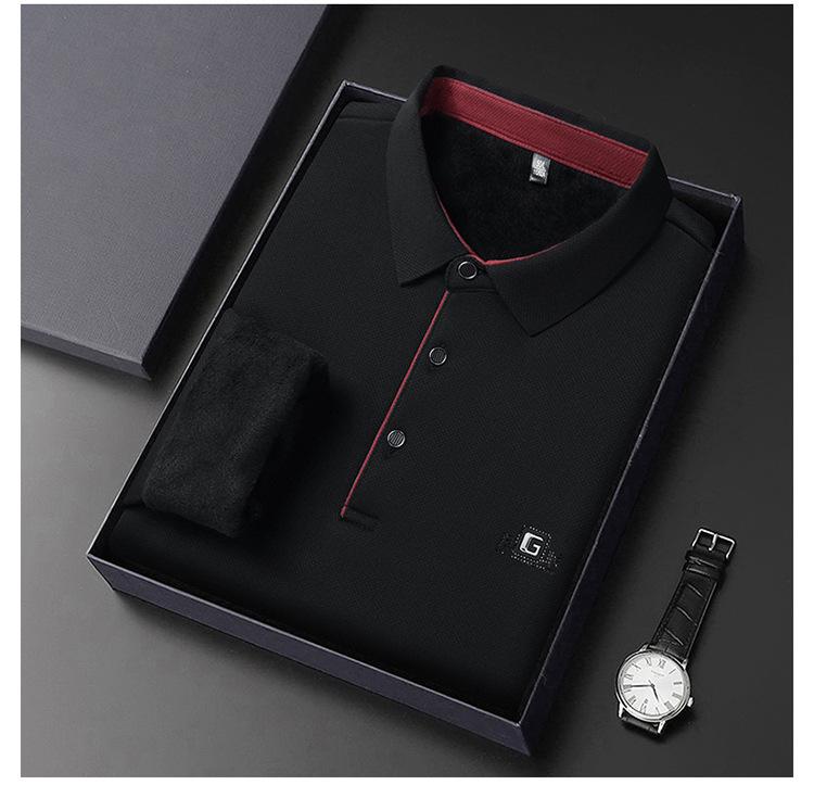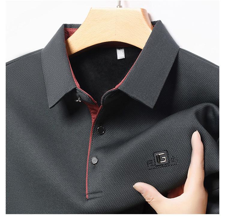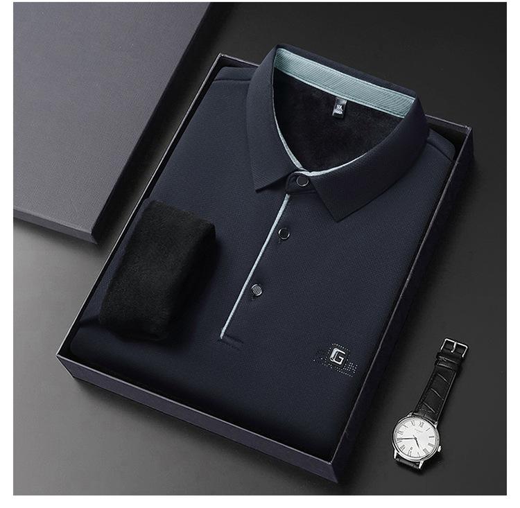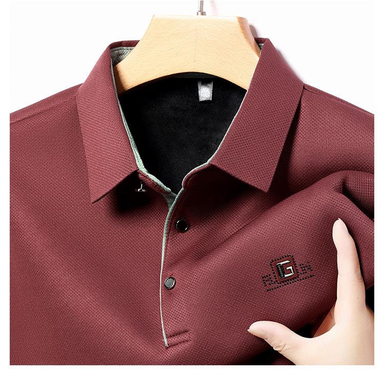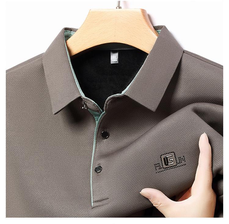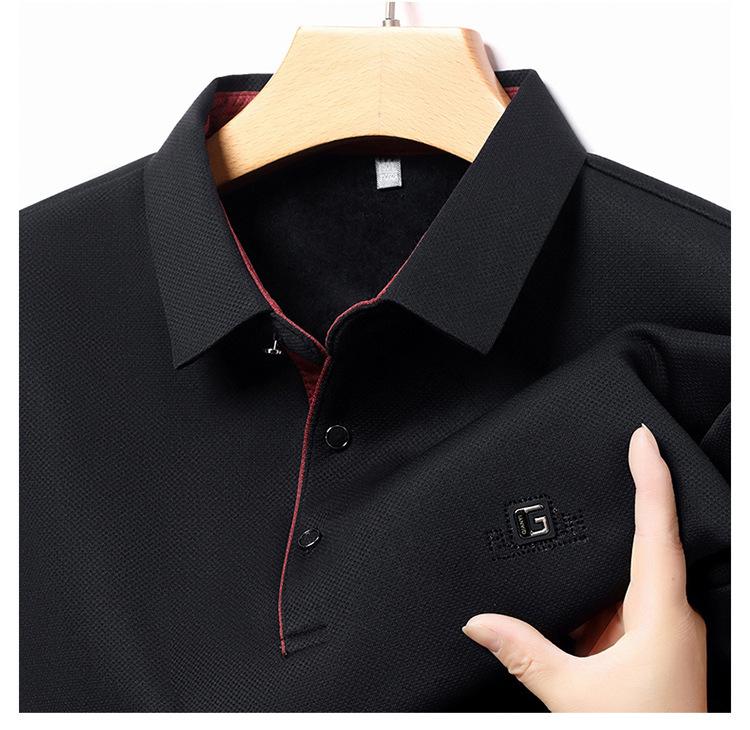 Otoño e Invierno Nuevo Camiseta de Manga Larga Gruesa con Forro Polar para Hombre Una Pieza Terciopelo Cálido Solapa Base Camisa Polo para Hombre Top