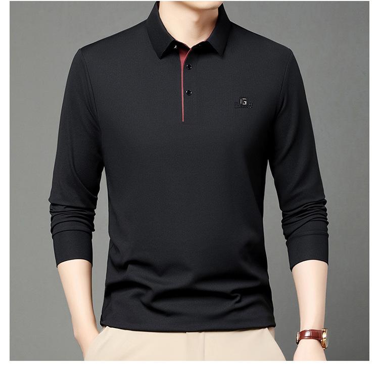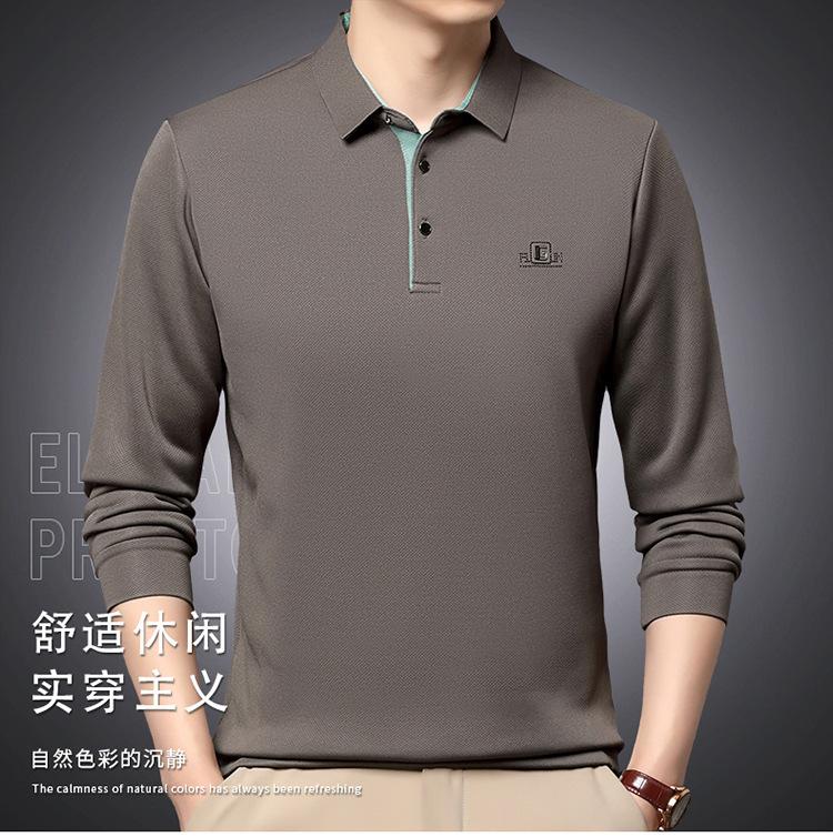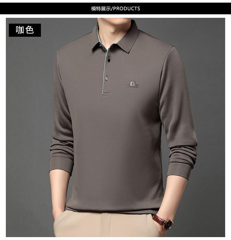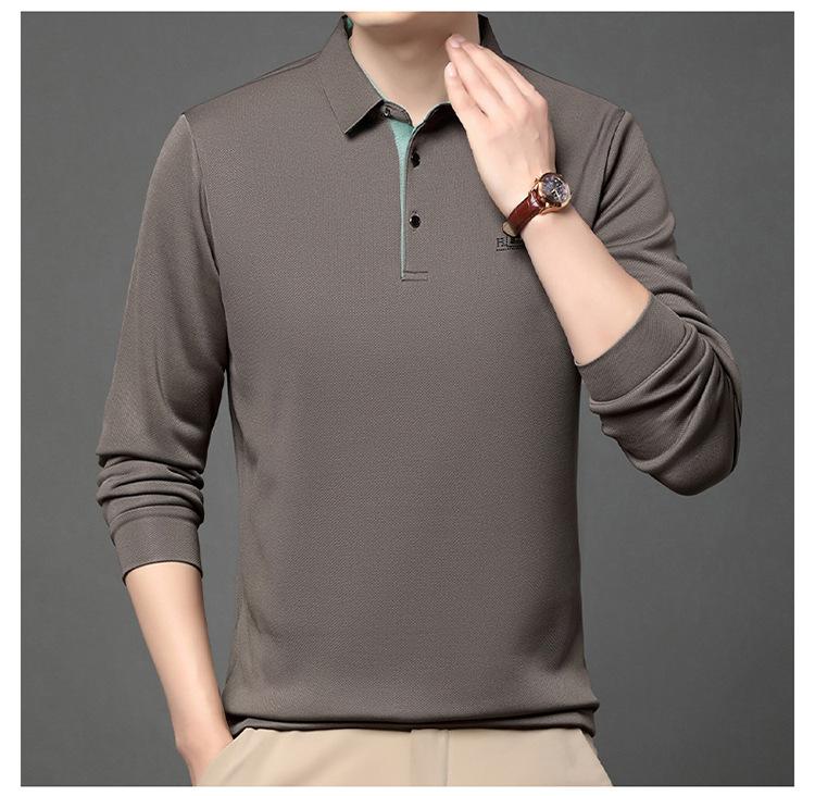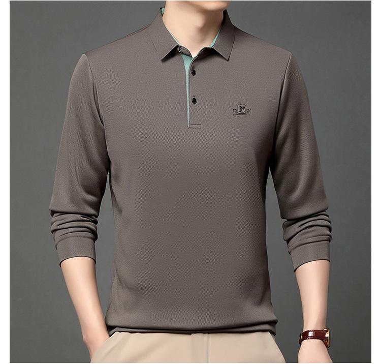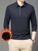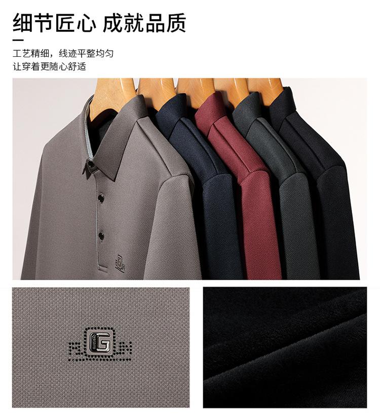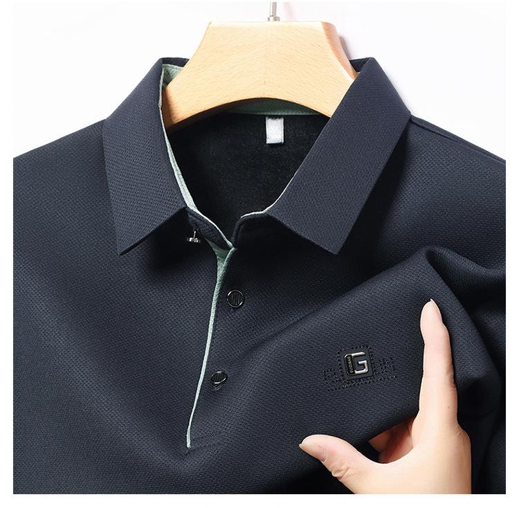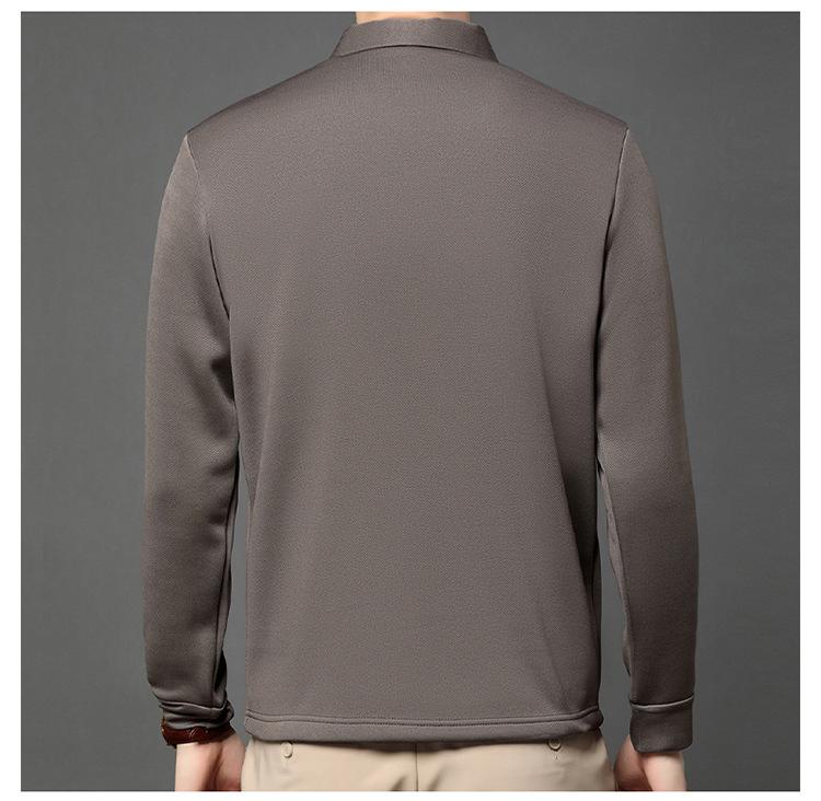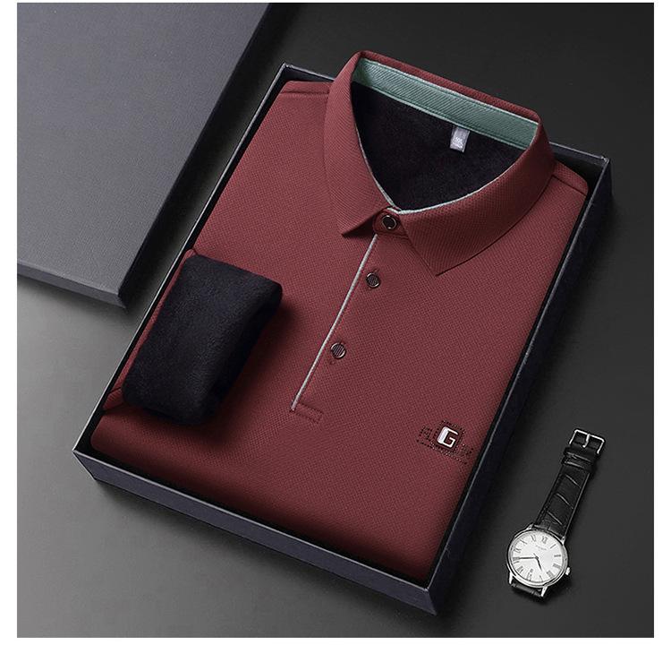 Otoño e Invierno Nuevo Camiseta de Manga Larga Gruesa con Forro Polar para Hombre Una Pieza Terciopelo Cálido Solapa Base Camisa Polo para Hombre Top