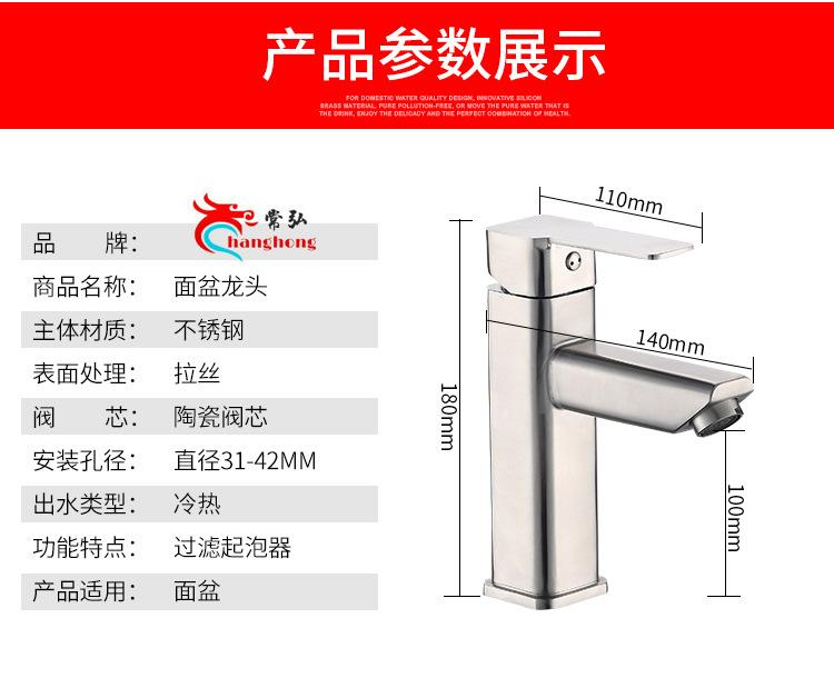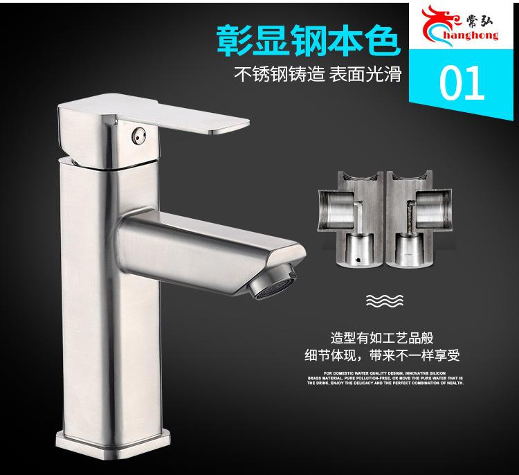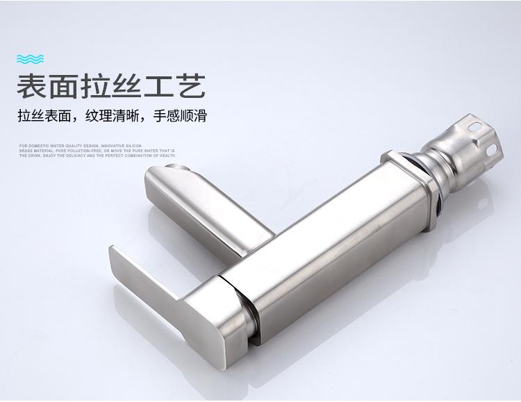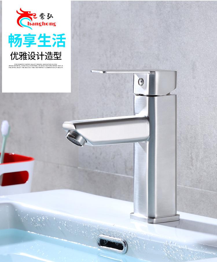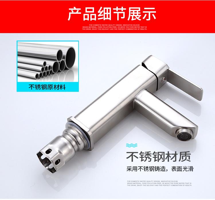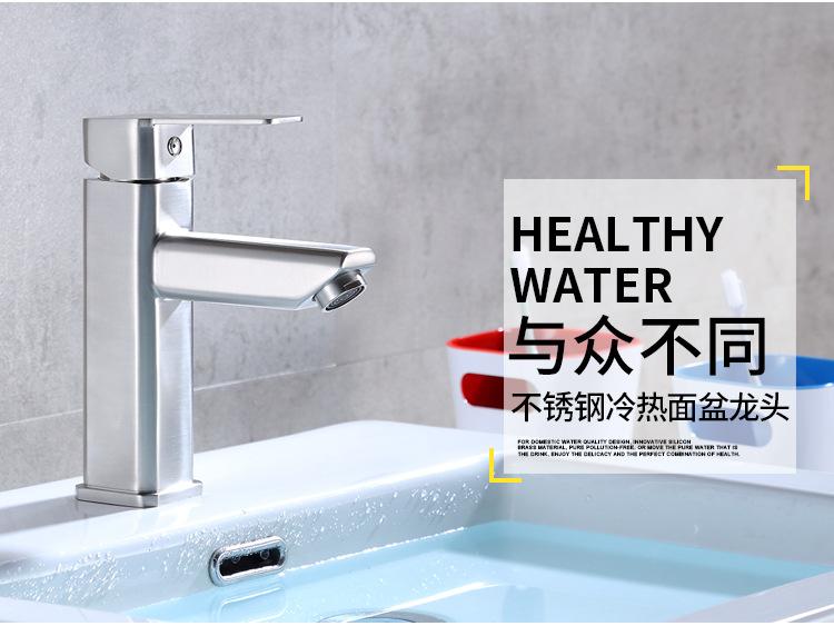 Grifo para lavabo de acero inoxidable 304 para agua fría y caliente, monomando cuadrado para lavabo, grifo de baño