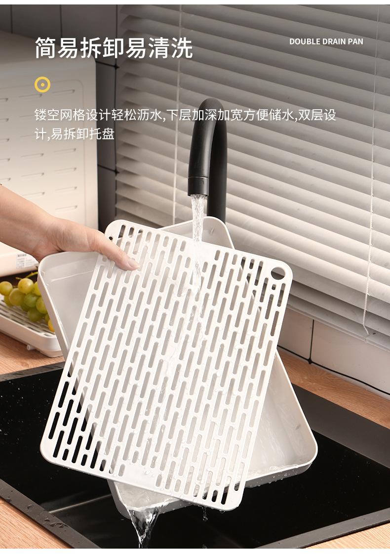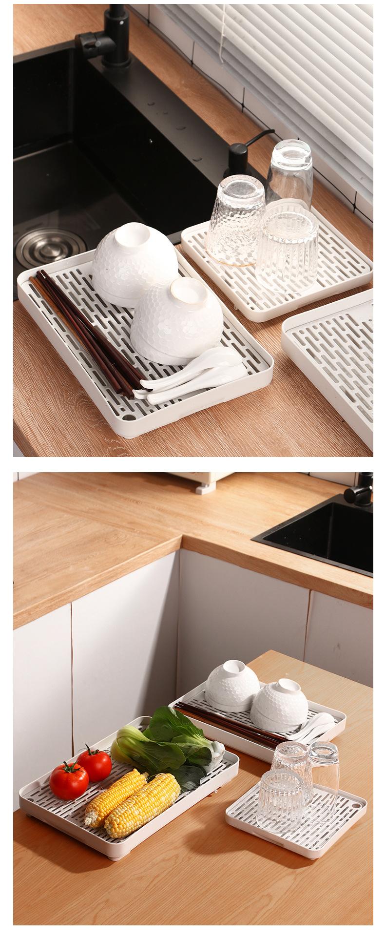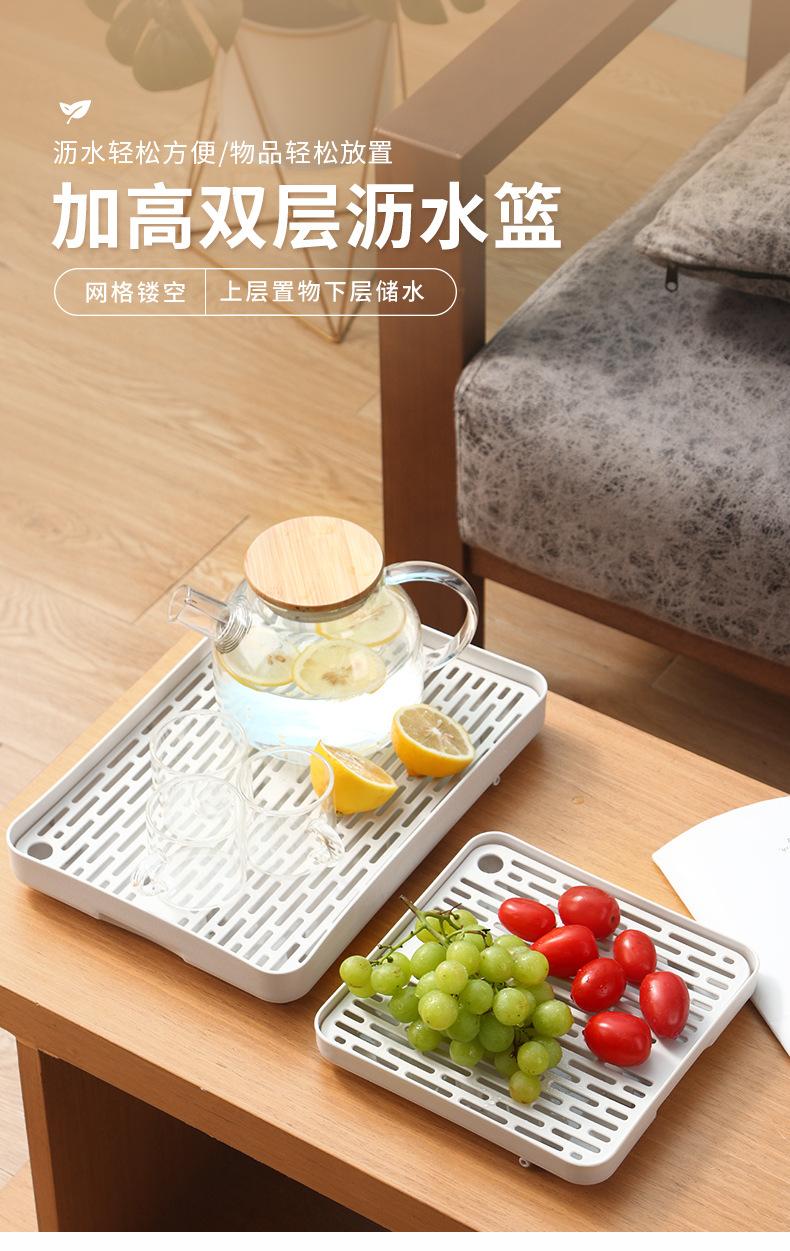 Bandeja de Drenaje de Doble Capa Bandeja de Té Doméstica Estante de Almacenamiento para Tazones y Palillos Almacenamiento para Tazas de Té Bandeja de Drenaje Rectangular de Plástico