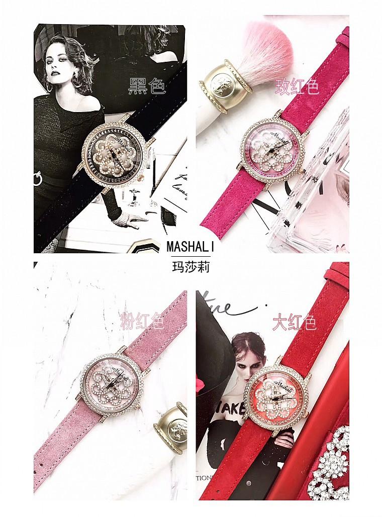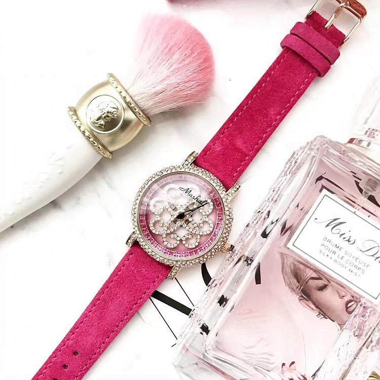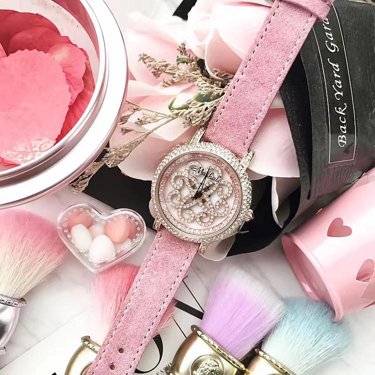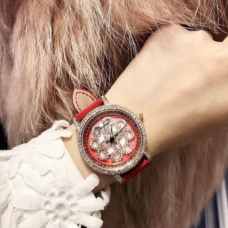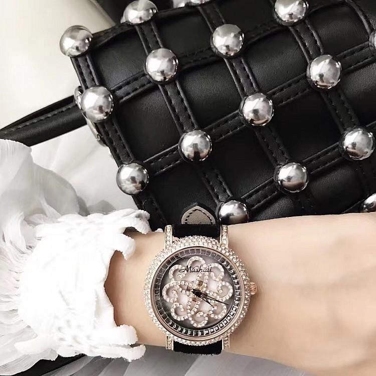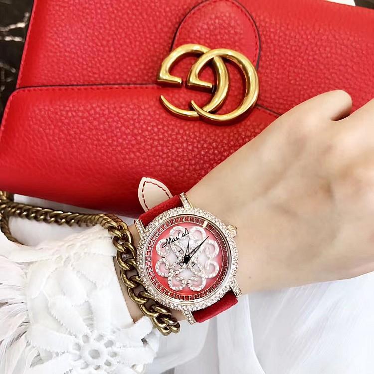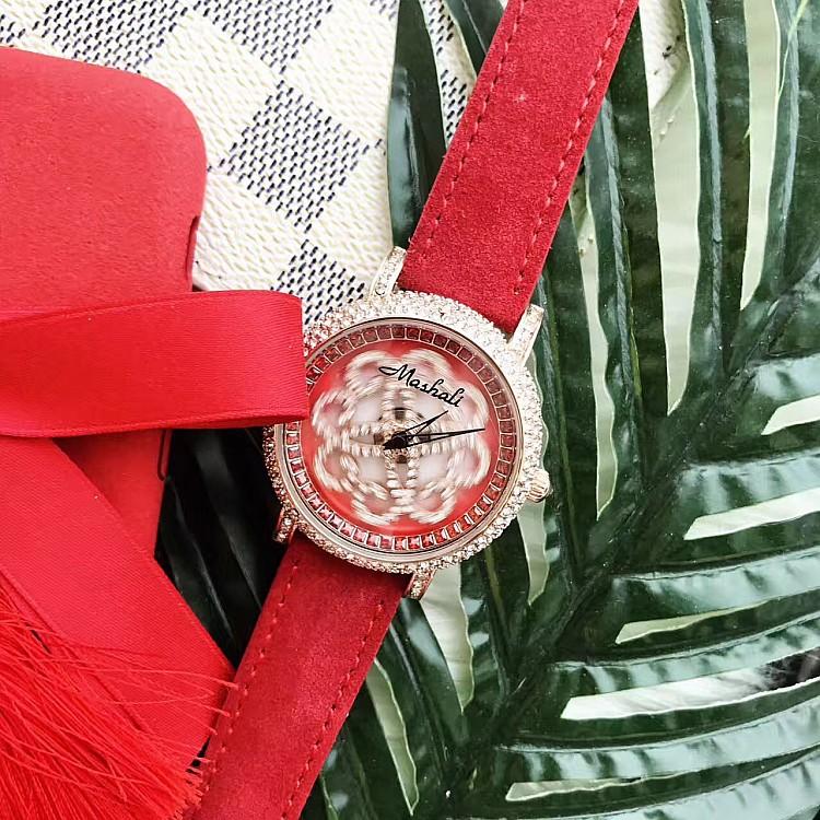 Masalee Nueva Tendencia Moda Reloj de Mujer con Incrustaciones de Diamantes Correa de Piel