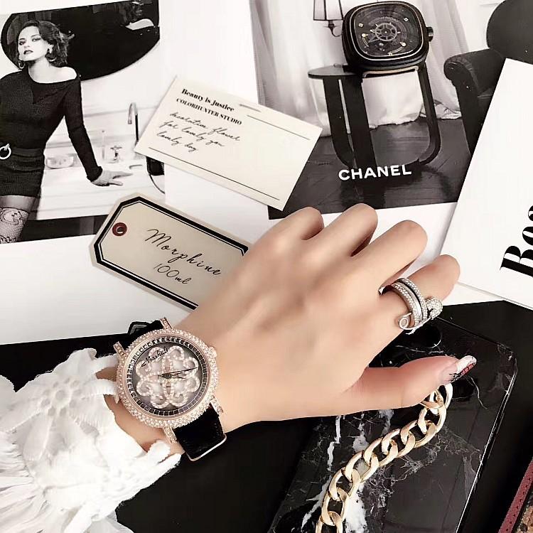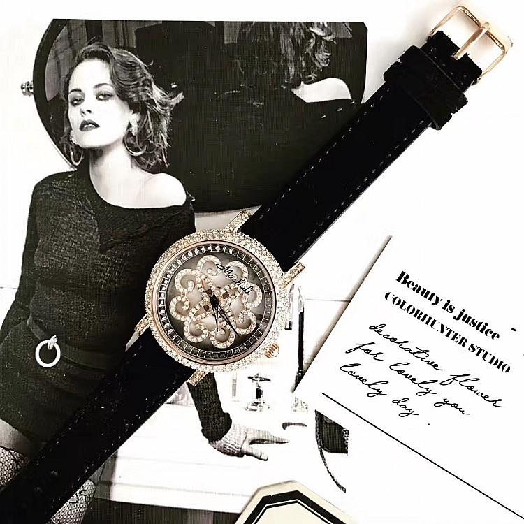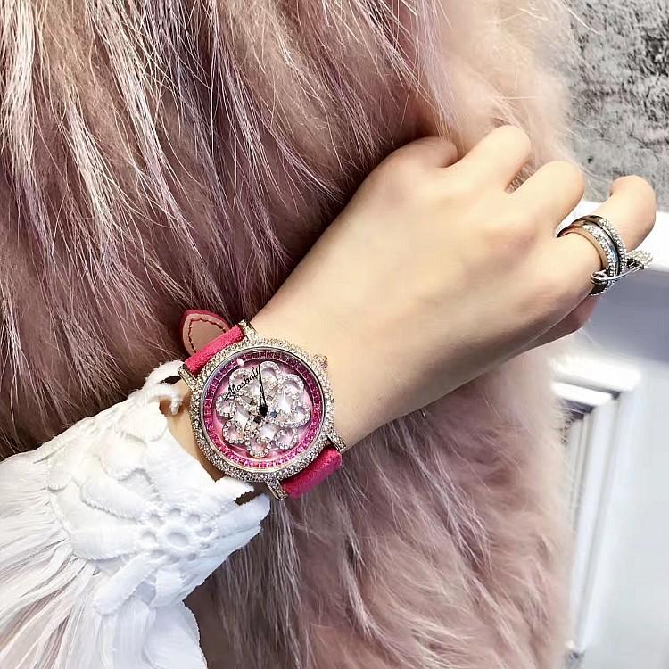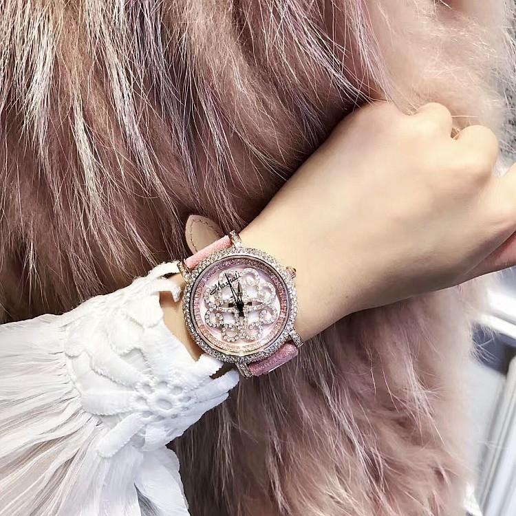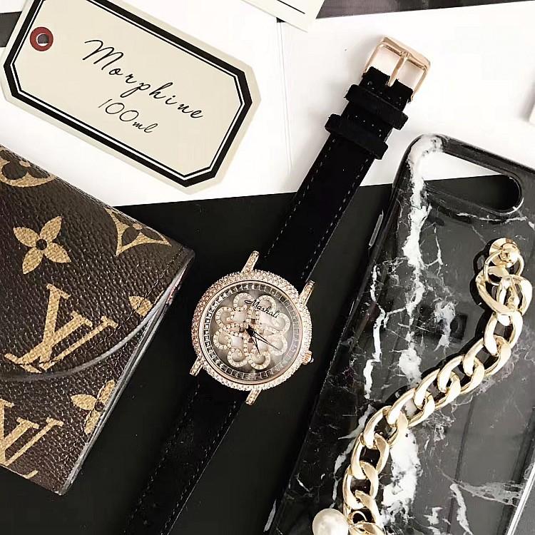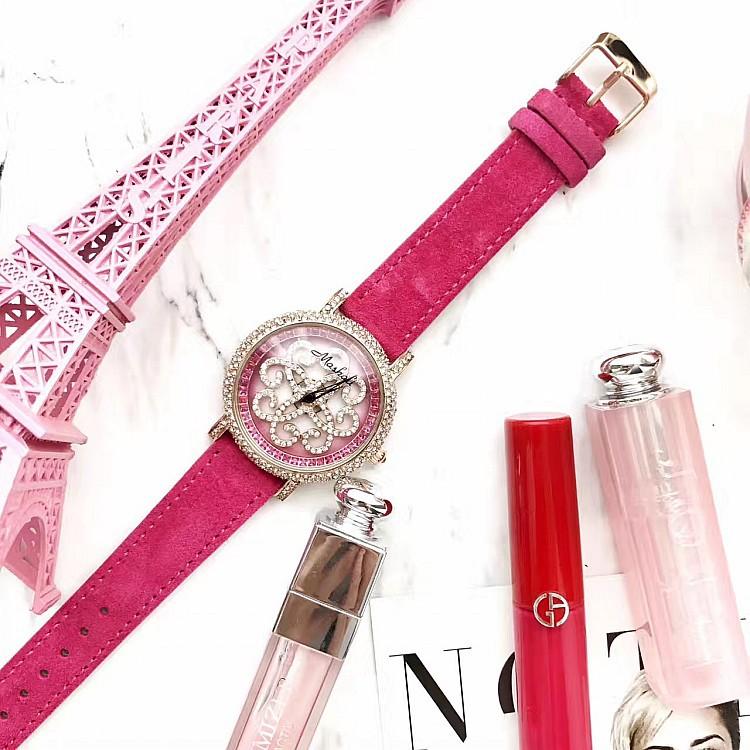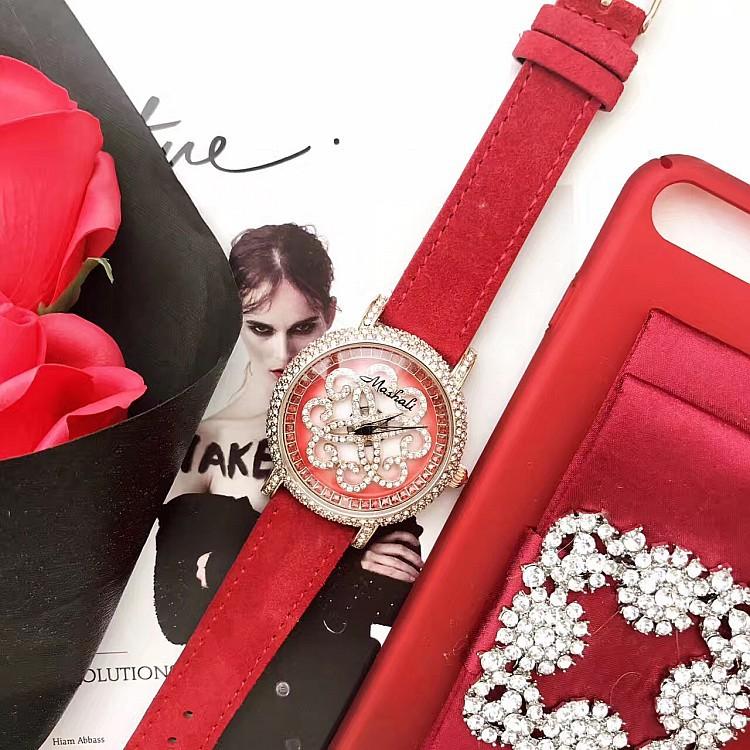 Masalee Nueva Tendencia Moda Reloj de Mujer con Incrustaciones de Diamantes Correa de Piel