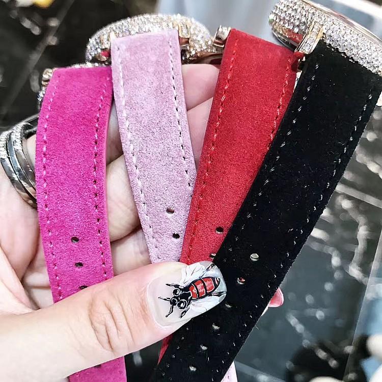 Marca: Mashali 玛莎莉 Introducción: La versión Marsali de 4 cm de diámetro gira, con una correa de cuero de gamuza. La tela es una correa de gamuza, y el lado que toca la muñeca es de cuero genuino liso, un diseño muy considerado que lo hace más cómodo de llevar. El círculo interior está completamente engastado con diamantes Swarovski, cada uno costando cerca de un dólar. El costo es muy alto. Es la versión Chrome Hearts de 4.0 cm, demasiado hermosa. Los cuatro colores son magníficos. La correa es de cuero genuino, así que no hay que preocuparse por que se agriete. Modelo: 88174 Material: Carcasa de cobre completa Cubierta inferior de acero Cuero de gamuza importado Diámetro: 4CM Espesor 1.4CM{{{{{{{{{{
