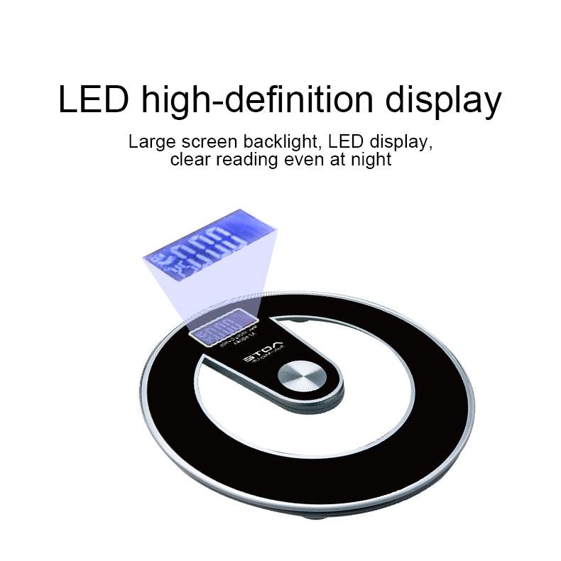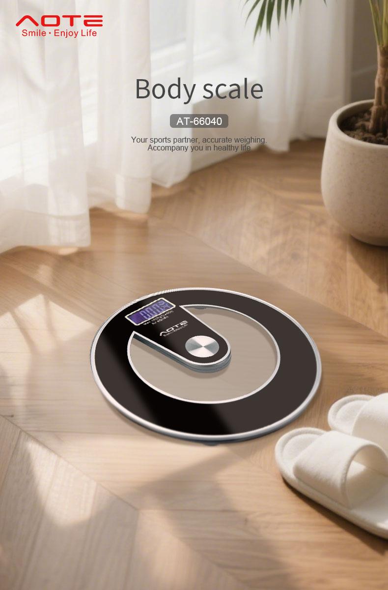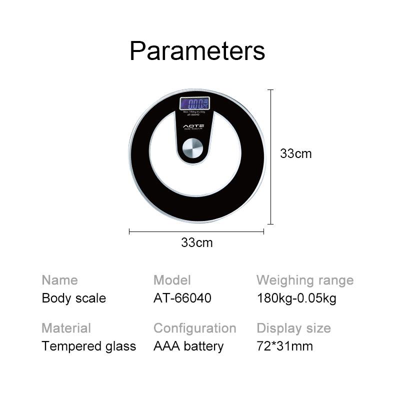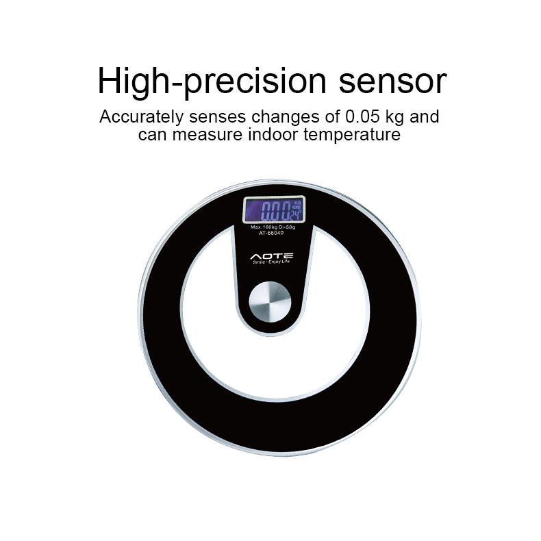 Báscula Humana 180KG - Negro AOTE Nueva báscula electrónica redonda de cristal Alta precisión 0.05KG báscula de peso Báscula de salud AT-66040