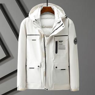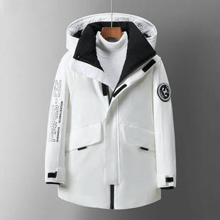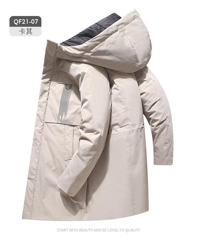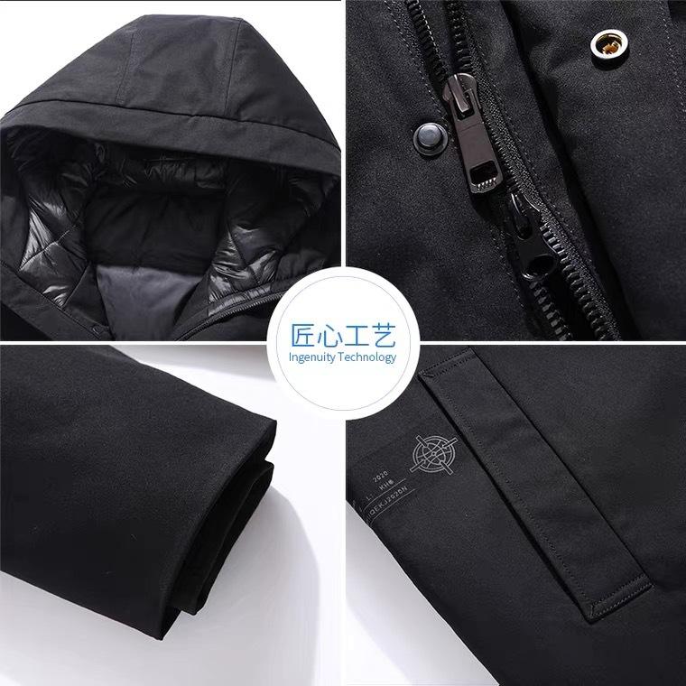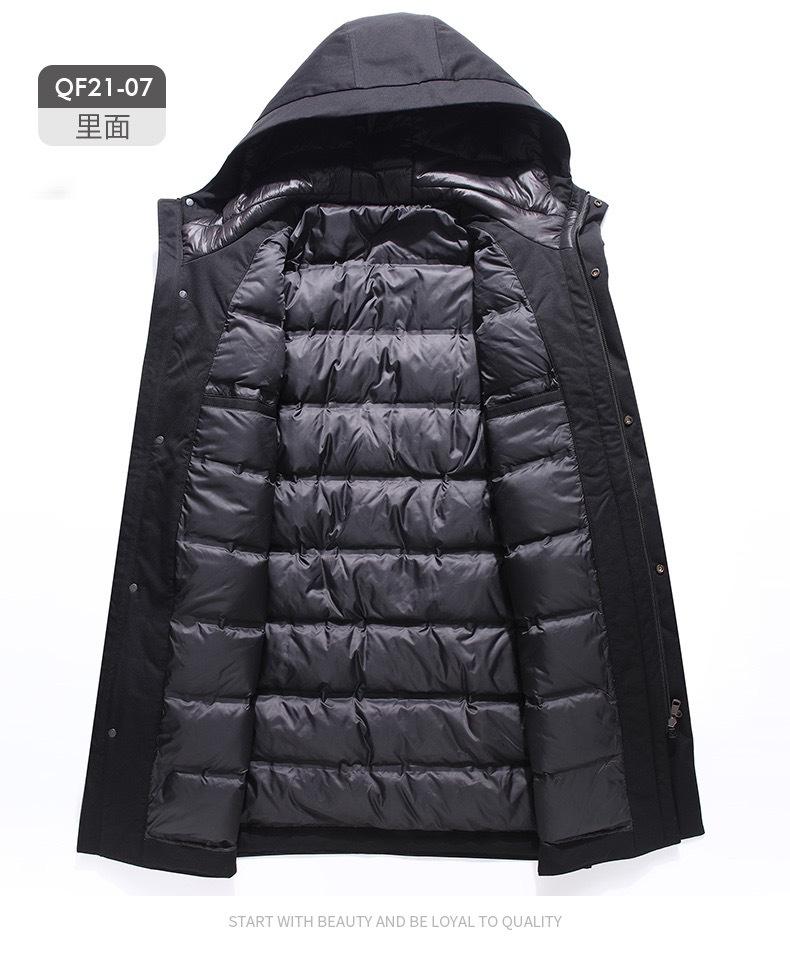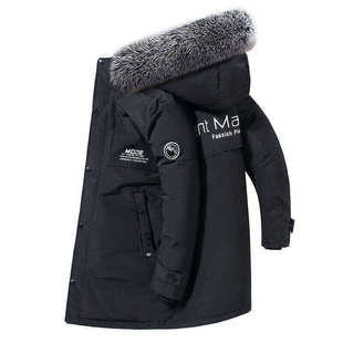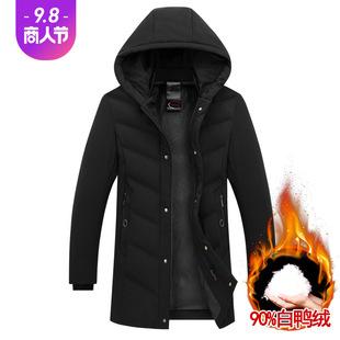 Chamarra de plumas para hombre larga nueva gruesa cálida para invierno a prueba de viento talla grande abrigo con capucha exportación comercio mayorista