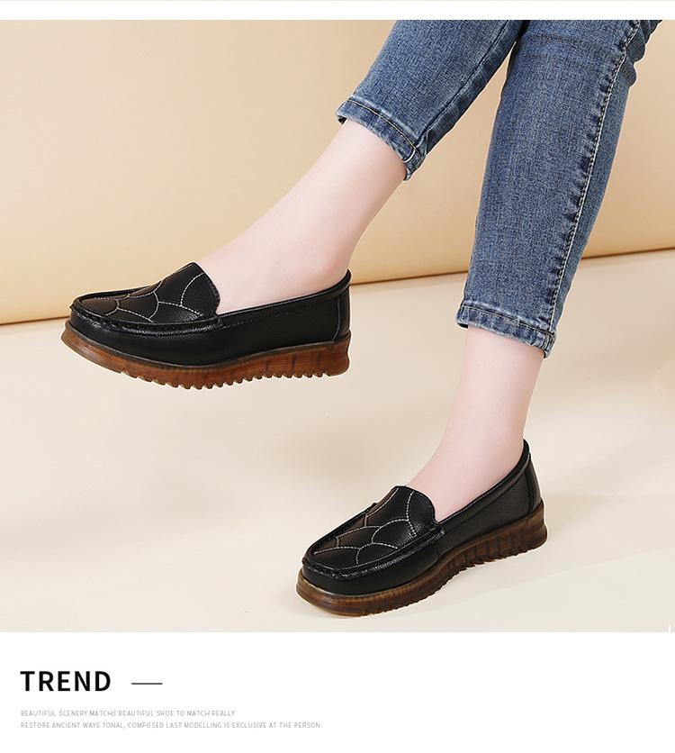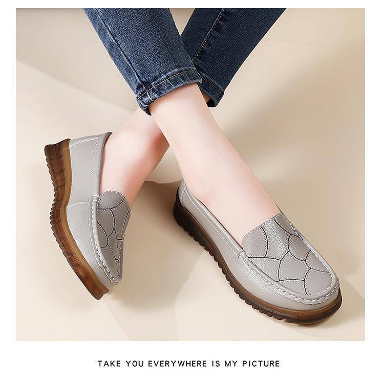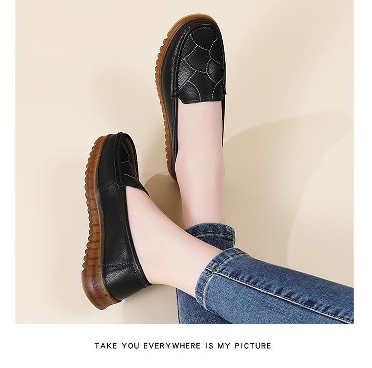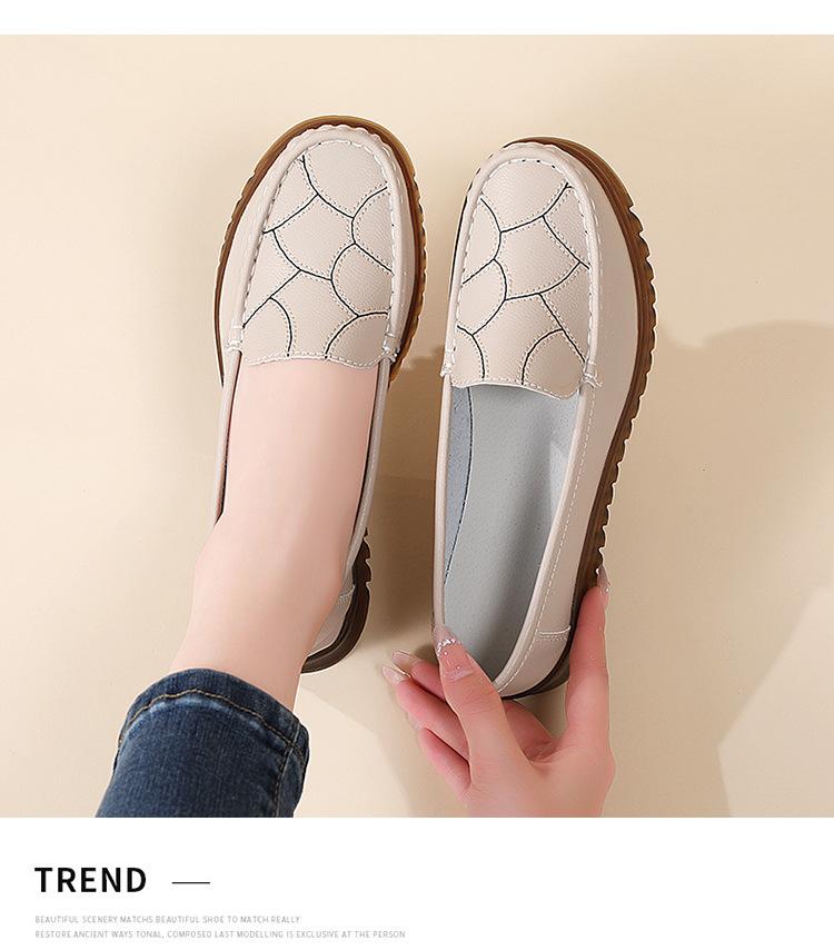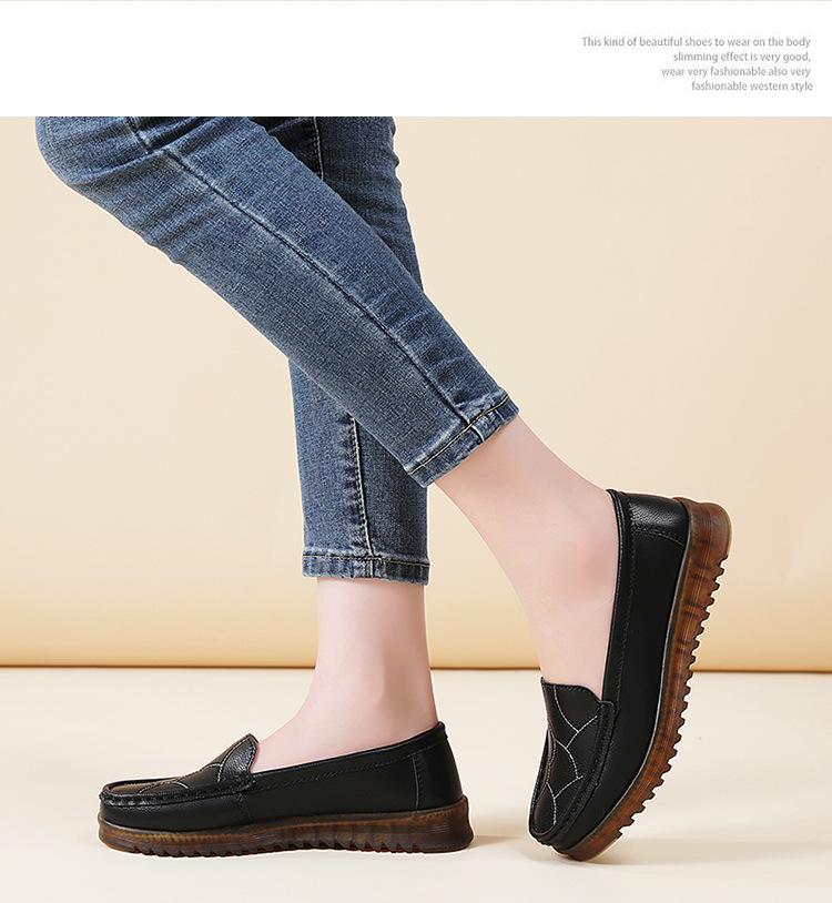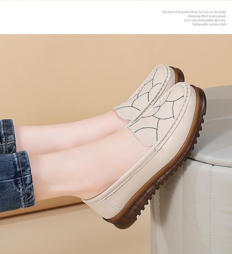 Otoño 2025 Nuevo Estilo Suela de Tendón Zapatos de Mamá Bordado Zapatos Individuales para Mujer Slip-On Ligeros Antideslizantes Casual Zapatos de Frijol para Mujer