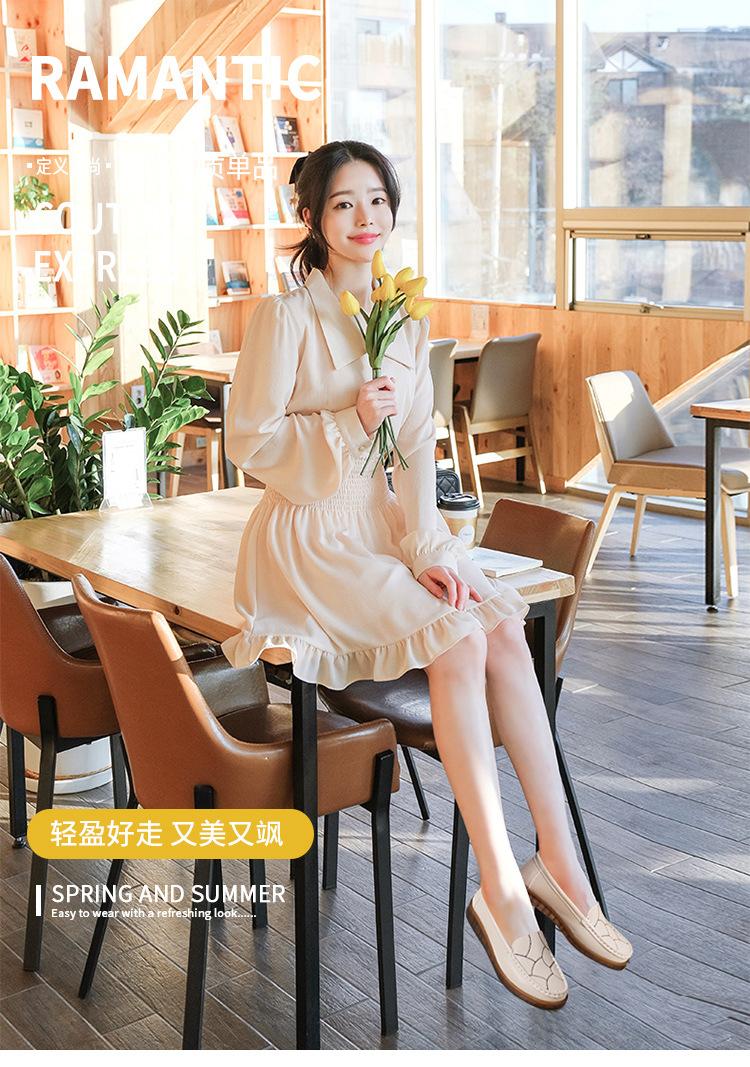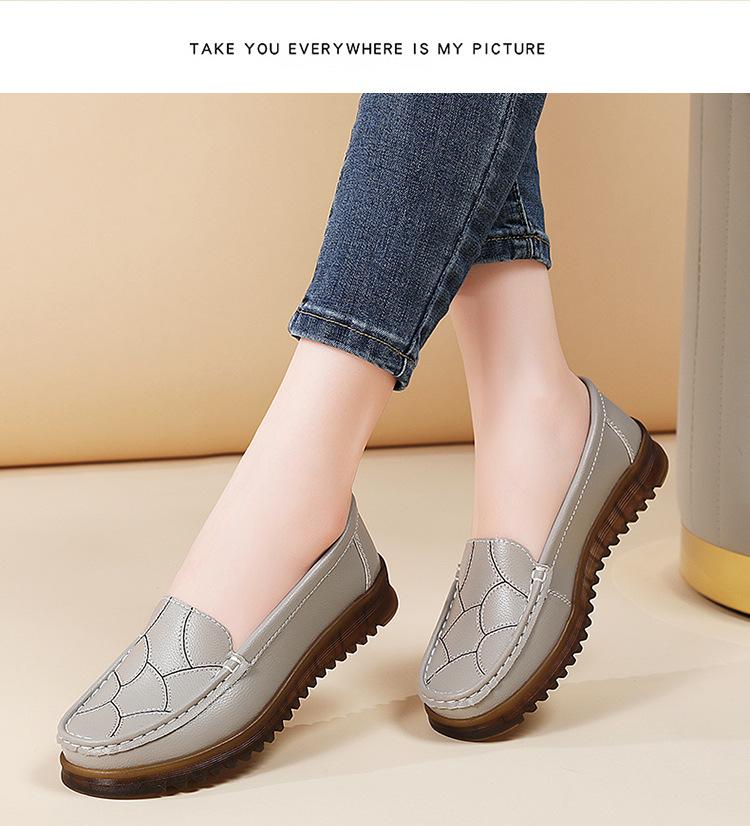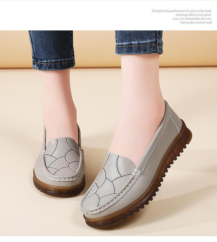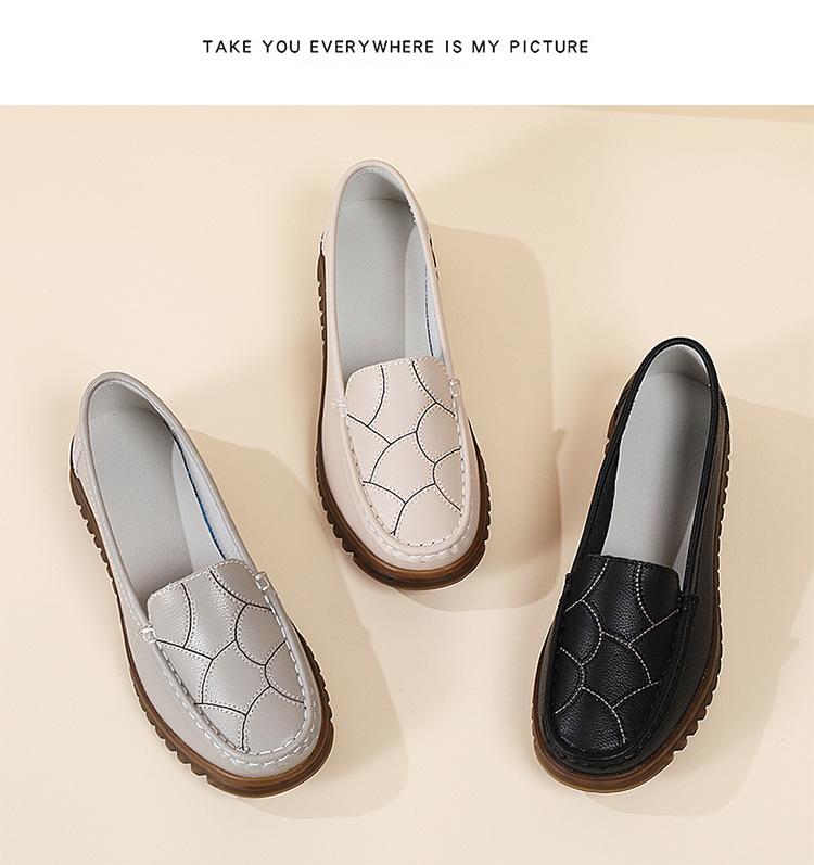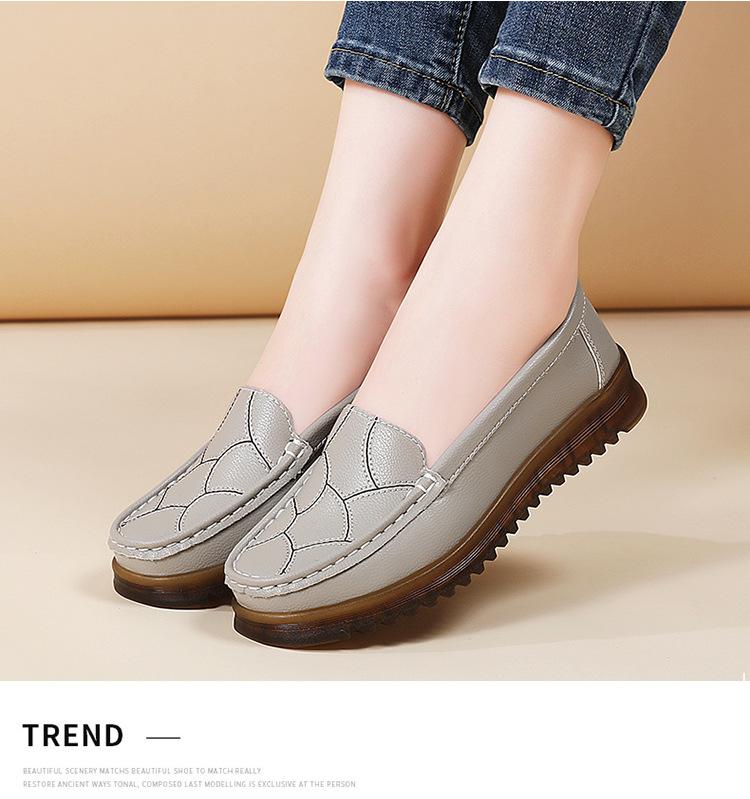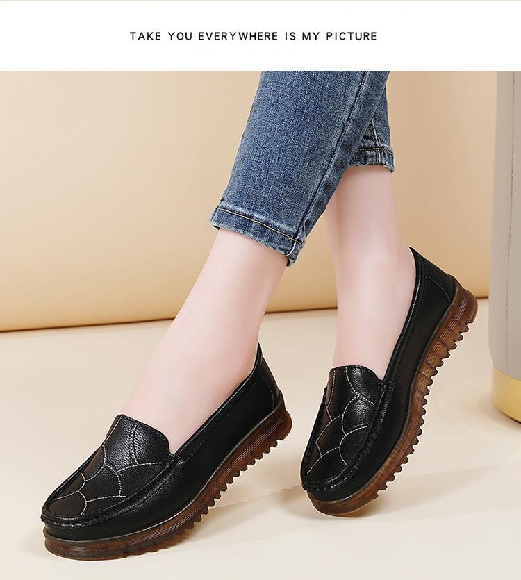 Otoño 2025 Nuevo Estilo Suela de Tendón Zapatos de Mamá Bordado Zapatos Individuales para Mujer Slip-On Ligeros Antideslizantes Casual Zapatos de Frijol para Mujer