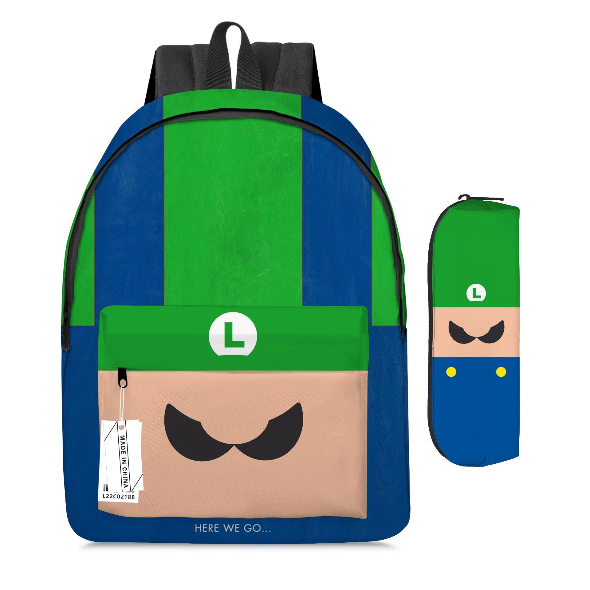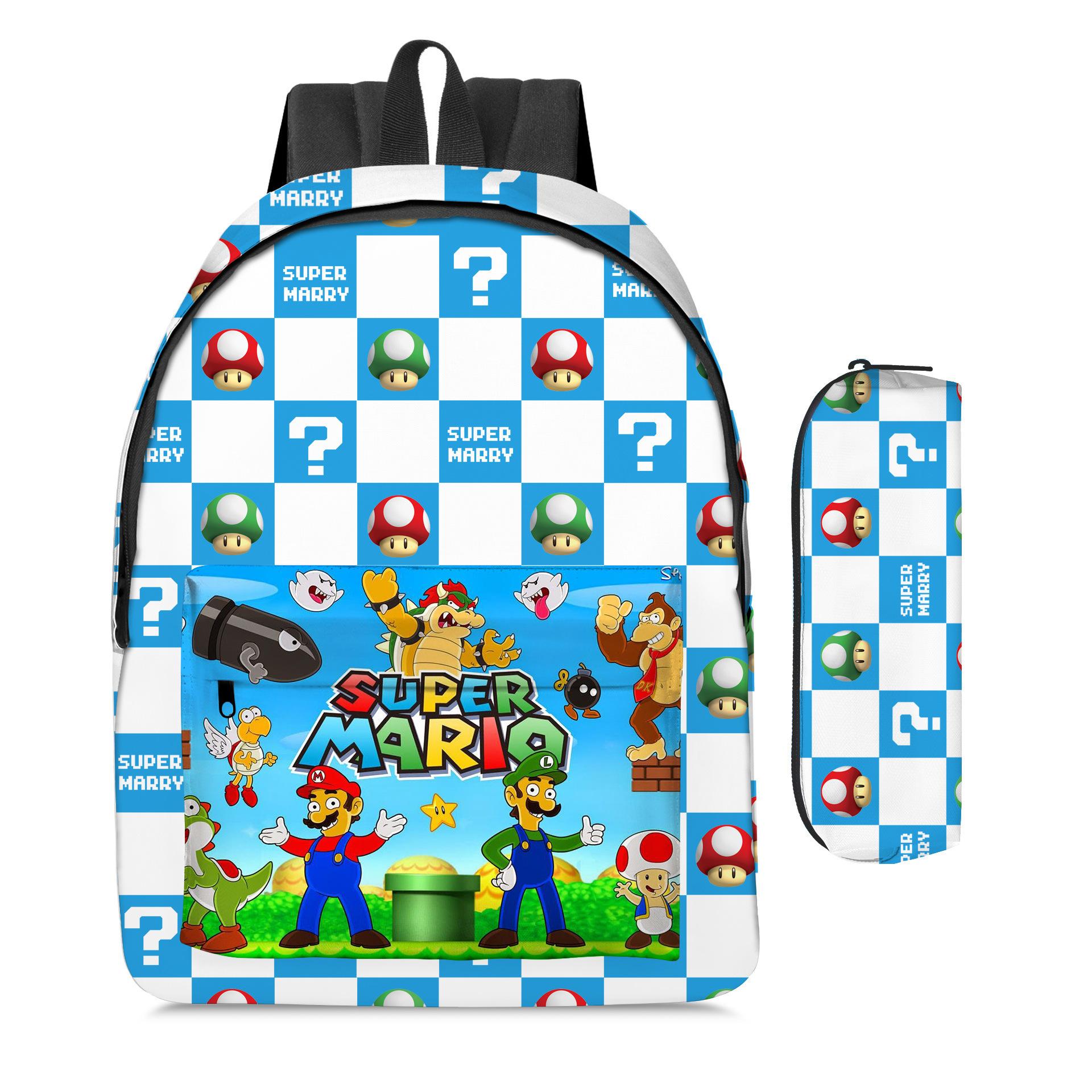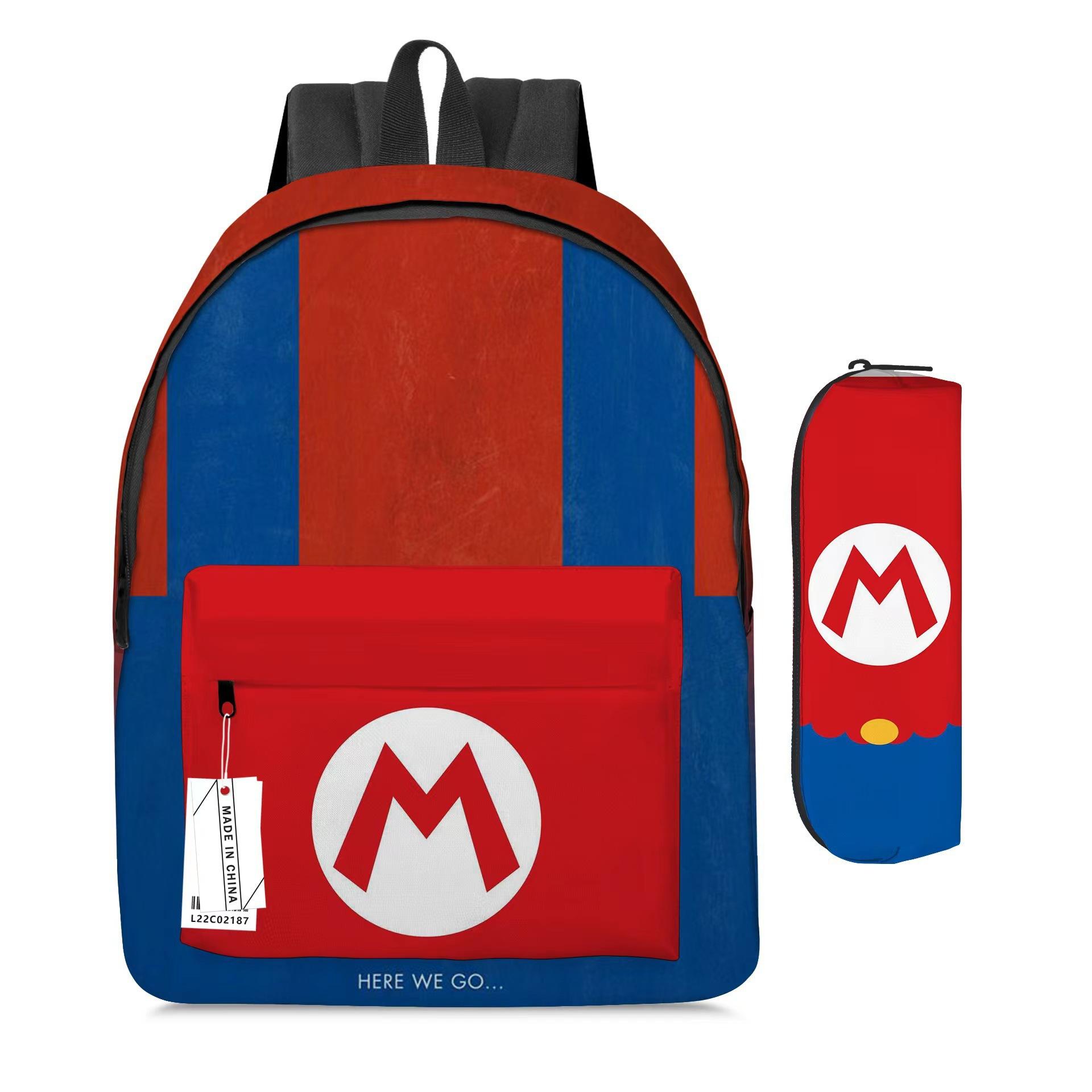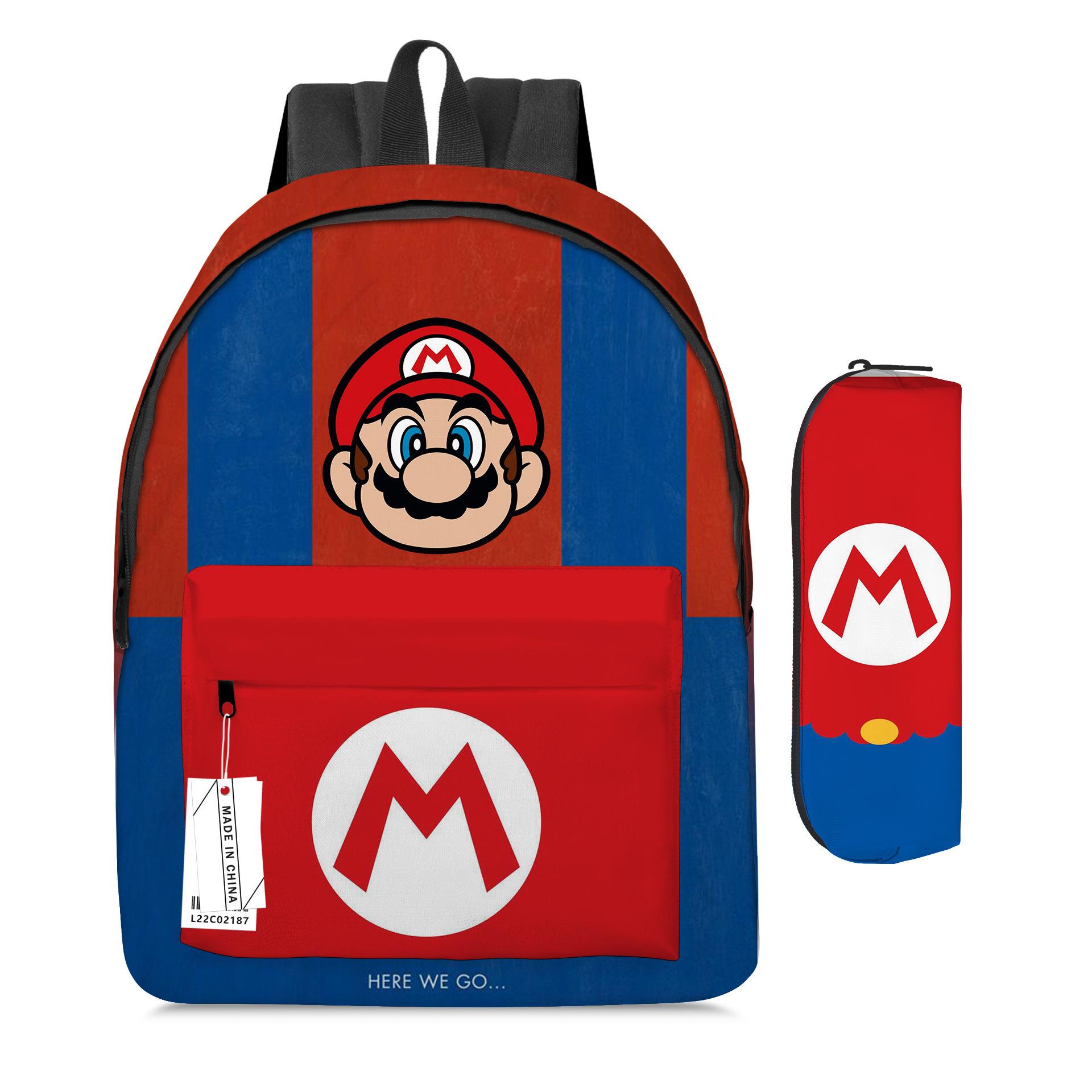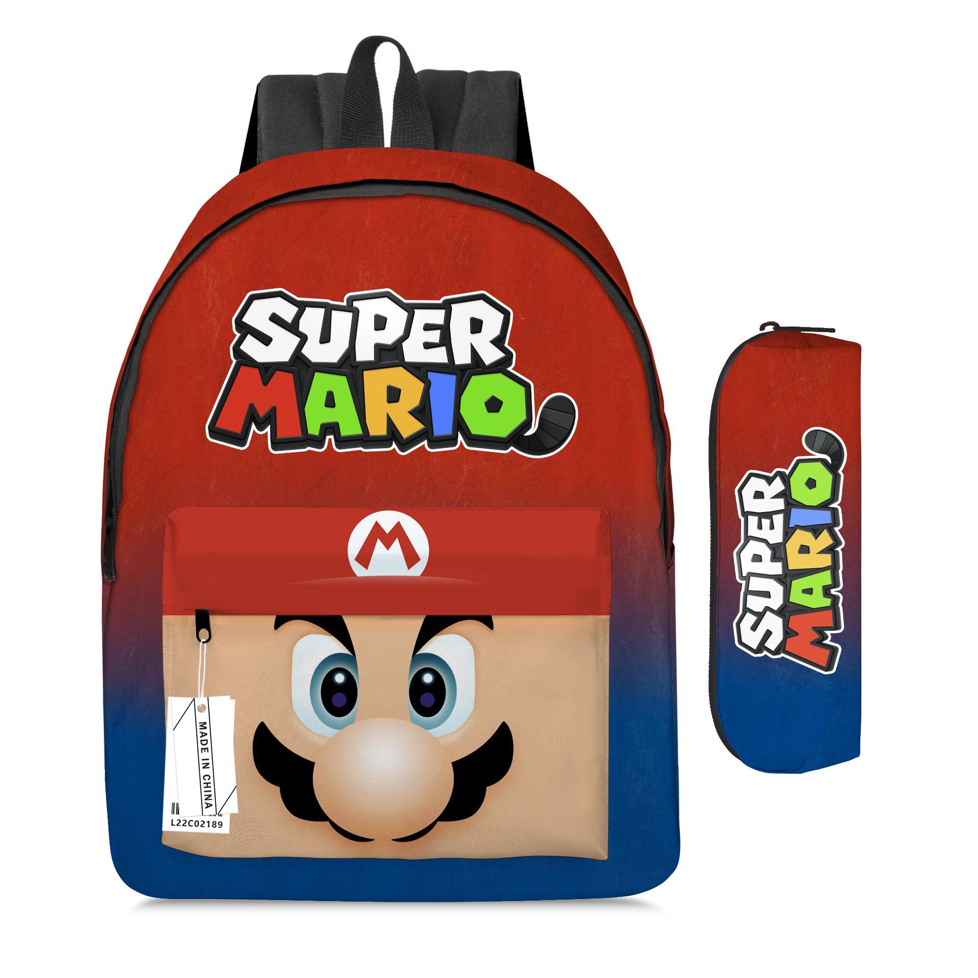 Mochila de Dibujos Animados de Mario Transfronteriza Juego de Dos Piezas Mochila Escolar para Estudiantes de Mario Estuche para Lápices Super Mario Maro