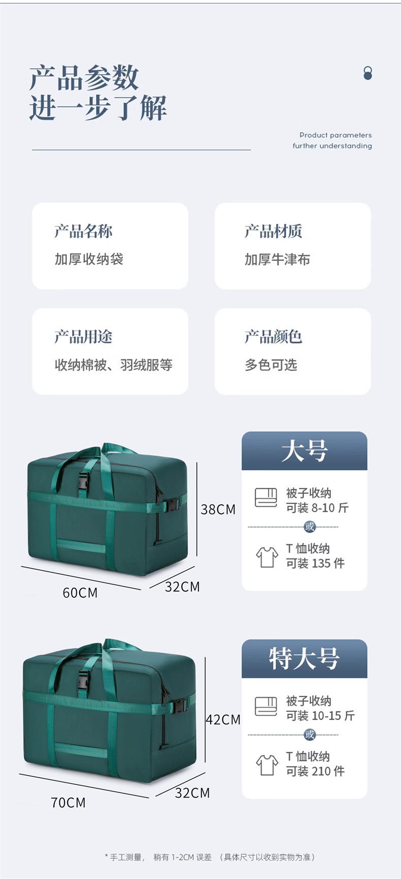 Bolsa de Viaje Gran Capacidad Tela Oxford Equipaje Bolsa para Mudanzas Bolsa de Viaje Facturada por Aerolínea Bolsa de Almacenamiento para Ropa Edredón Venta al por Mayor
