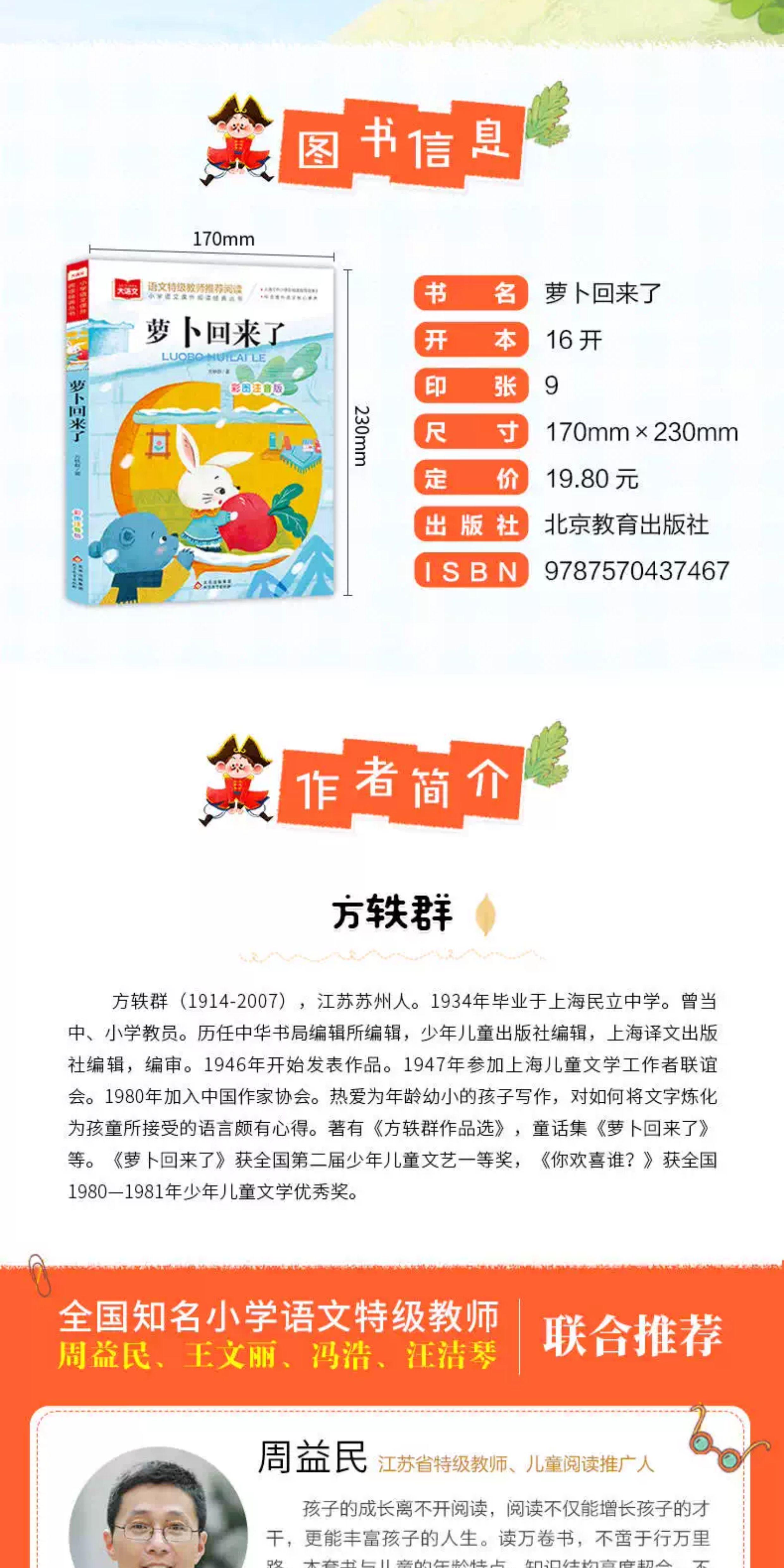 Carrot is back, The Analects, The Mouse Marries a Daughter, Read with adults, Lonely little crab, Grimm's Fair...