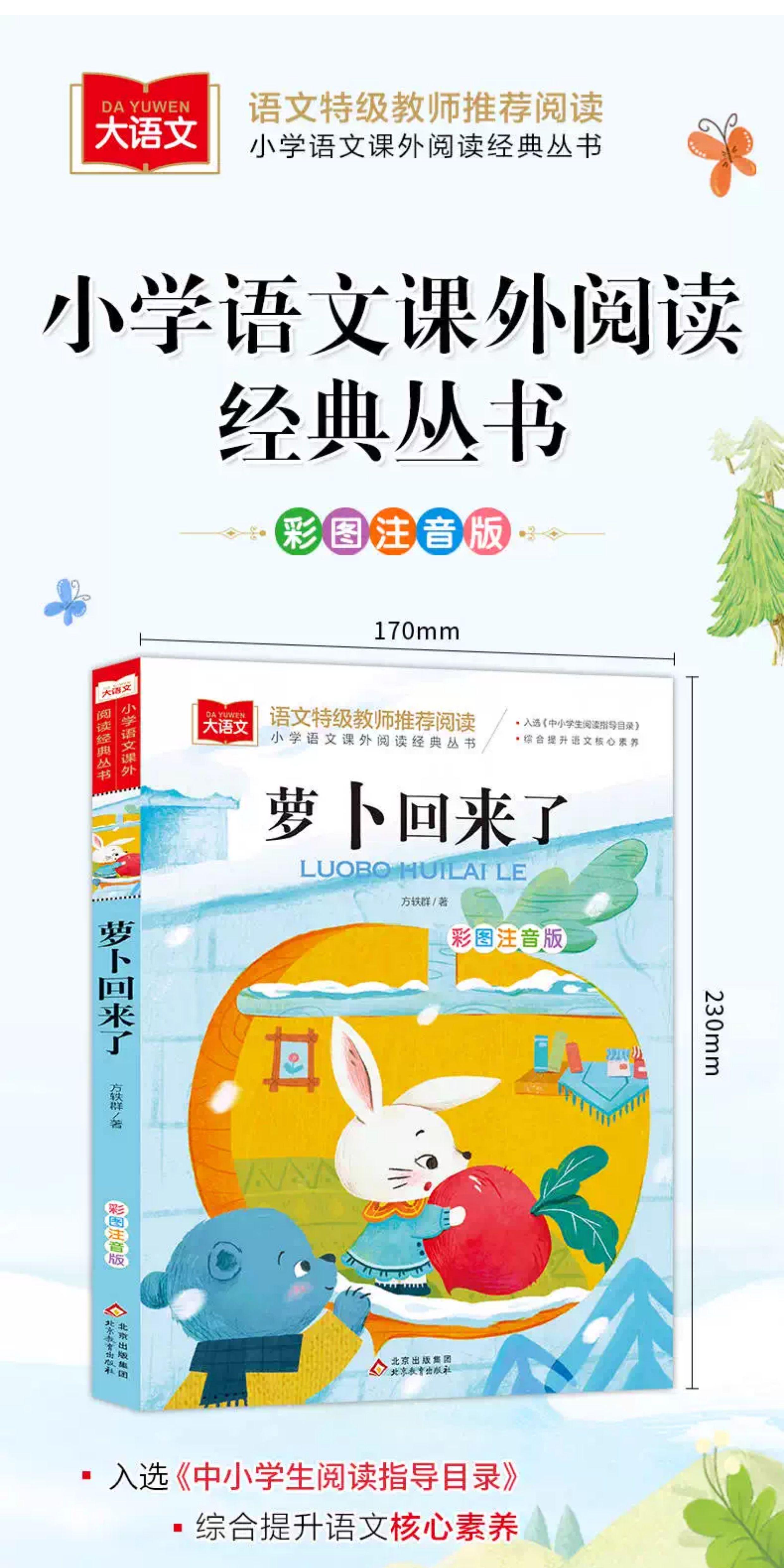 El rábano ha vuelto versión pinyin Fang Yiqun primer grado lectura libros extracurriculares maestro recomendó guía de lectura directorio pequeño