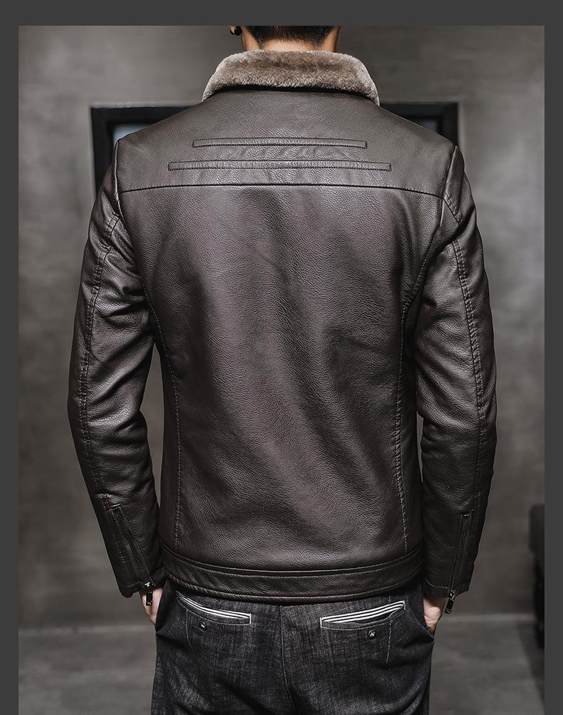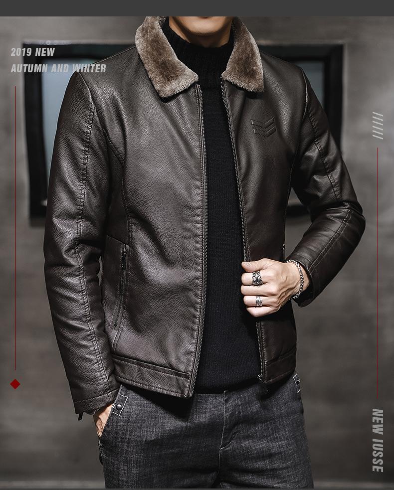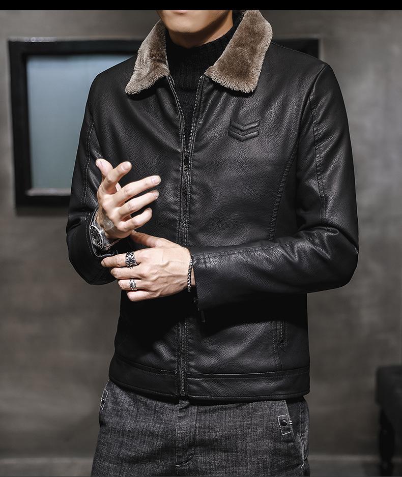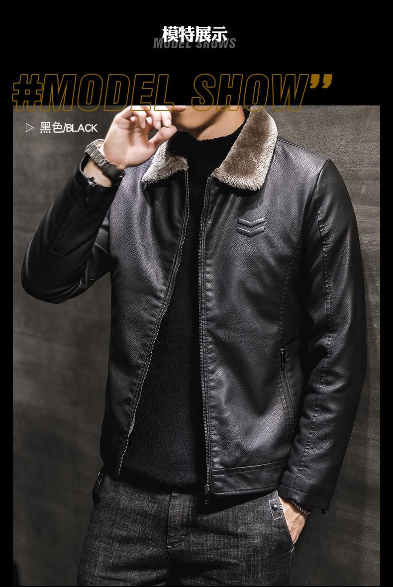 Chaqueta de Cuero para Hombre de Moda Nueva Chaqueta de Cuero PU para Motociclista para Jóvenes Forrada con Vellón Engrosada Cálida Casual para Hombre