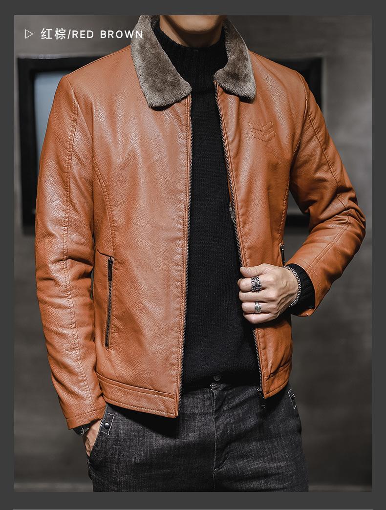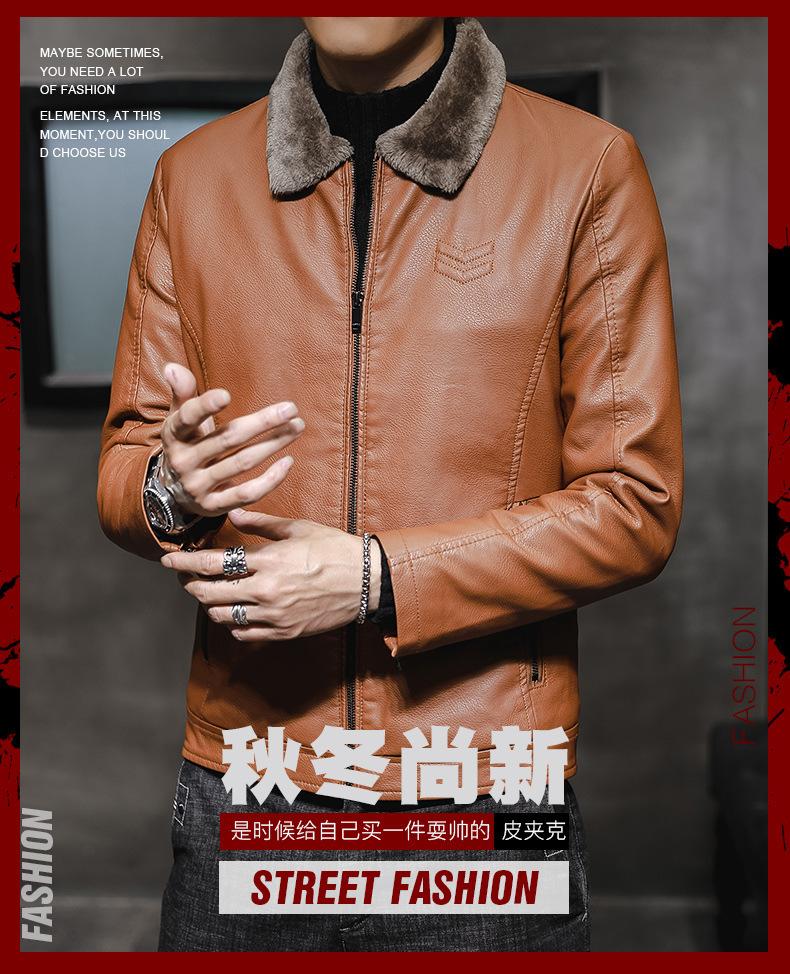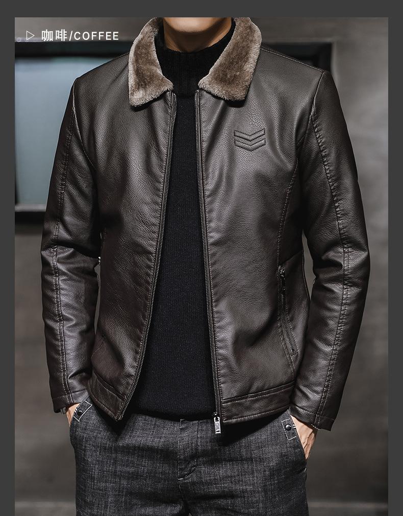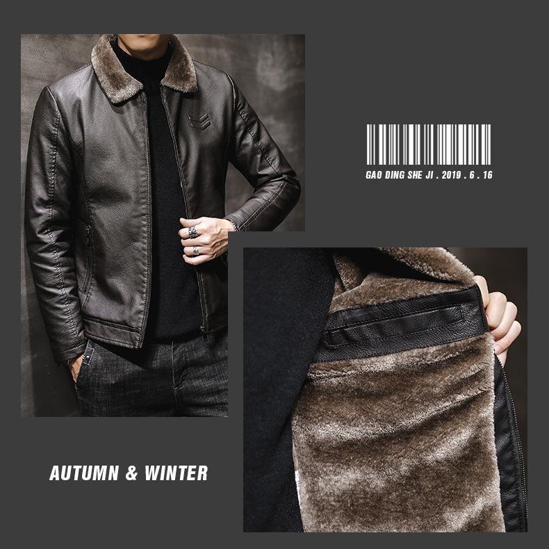 Chaqueta de Cuero para Hombre de Moda Nueva Chaqueta de Cuero PU para Motociclista para Jóvenes Forrada con Vellón Engrosada Cálida Casual para Hombre