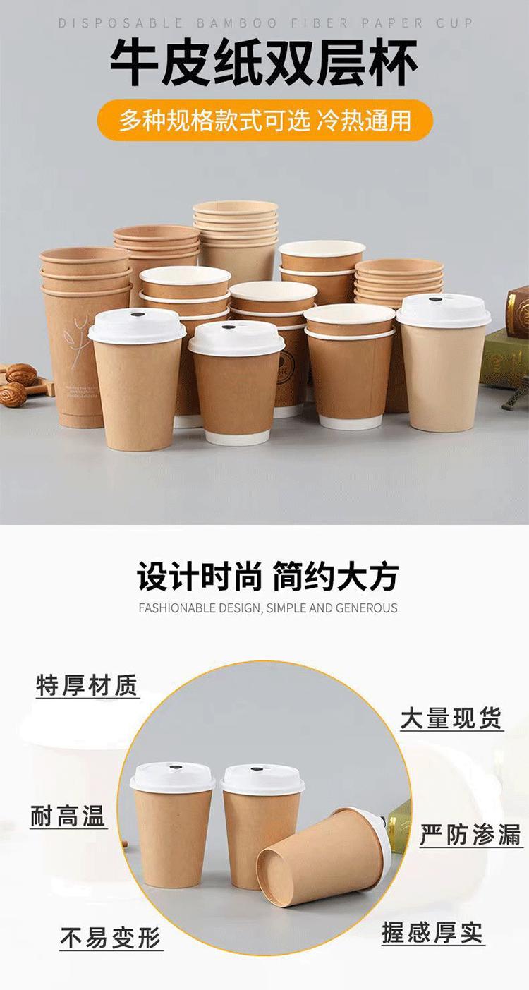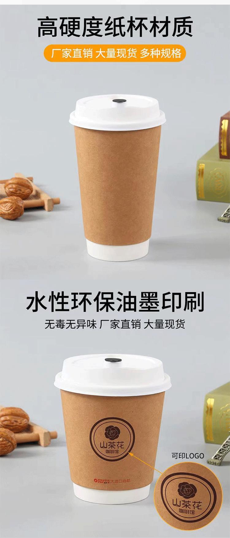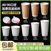 Vaso de papel hueco desechable al por mayor, leche de soja, leche, té, embalaje para llevar, vaso de café de papel kraft doble, cinturón