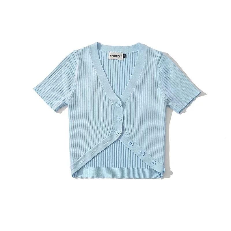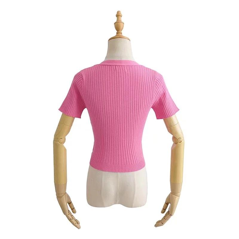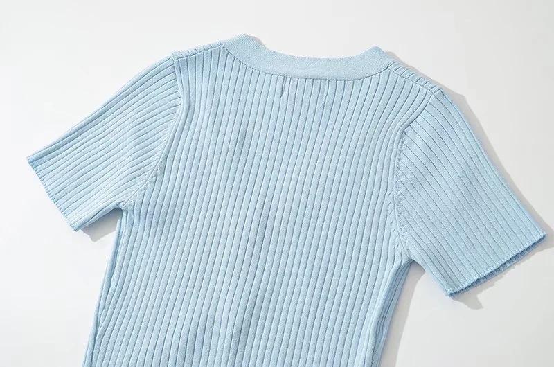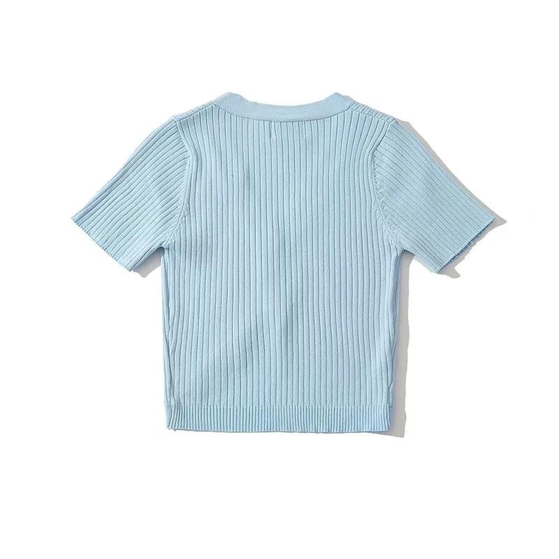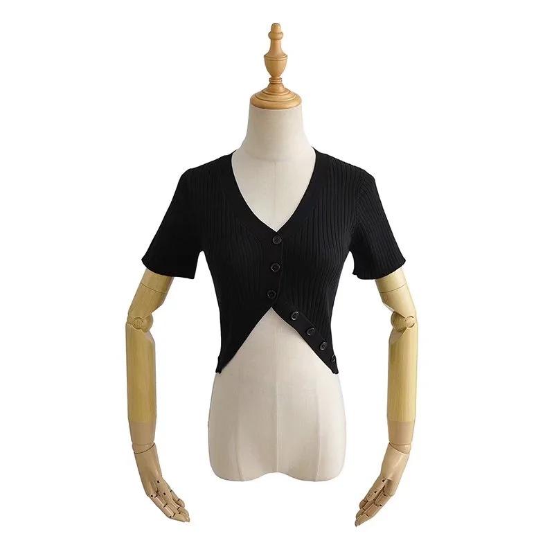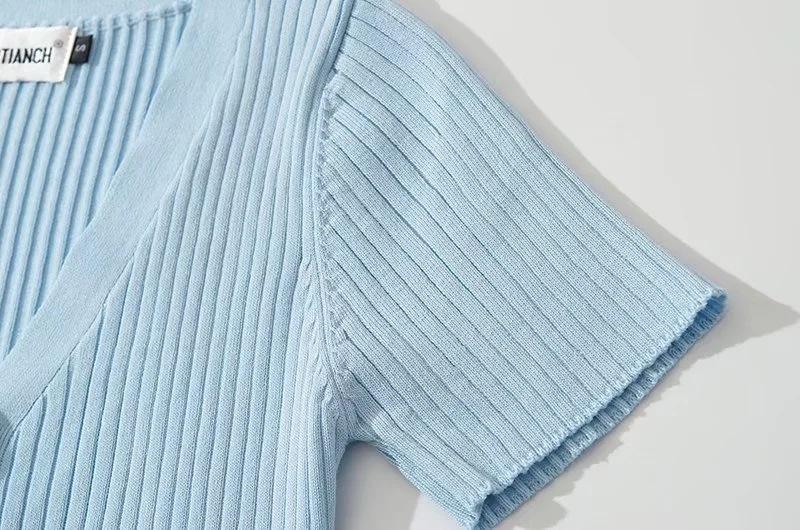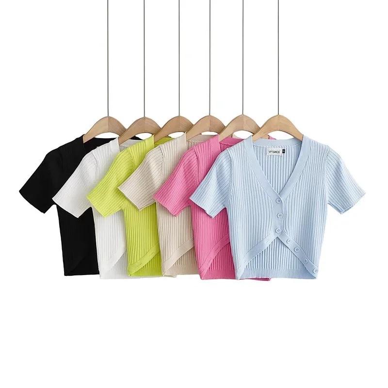 2022 Verano Estilo Lujuria Pura Europeo y Americano Cuello en V Aspecto Adelgazante Corto Ombliguera Punto de Cintura Alta Camiseta de Manga Corta para Mujer