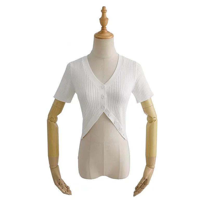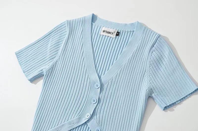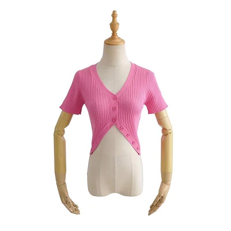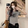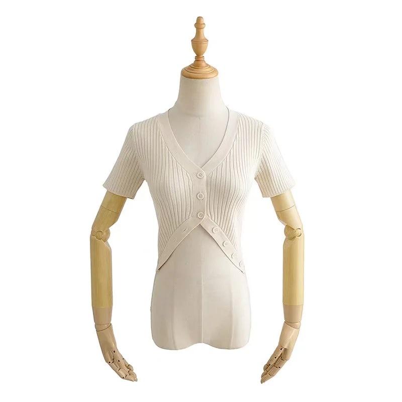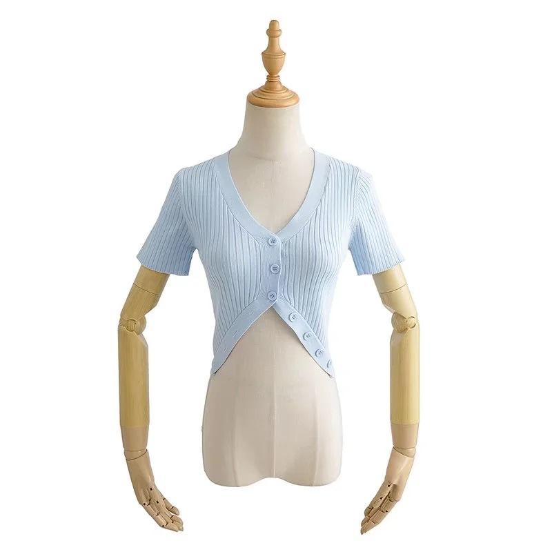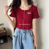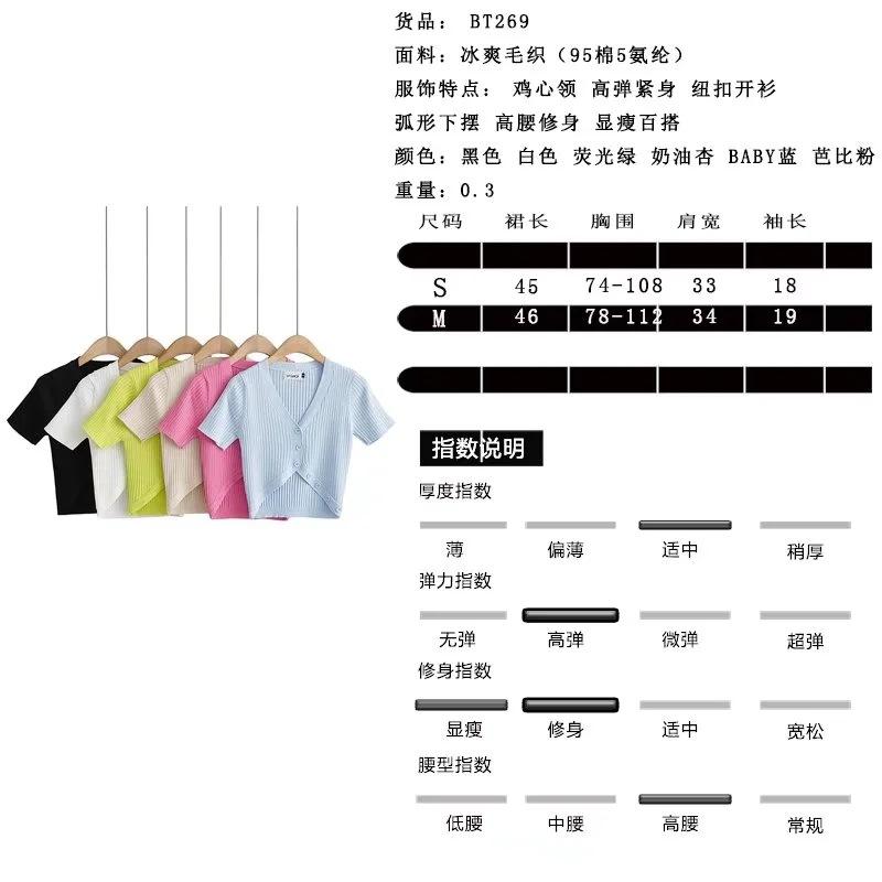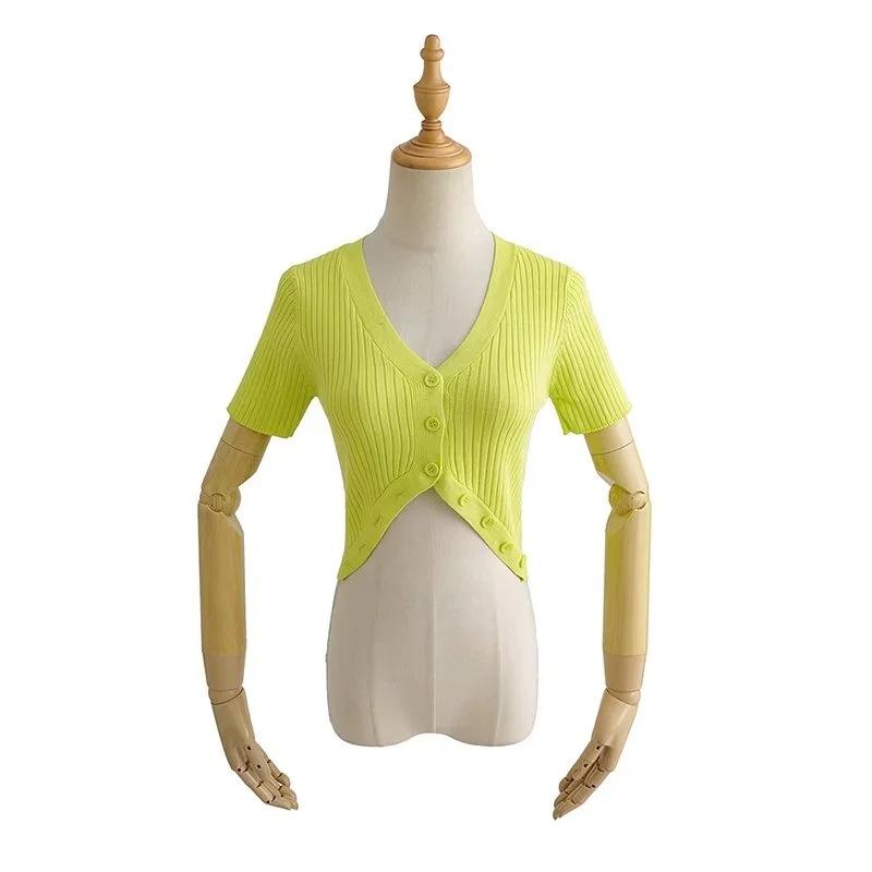 2022 Verano Estilo Lujuria Pura Europeo y Americano Cuello en V Aspecto Adelgazante Corto Ombliguera Punto de Cintura Alta Camiseta de Manga Corta para Mujer
