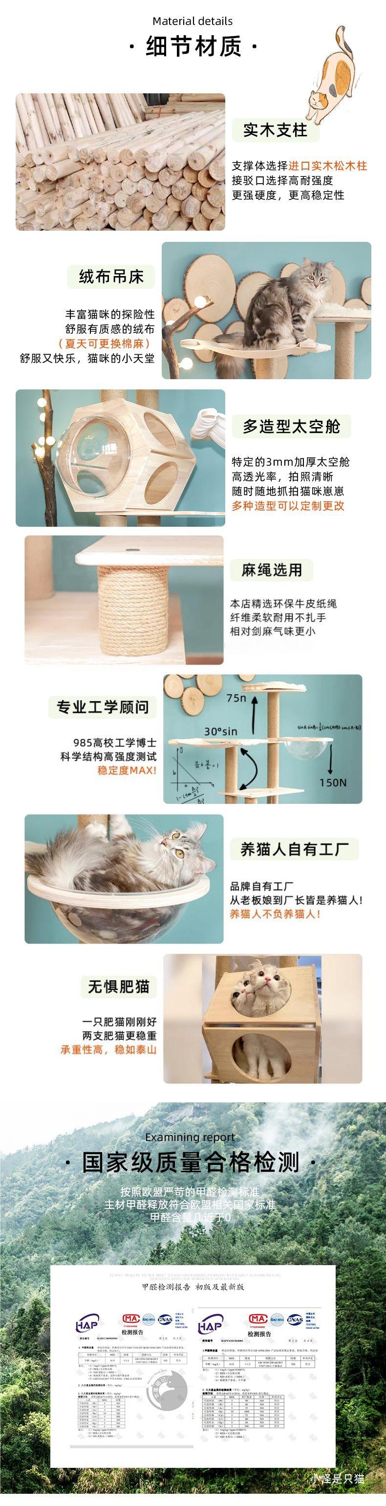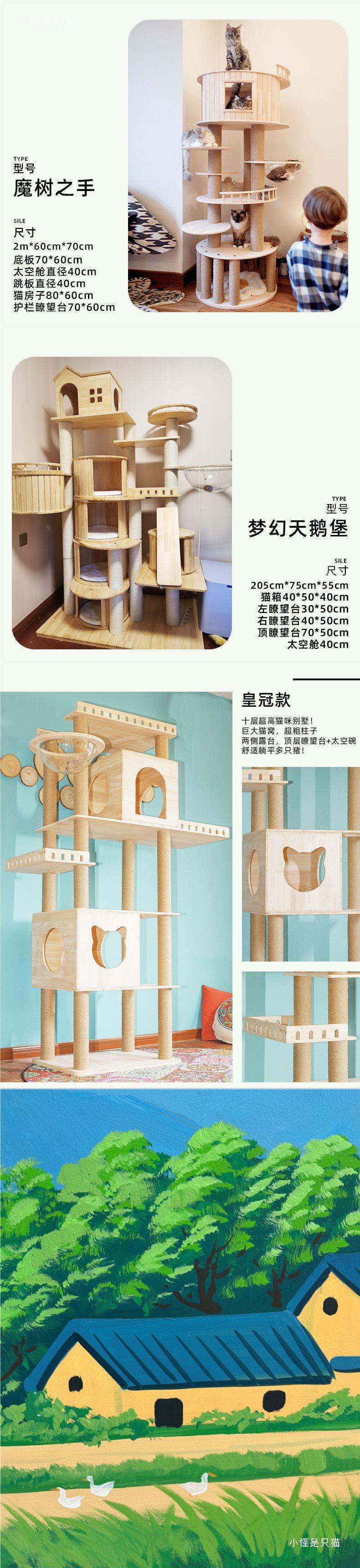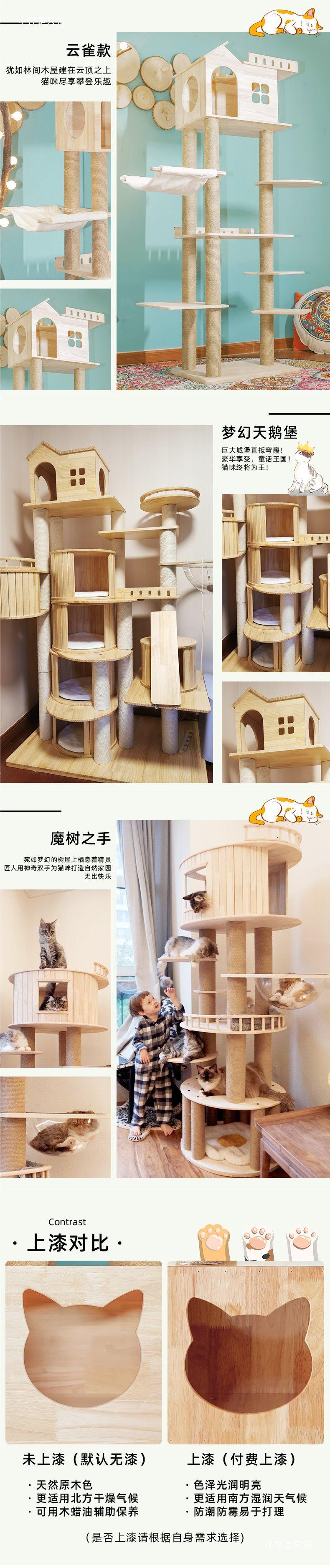 Madera Maciza Grande Maine Coon Gato Marco de Escalada Lujo Árbol para Gatos Villa Espacio Nido para Gatos Tabla Rascadora para Gatos Columna de Cuerda de Cáñamo