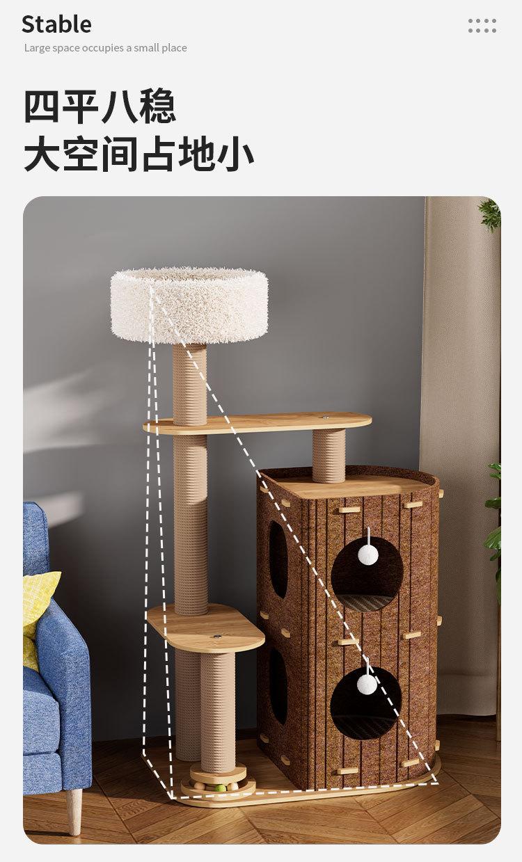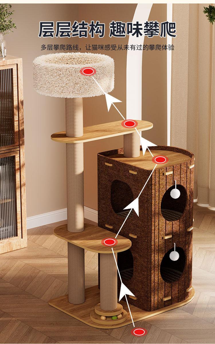 Árbol para Gatos de Múltiples Capas Agujero de Árbol Cama para Gatos Suministros para Mascotas Universal para Cuatro Estaciones Integrado Resistente al Desgaste Marco para Trepar Gatos Nido de Fieltro Rascador para Gatos