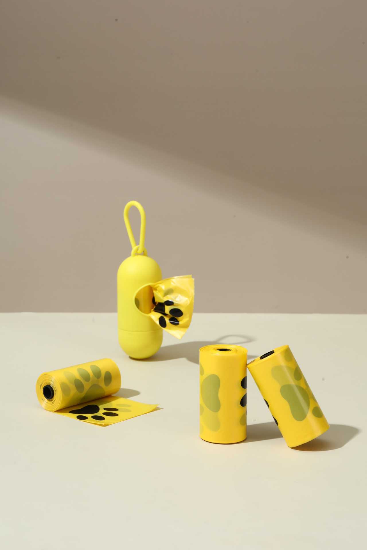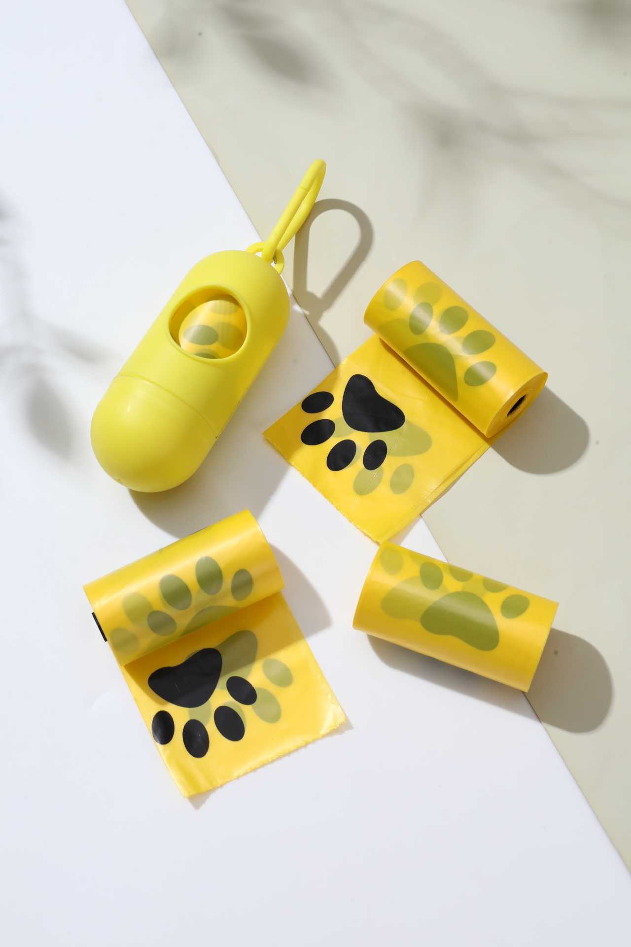 yellow big paw print, Yellow Dispenser (without poop bags), Dispenser + Poop Bag