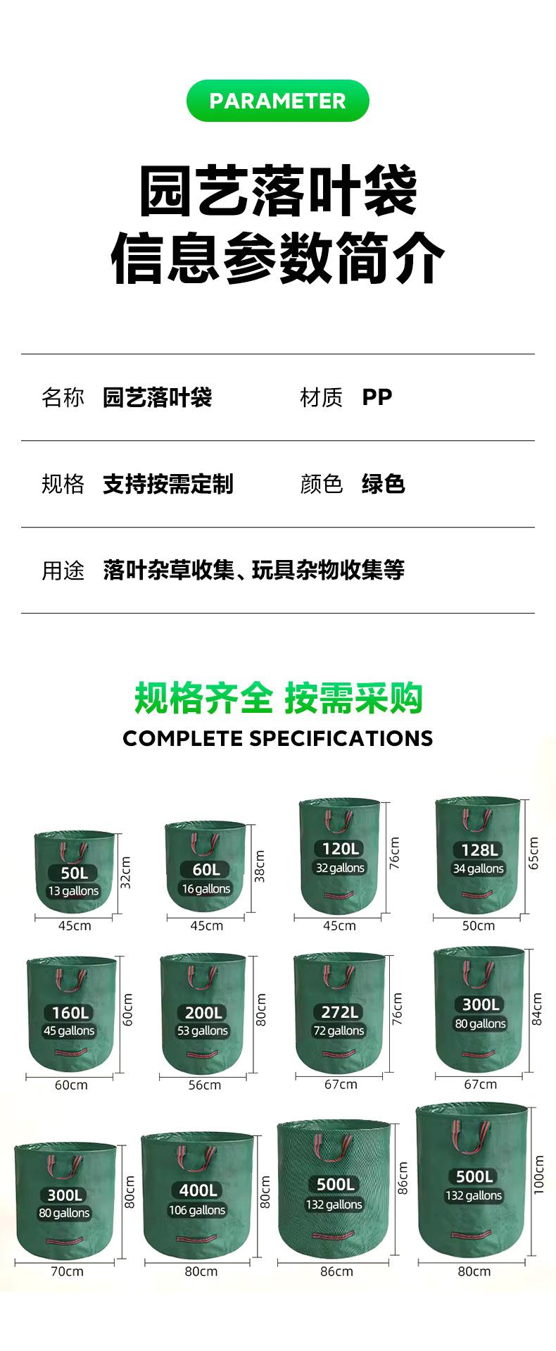 Bolsa de Jardín Transfronteriza Hierbas Ramas Hojas Caídas Bolsa de Recolección Soporte de Pie Gran Capacidad PP Laminado Impermeable Bolsa de Almacenamiento de Miscelánea