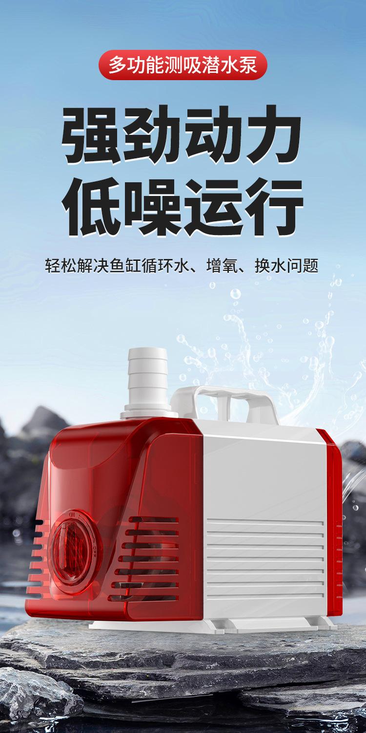 Red and white adjustable flow side suction submersible pump 8w+8mm tendon tube 60cm, Red and White Adjustable ...