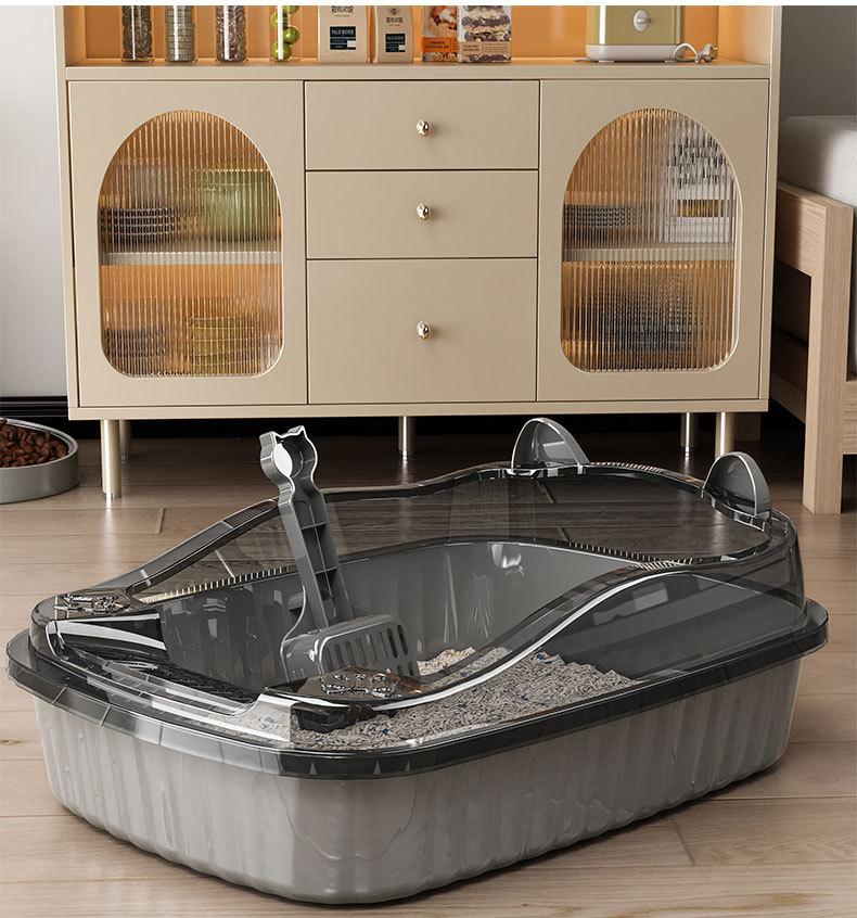 Caja de Arena Extra Grande Semicerrada Gato Abierta Antisalpicaduras Inodoro Antiacarreo Gatito Pequeño Suministros para Mascotas Caja de Arena