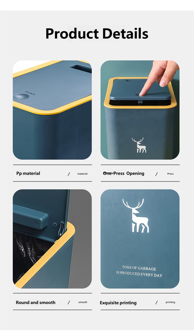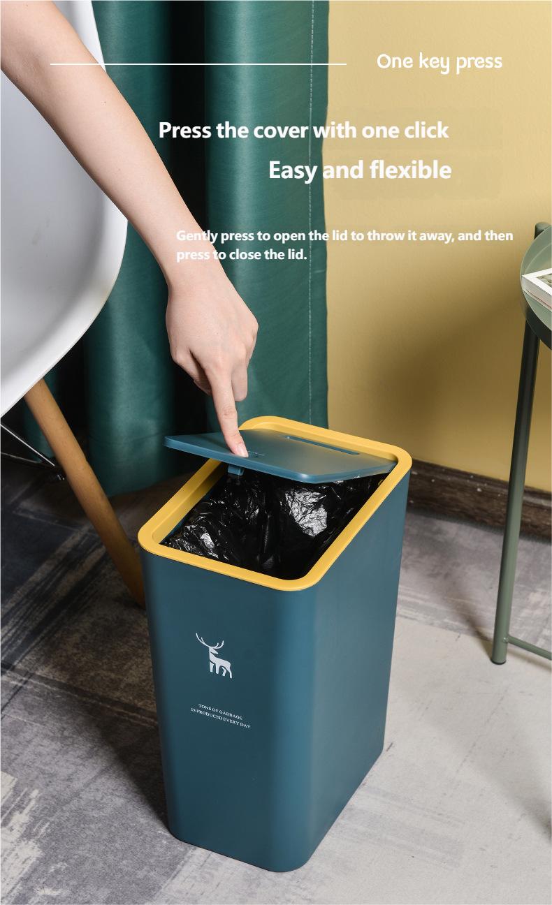 Tapa de Presión con una Tecla-Presione suavemente para abrir, presione de nuevo para cerrar. ¡No se necesitan manos al tirar basura (gracias al diseño del pedal)! Perfecto para mañanas ocupadas o cuando tienes las manos llenas. La bisagra suave asegura un cierre silencioso, evitando ruidos fuertes.
