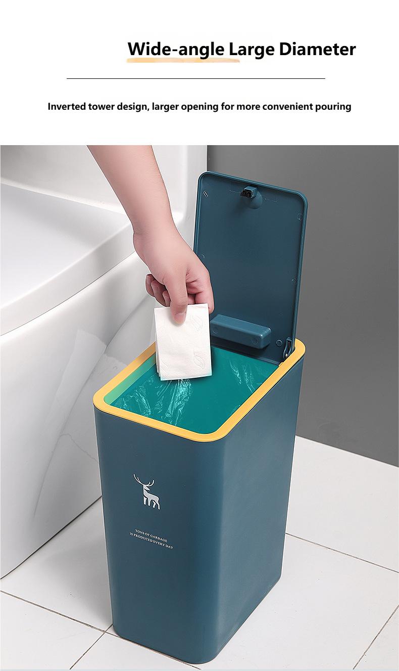 Ángulo Grande Abertura Grande-Vierte la basura sin esfuerzo sin derrames. El clip para bolsa de basura incorporado mantiene las bolsas de forma segura en su lugar, evitando que se resbalen dentro del bote. ¡Hermoso y funcional!