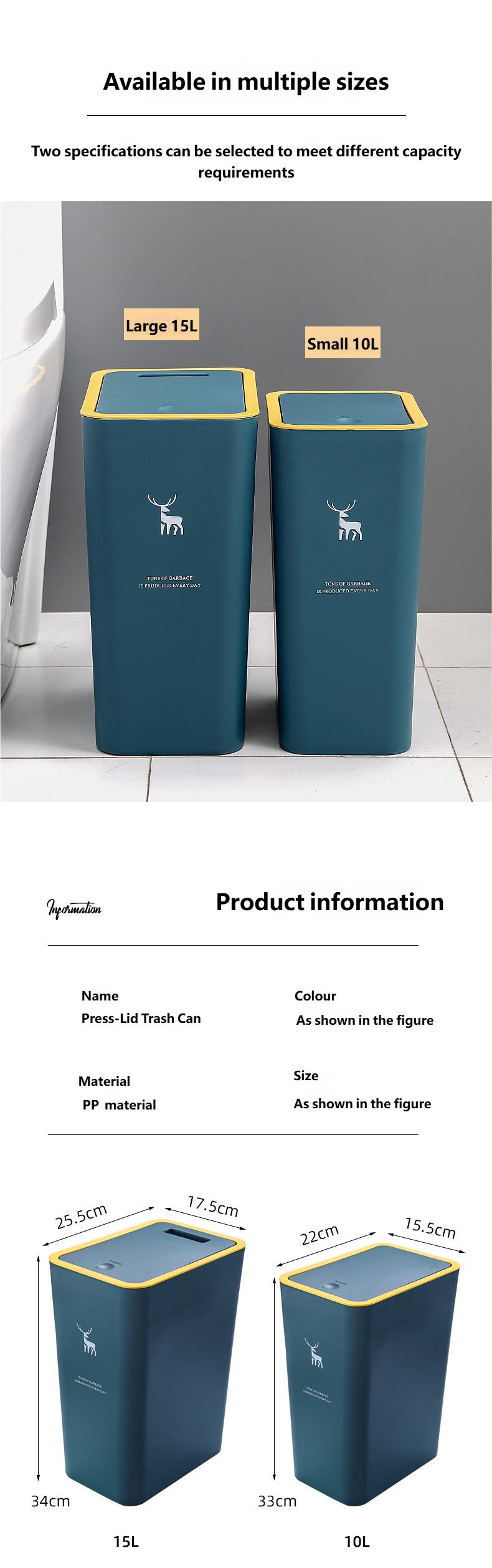 Dos Tamaños Opcionales (10L/15L)-Elija 10L para baños o 15L para cocinas según sus necesidades. Hecho con plástico 100% nuevo, es lo suficientemente resistente para soportar hasta 5 kg (11 libras) sin deformación. ¡Perfecto para residuos domésticos diarios o uso en oficinas pequeñas!