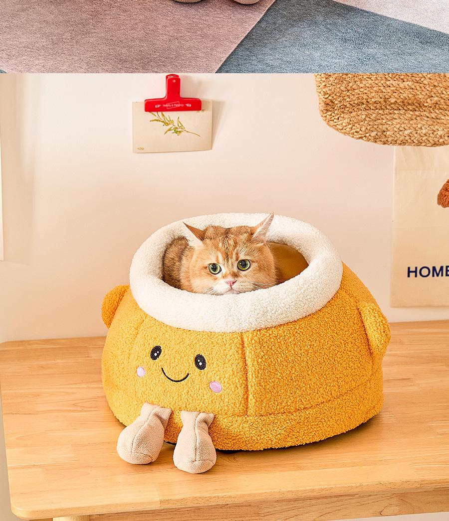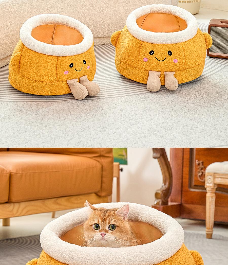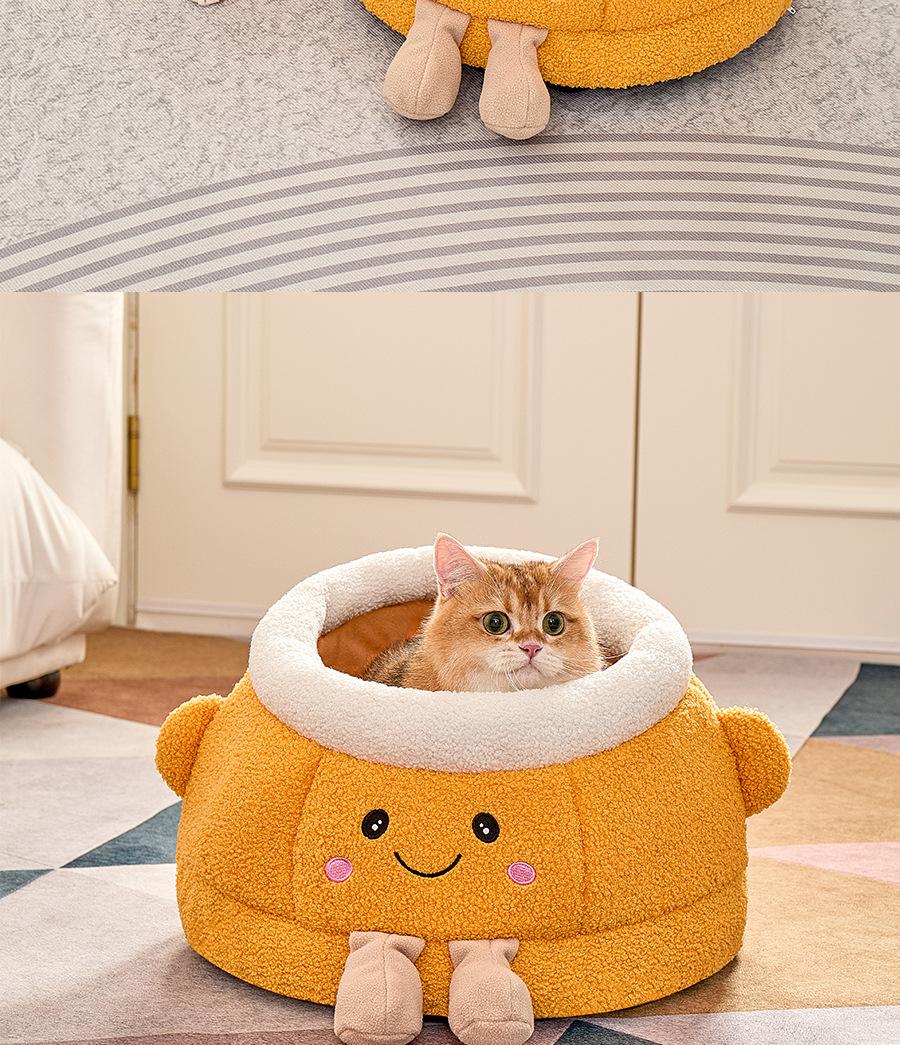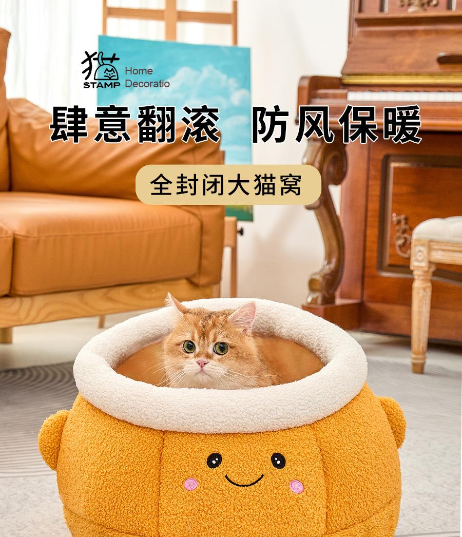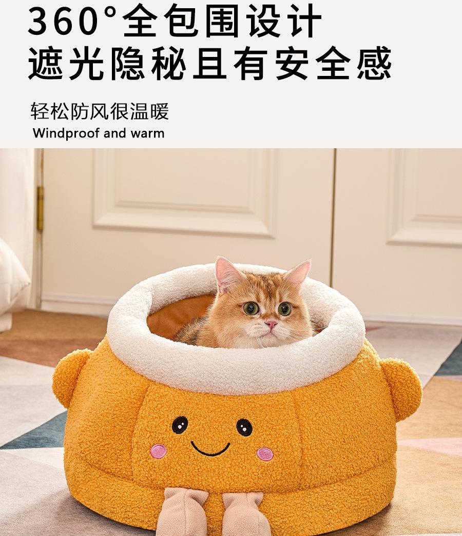 Cama Cálida de Invierno para Gatos Cama para Perros Casa para Mascotas Semicerrada Casa Lavable para Gatos Villa Universal para Mascotas para las Cuatro Estaciones