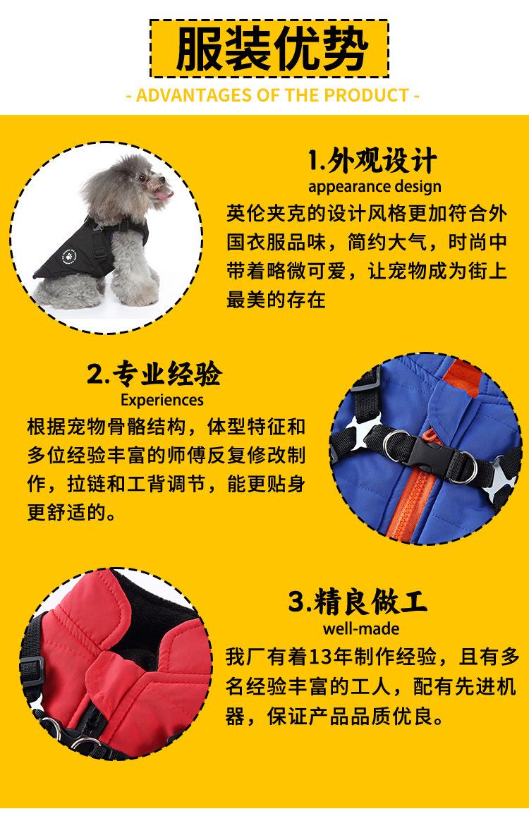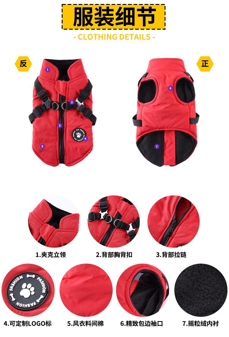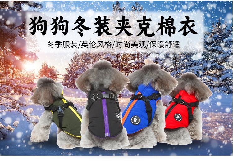 Invierno Nuevo Ropa para Perro Estilo Cremallera Chaqueta para Cachorro con Correa a Prueba de Viento Abrigo de Algodón Espesado Cálido Ropa para Mascota