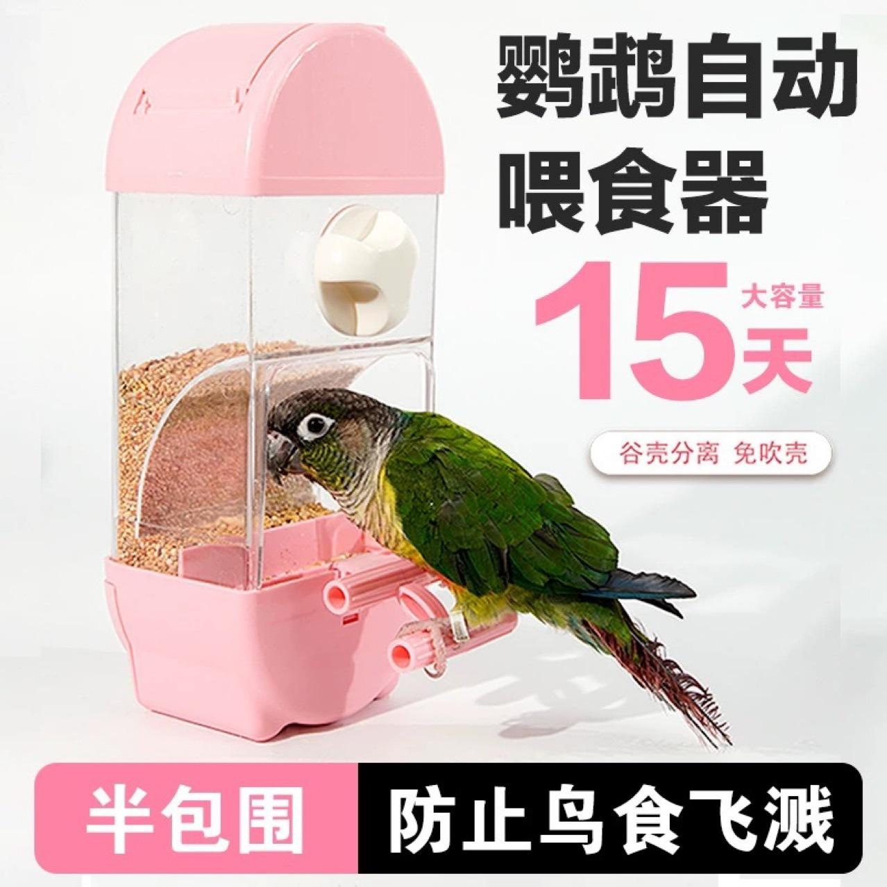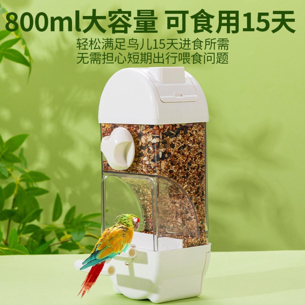 Caja de comida para pájaros comedero automático loro comedero dispensador automático separador de cáscaras antiderrames piel de tigre gran capacidad