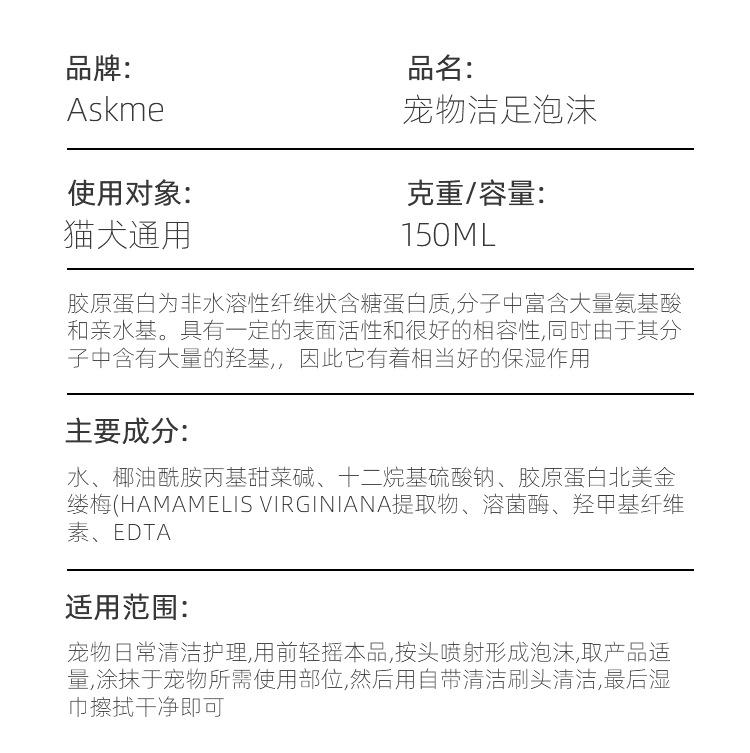 Pet foot cleansing foam