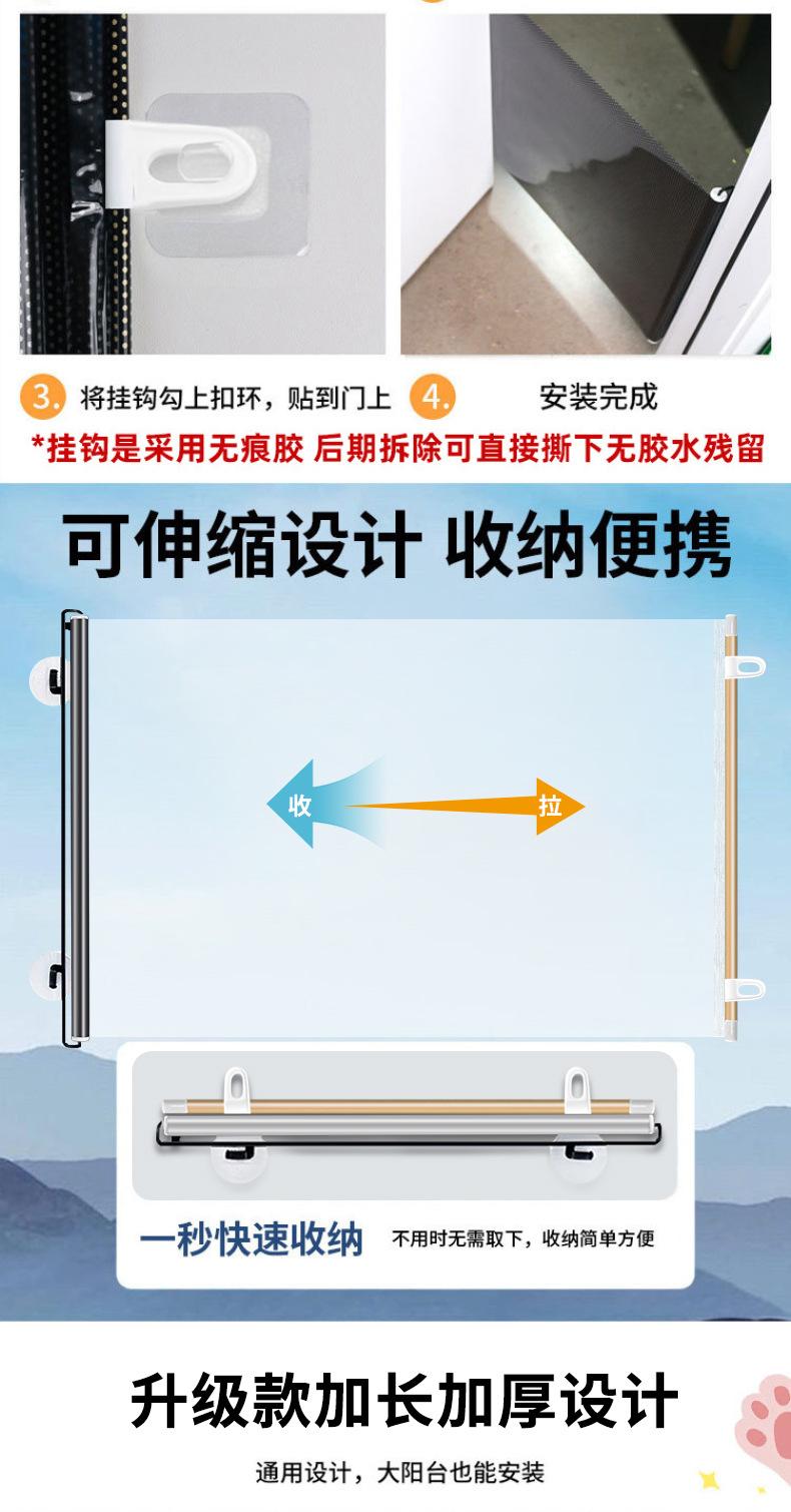 Valla para mascotas sin perforaciones, amigable con la pared, evita que las mascotas se escapen, valla retráctil para mascotas, extendida y engrosada, almacenamiento conveniente