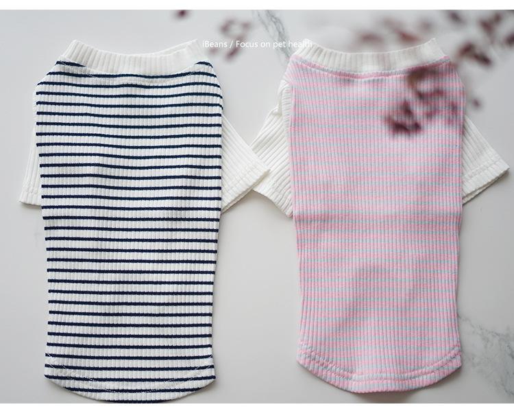 Camiseta sencilla a rayas para perro mascota con mangas cuello alto transpirable básica camiseta interior otoño/invierno ropa estilo coreano gato teddy batch