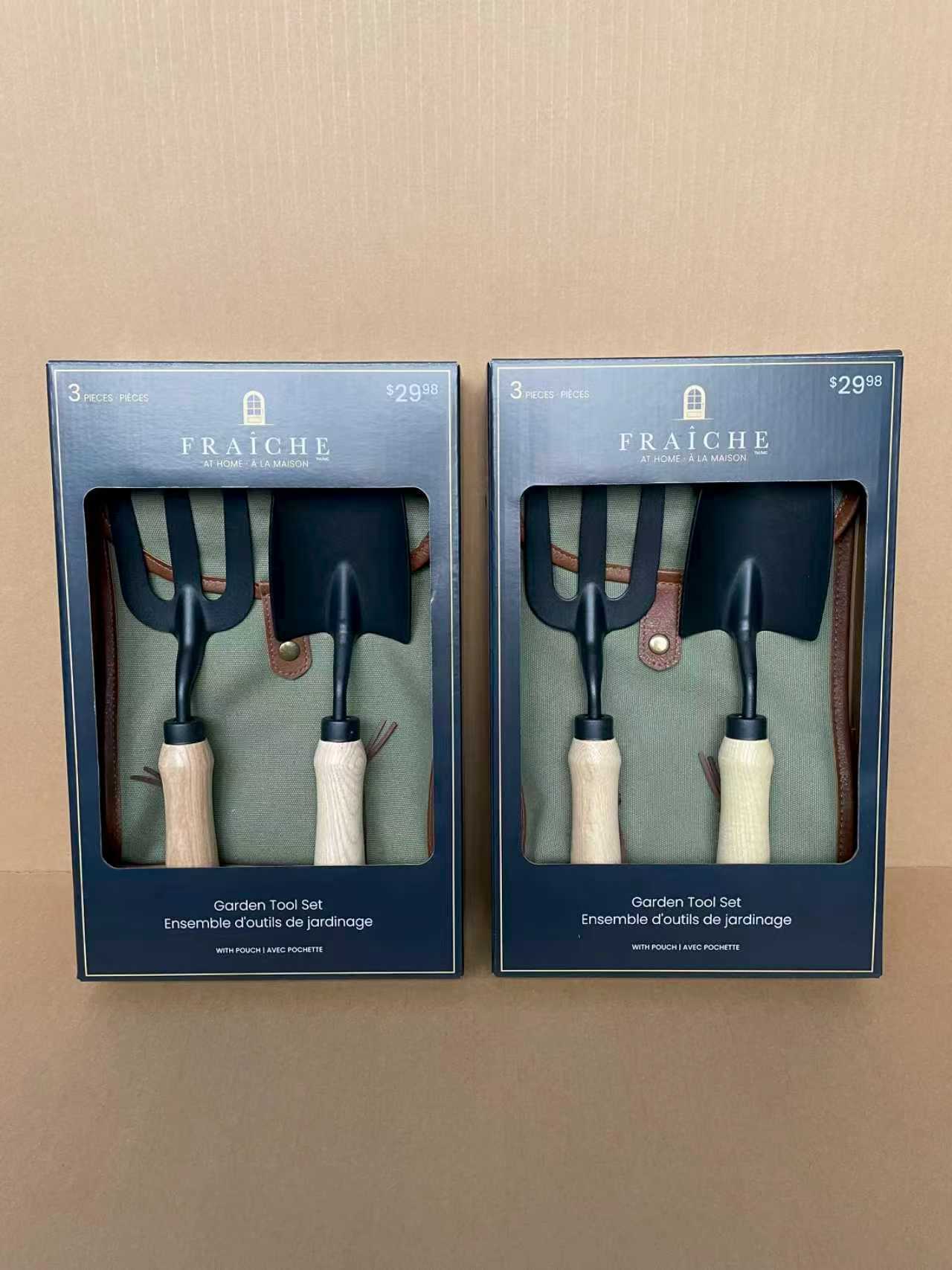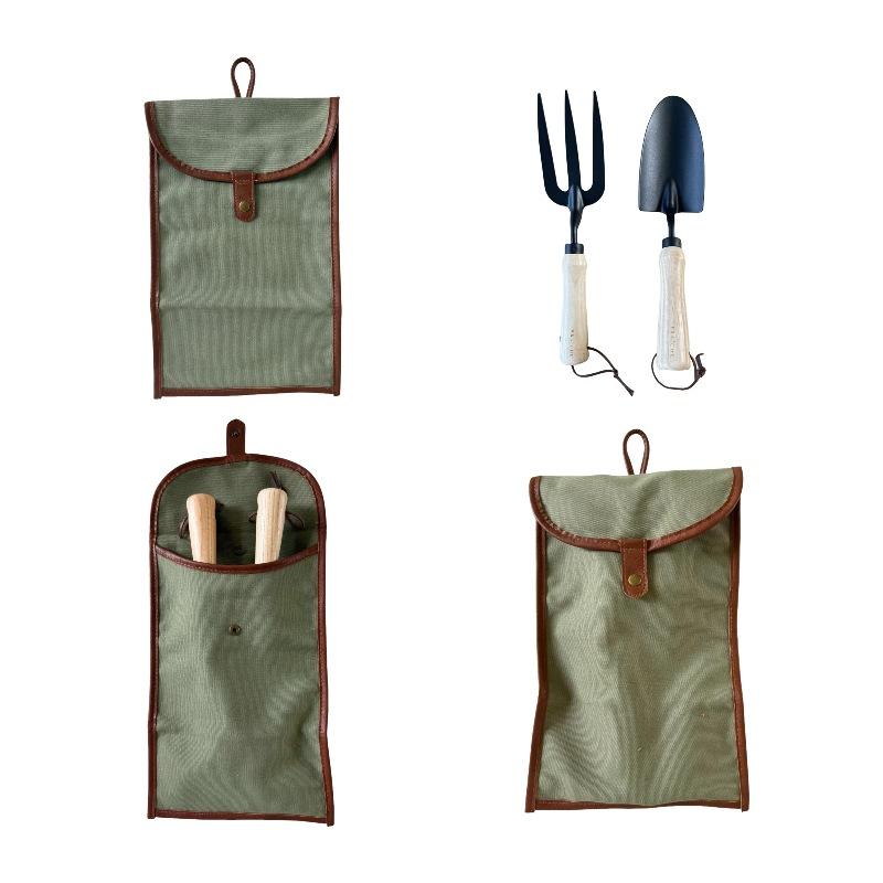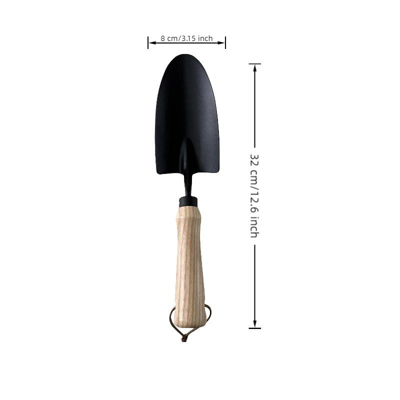 Juego de Herramientas de Jardinería de Acero al Carbono Herramientas para Plantar en el Jardín Suministros de Jardinería Pala Mango de Madera de Nogal Bolsa de Tela Juego de Tres Piezas