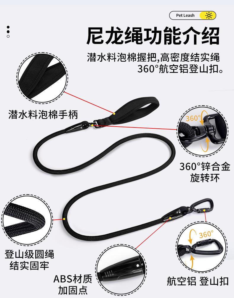 Correa para perro de nailon engrosado de alta densidad superventas de Amazon, hebilla de aleación de aluminio a prueba de explosiones, correa para perro de alta elasticidad
