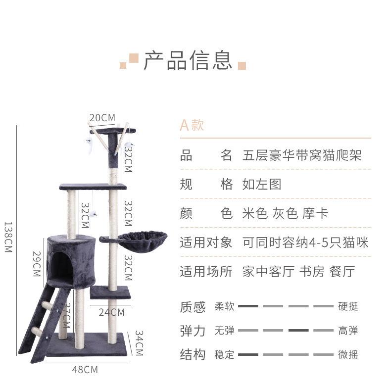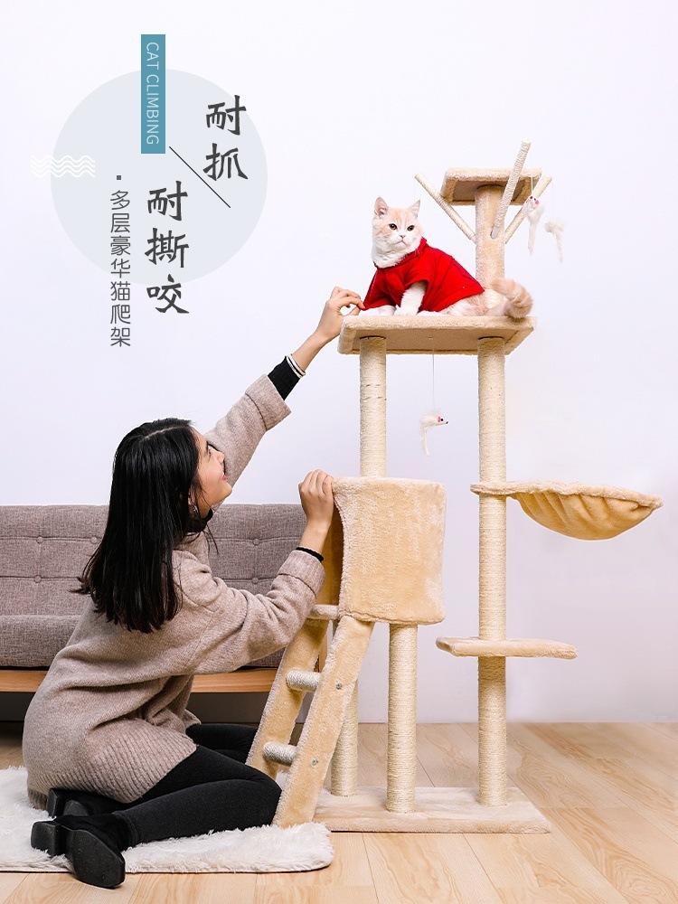Rascador para gatos transfronterizo de Amazon, marco para escalar gatos para el hogar, huella pequeña para apartamento pequeño, rascador para gatos, cama para gatos integrada, barril de sisal multicapa, marco para escalar