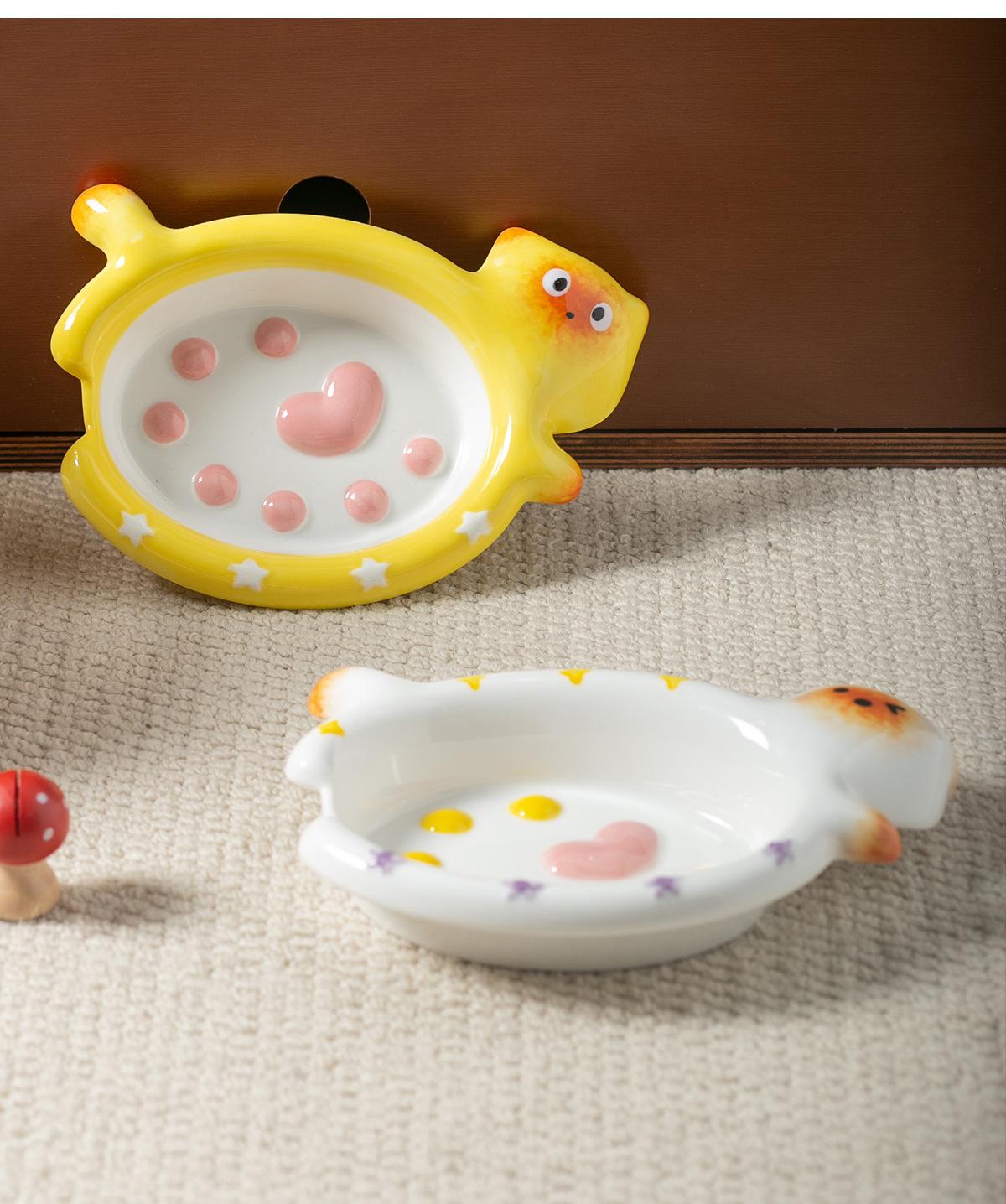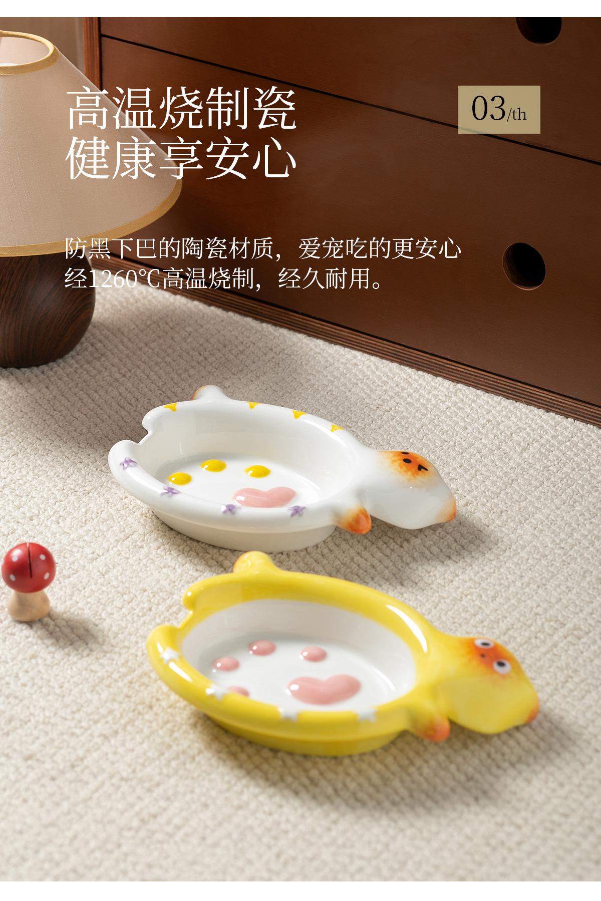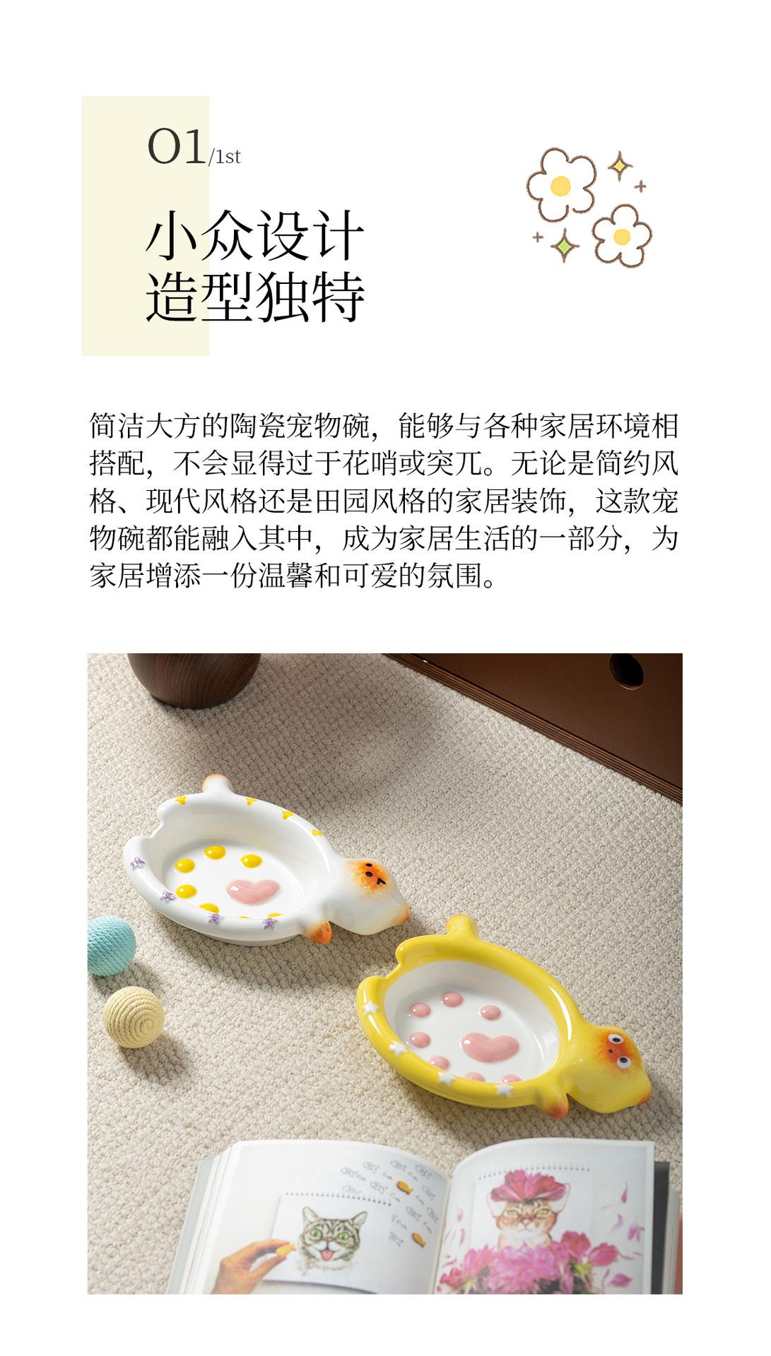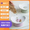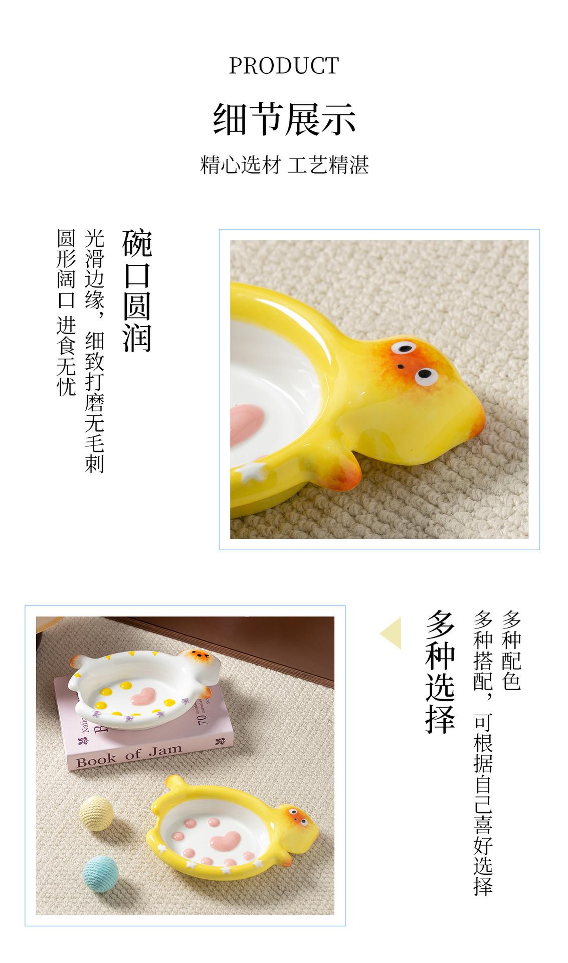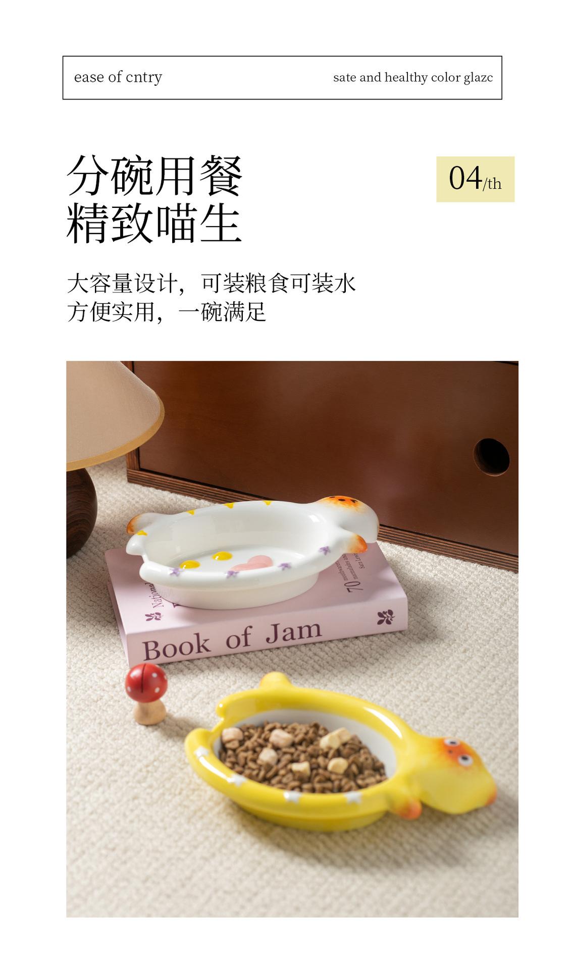 Protector de Borde Serie Gato de Dibujos Animados Creativo Acostado Tazón para Mascota Tazón de Cerámica para Gato para el Hogar Tazón para Perro Tazón para Agua Antiderrame Tazón para Comida para Gato