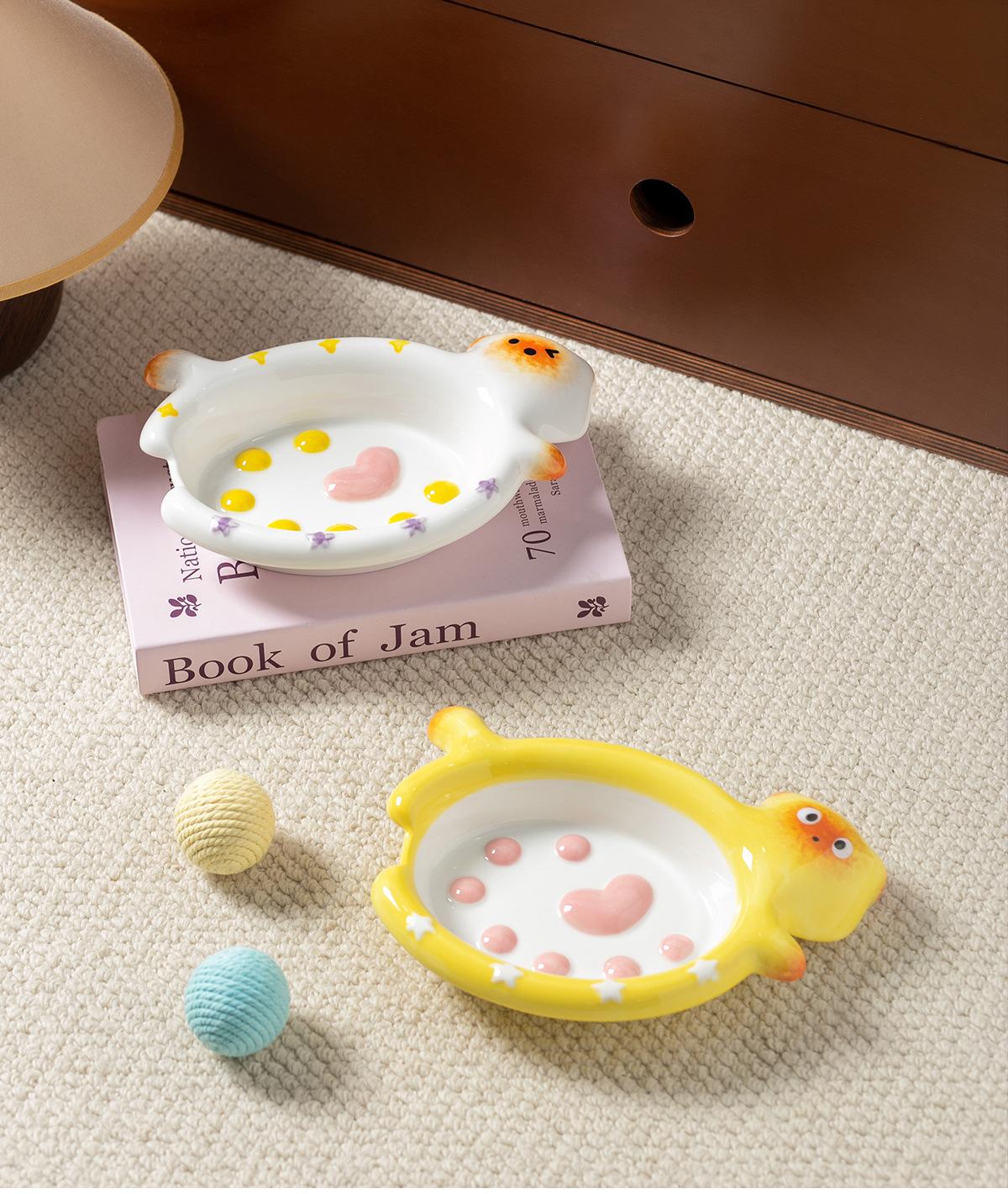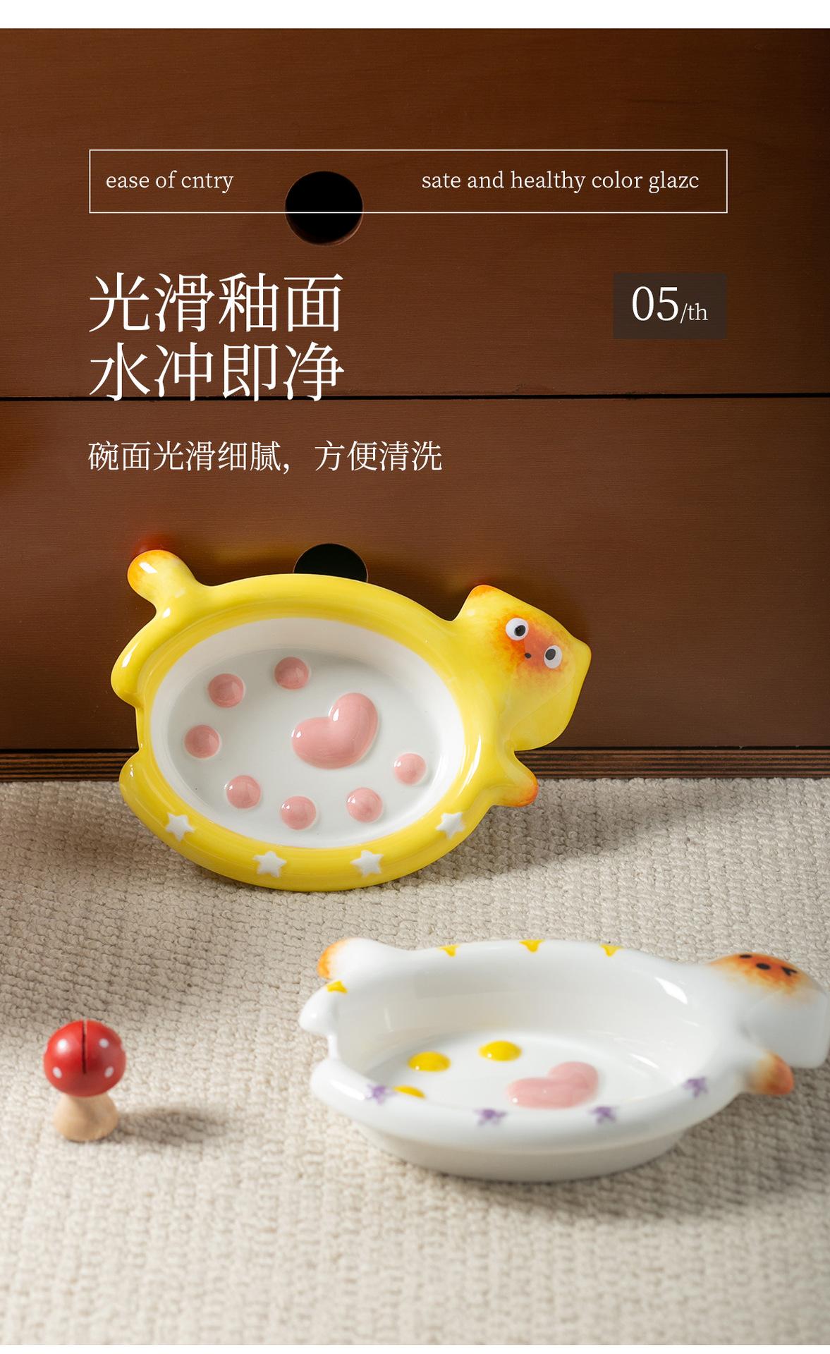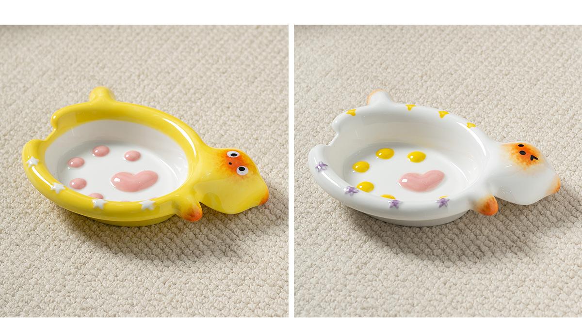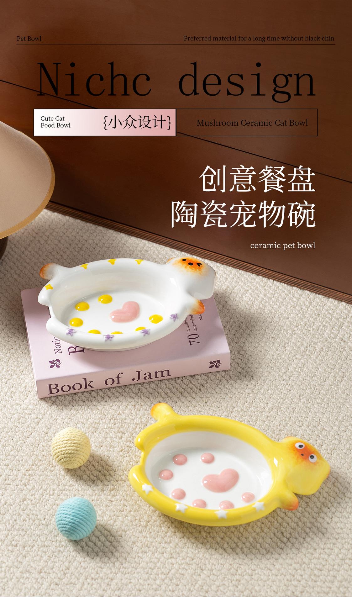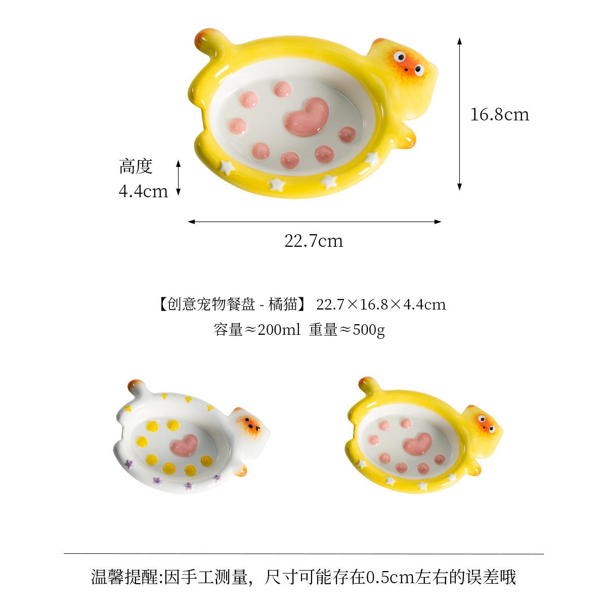 Protector de Borde Serie Gato de Dibujos Animados Creativo Acostado Tazón para Mascota Tazón de Cerámica para Gato para el Hogar Tazón para Perro Tazón para Agua Antiderrame Tazón para Comida para Gato