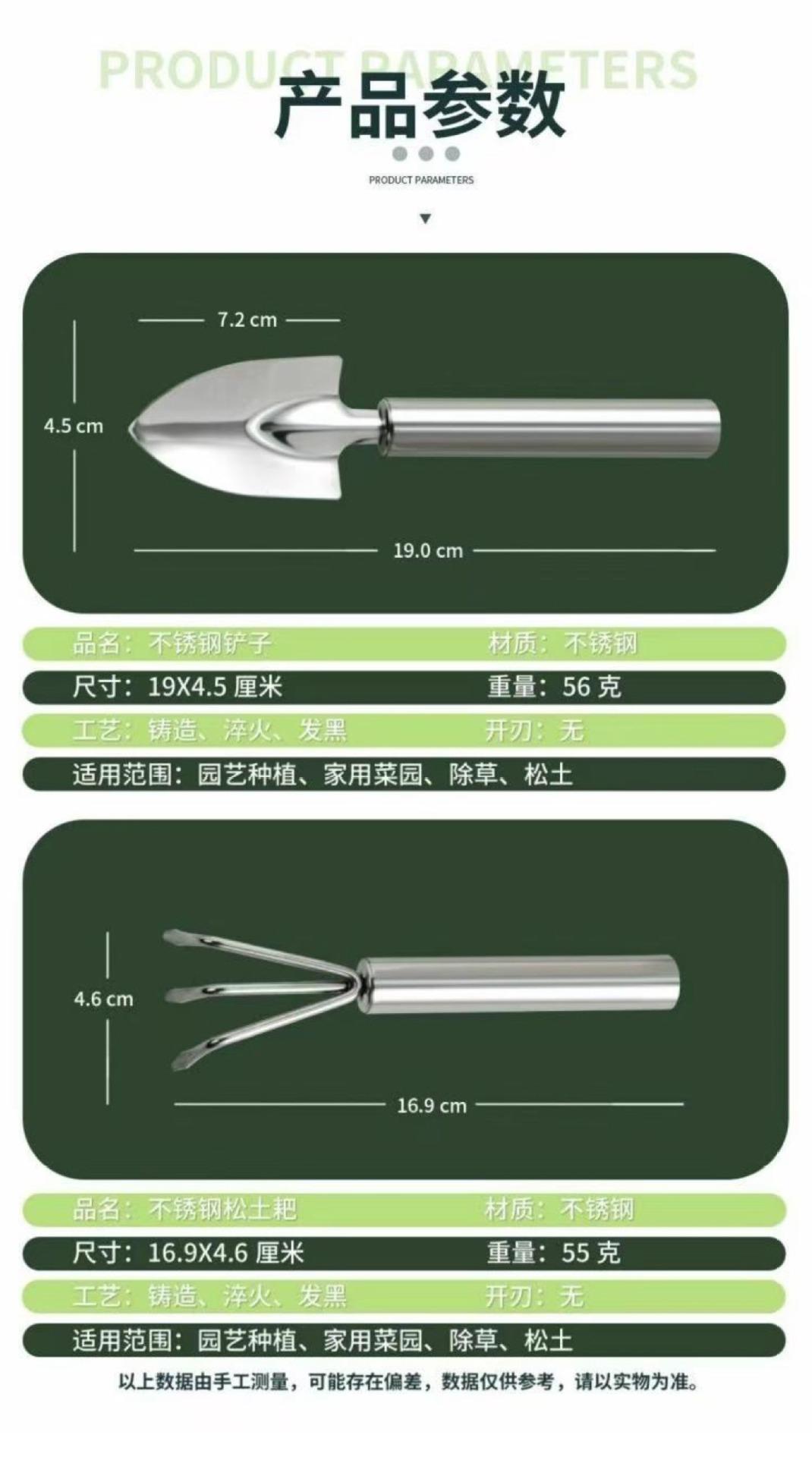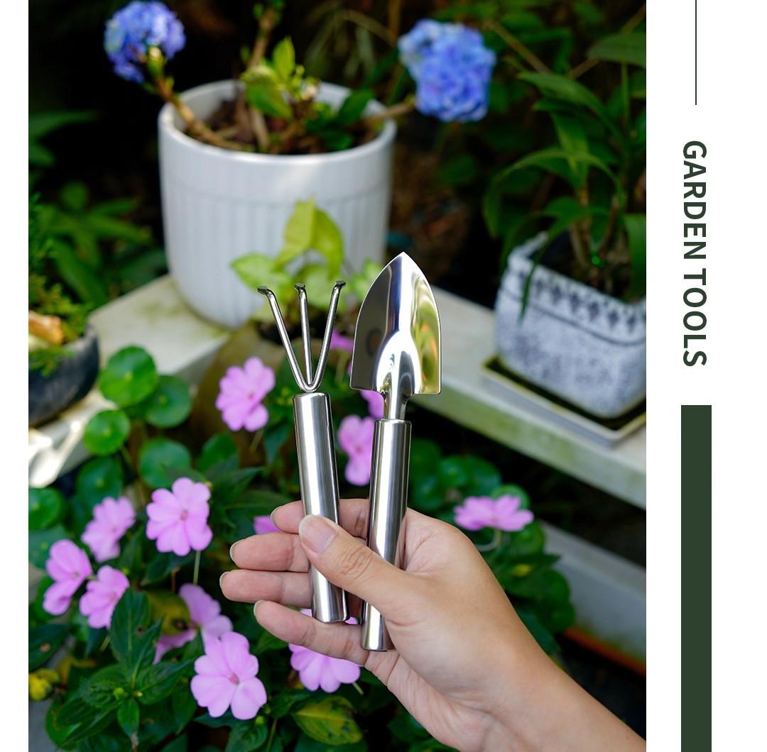 Pala para plantar verduras herramientas de jardinería mini juego pala para exteriores balcón macetas acero inoxidable hogar aflojar la tierra rastrillo pequeño