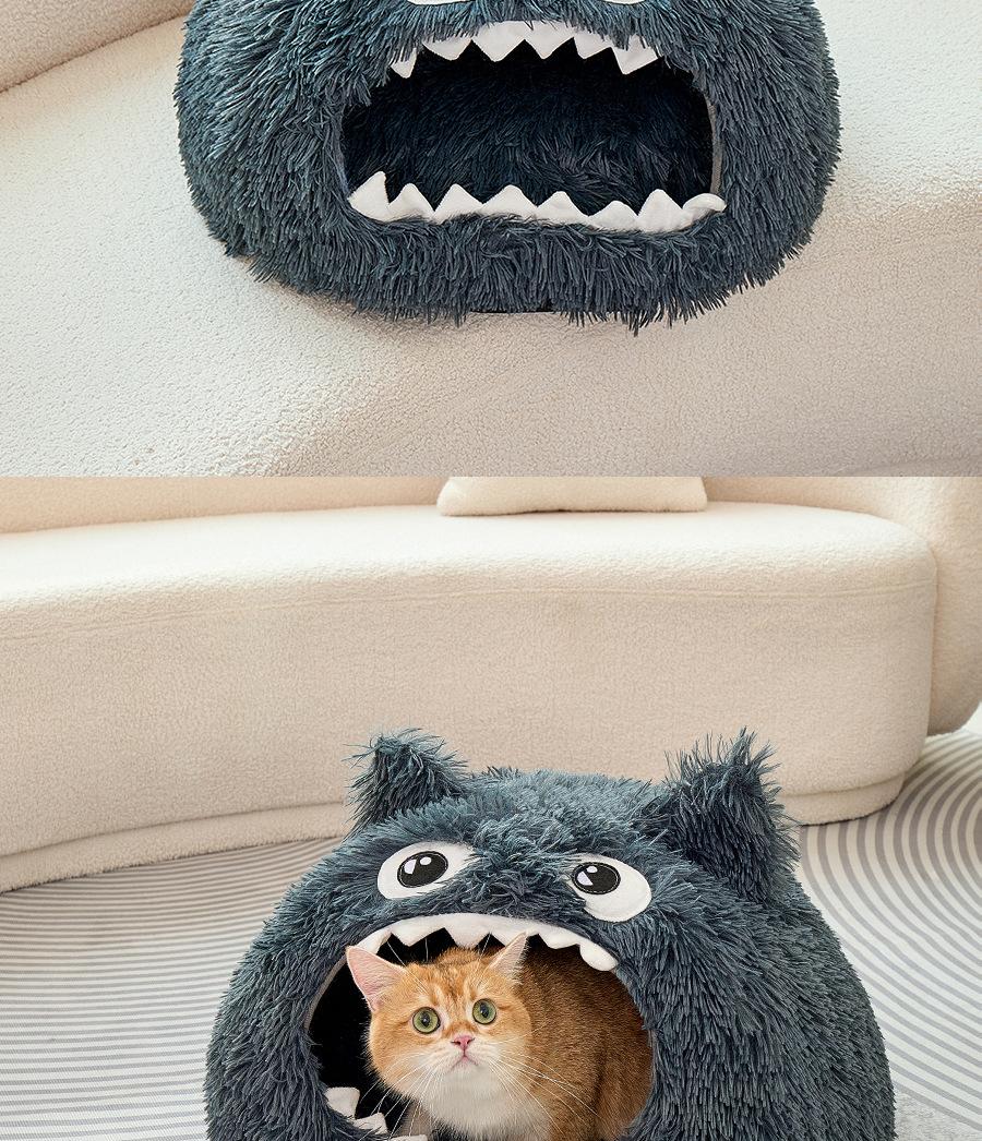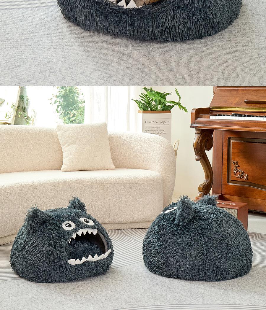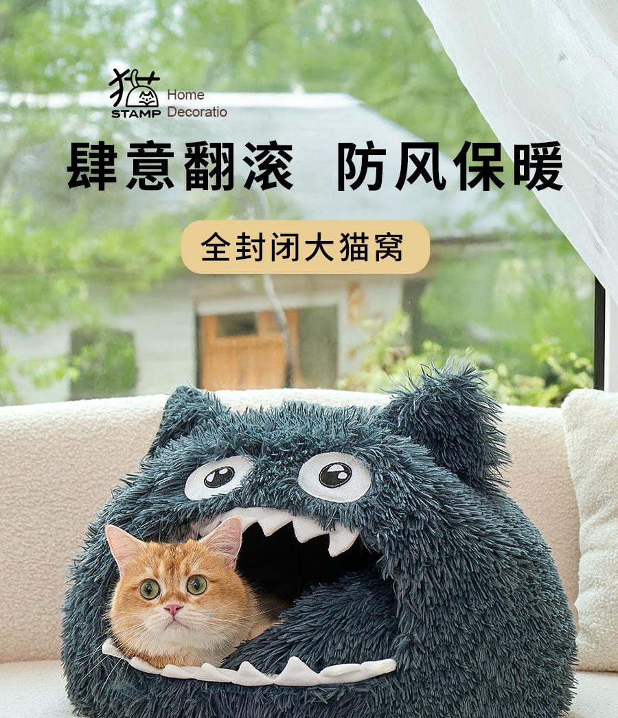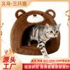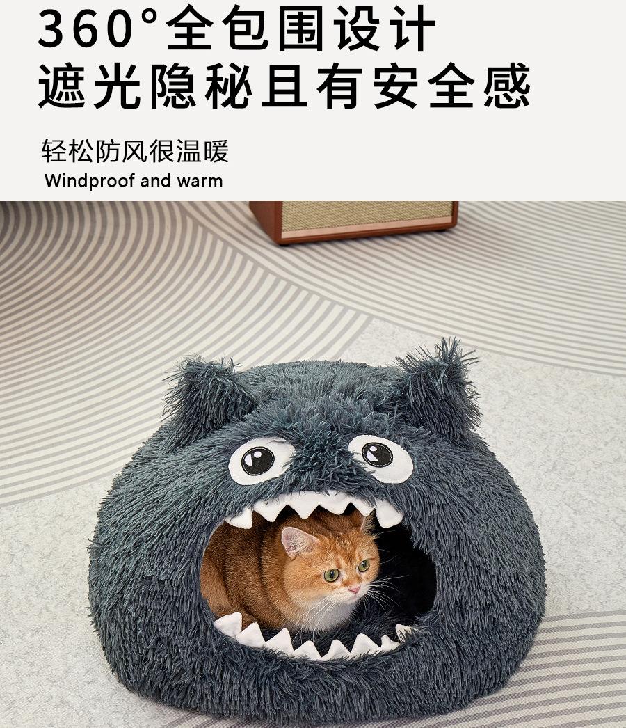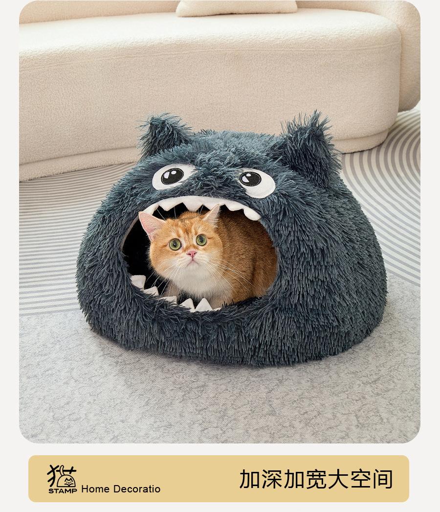 Cama Nueva para Gato Invierno Cálida Semi-cerrada Seguridad Nido para Dormir Gato Cama Gruesa para Perro Casa Universal Cuatro Estaciones