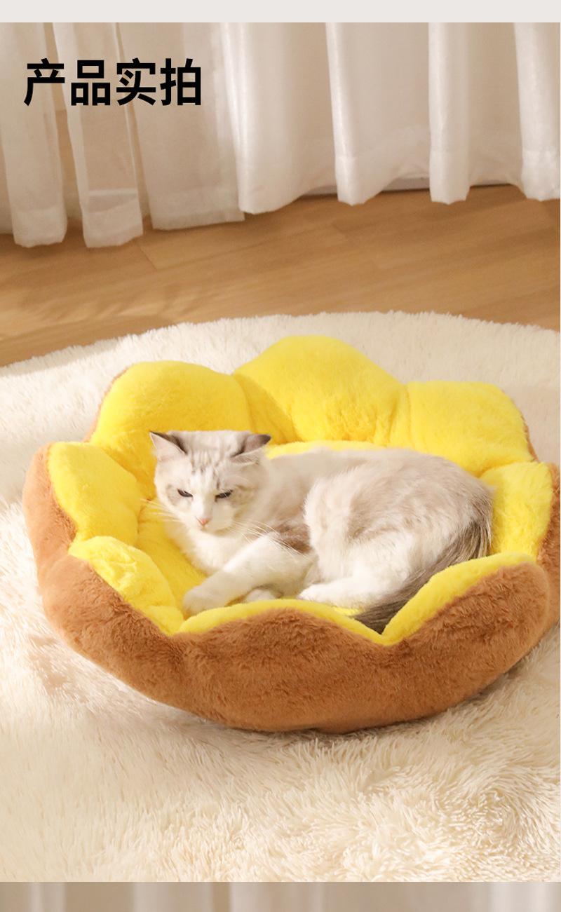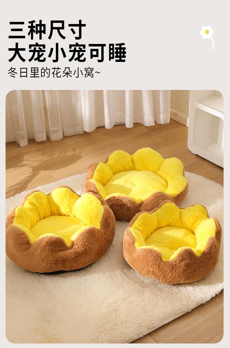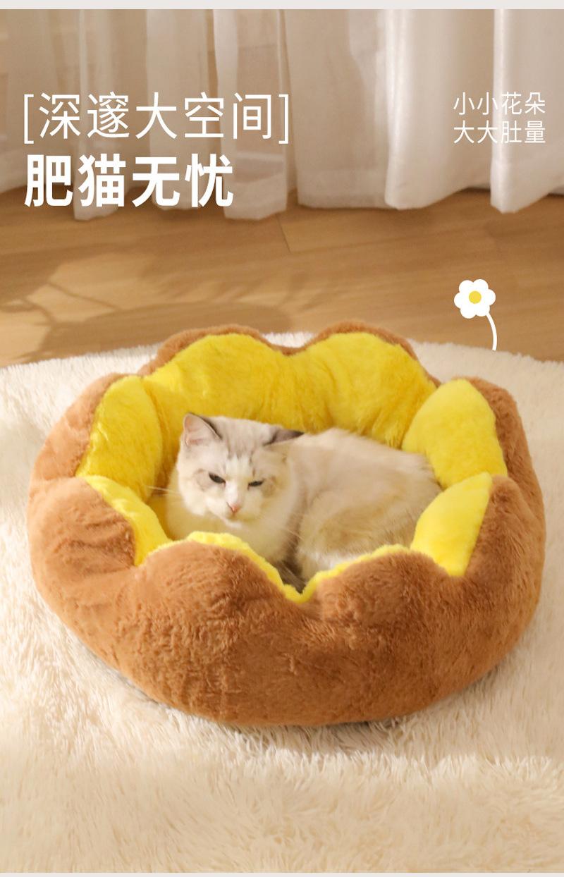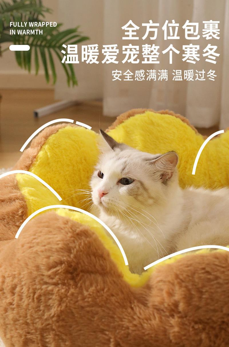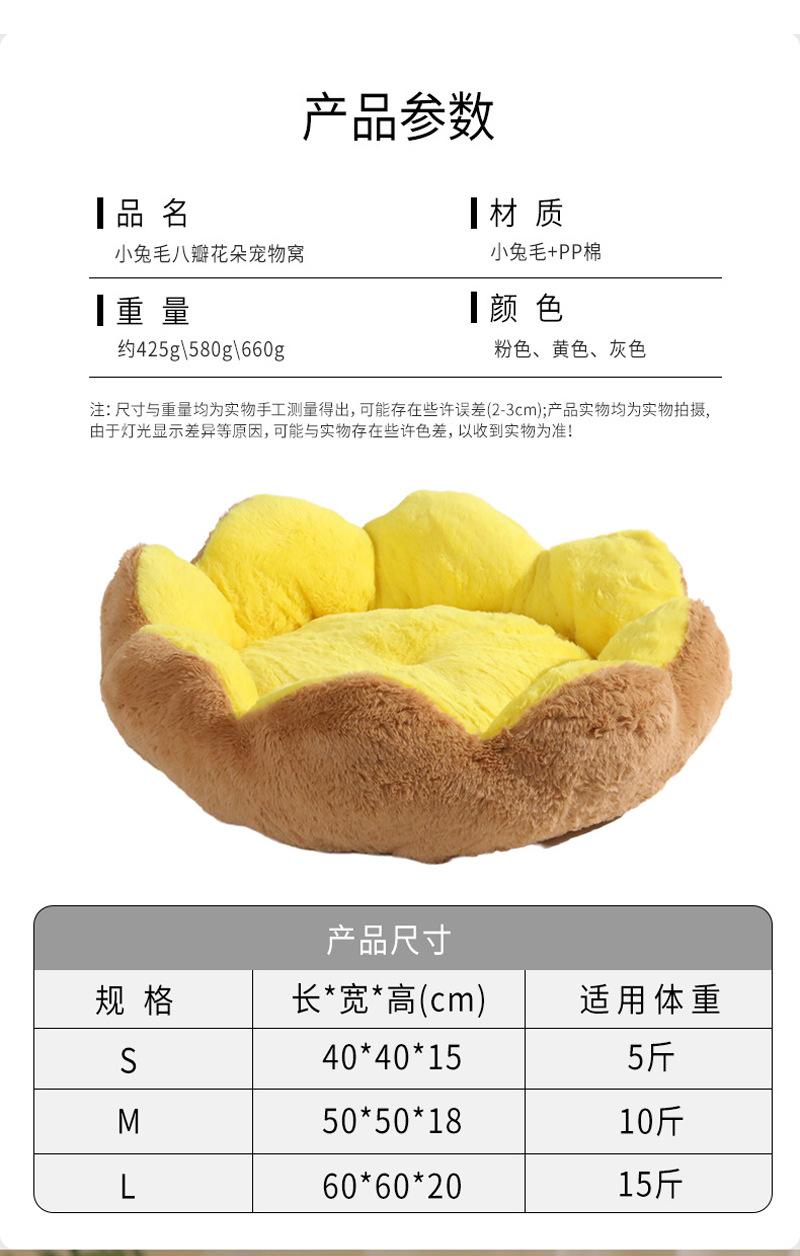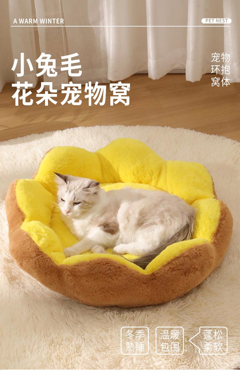 Cama Cálida de Invierno Semicerrada para Gatos y Perros Flor de Ocho Pétalos Conejo Felpa Cama para Mascotas Lavable Almohadilla para Dormir Engrosada