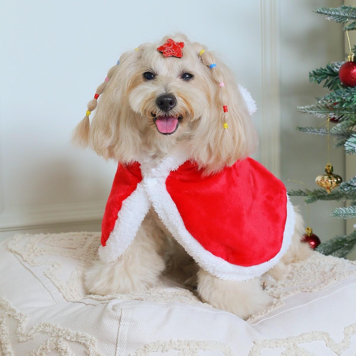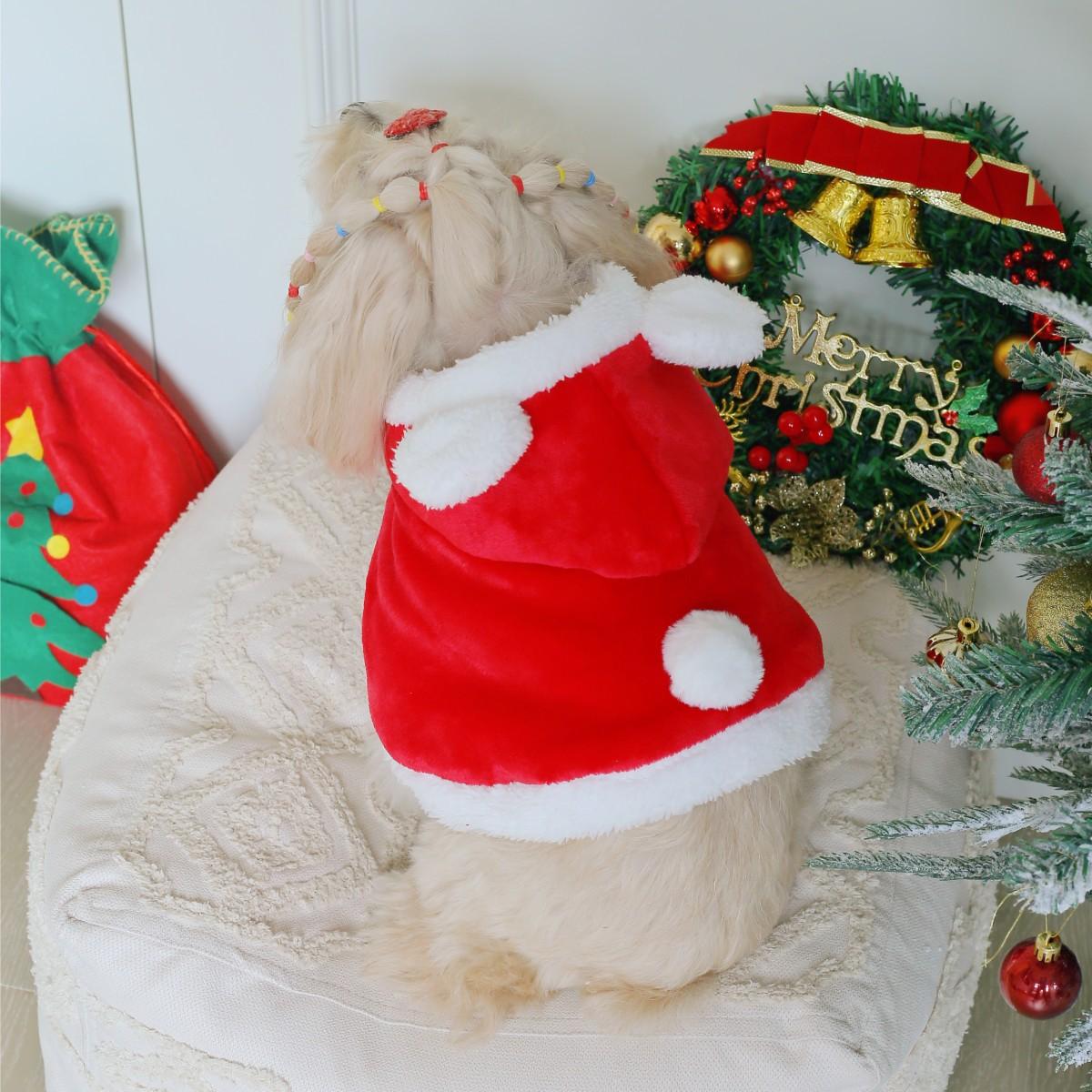 Disfraz navideño para mascotas más vendido transfronterizo con pompón capa navideña capa abrigo ambiente festivo ropa para perros