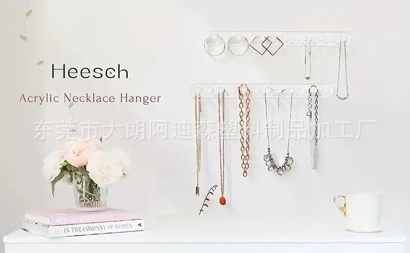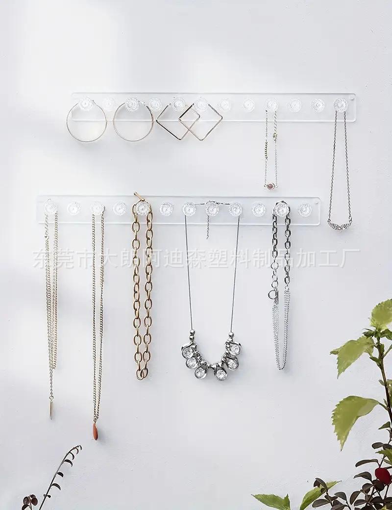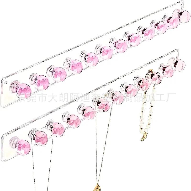 Estante para Collares Acrílico Transparente Montado en la Pared Rosa Gancho Colgante para Joyería Estante para Joyería de Pared para Dormitorio Estante de Almacenamiento