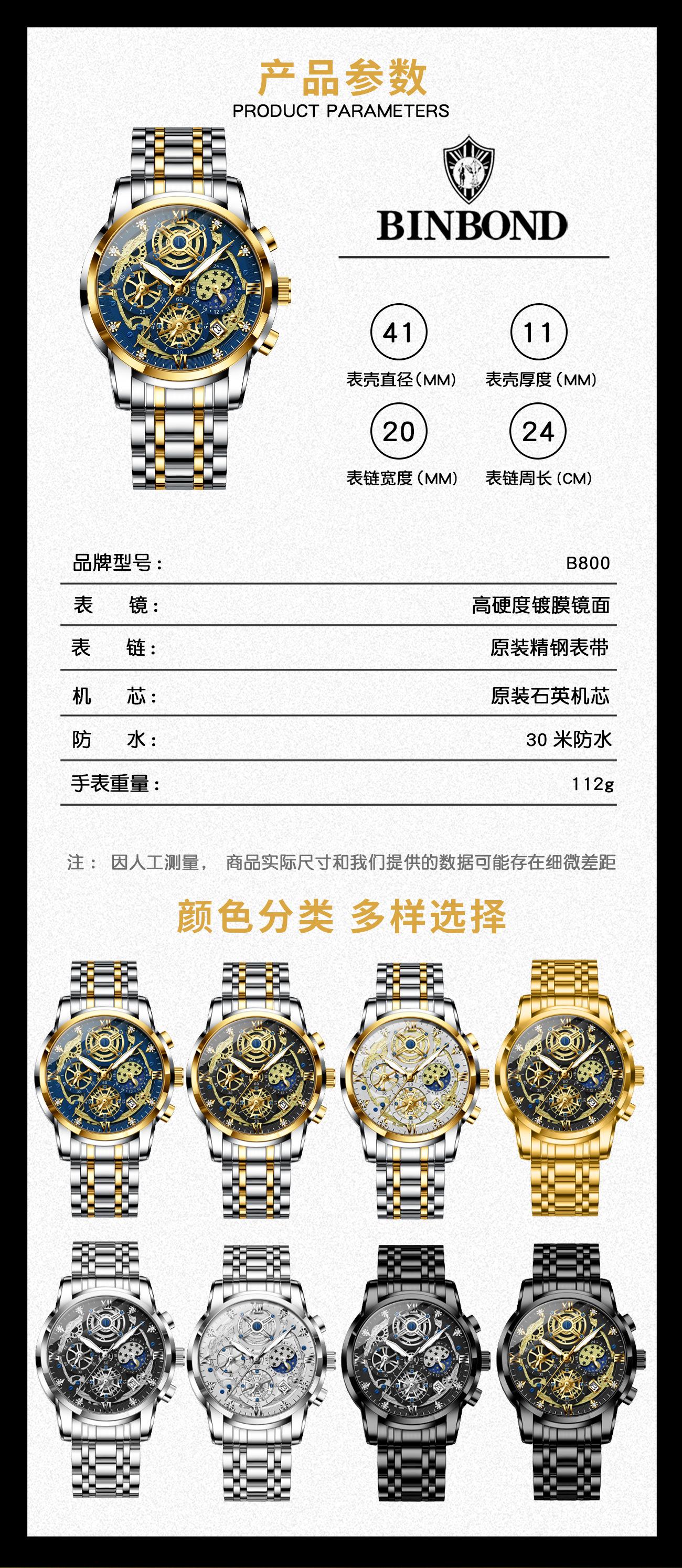 Material de la correa-Material de la caja:白钢-Acero blanco