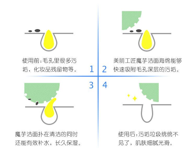 hacer usar y Ahorrar vivir dirección Ley | 1. Primero, remoje el producto en agua limpia durante 5~10 minutos (para eliminar la sustancia humectante superficial), luego se puede usar directamente. 2. Aplique limpiador facial a este producto o use directamente, limpie la piel del rostro con movimientos circulares, luego enjuague con agua. 3. Después de la limpieza, enjuague la esponja konjac con agua limpia, exprima la humedad con ambas manos y guárdela en un ambiente seco y bien ventilado. Lo mejor es guardarla en una bolsa resellable para su conservación. 4. Se recomienda reemplazar cada tres meses. 5、Adecuado para todo tipo de pieles, especialmente adecuado para pieles sensibles; 6. El uso a largo plazo puede mejorar la condición de la piel, dejándola suave y radiante; 7. Naturalmente descomponible, verde. | ||