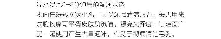 efecto | Tiene efectos duales de limpieza facial y exfoliación, dejando la piel del rostro más limpia y fresca; no irritante, inodoro, no daña la piel, se expande al remojarse en agua, se puede usar en conjunto con limpiador facial, naturalmente degradable | ||